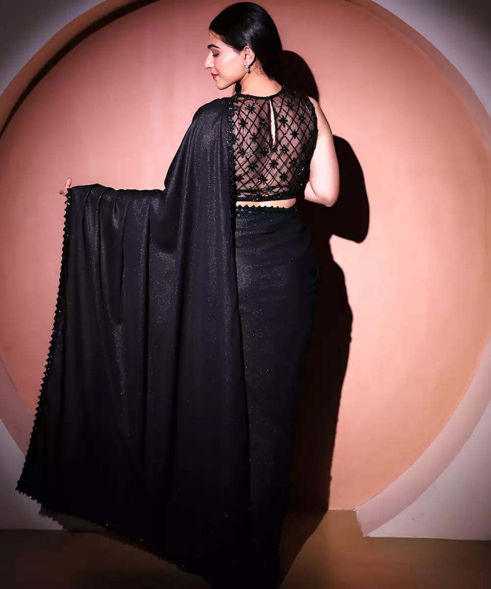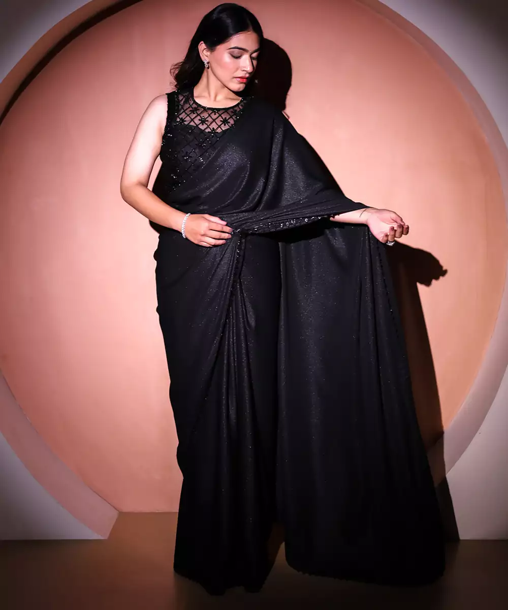 This Black Plain Georgette Saree Blends Timeless Elegance With Effortless Draping. Made From Lightweight Georgette, It Offers Comfort And Fluid Movement, Perfect For Both Day And Evening Occasions. Its Minimalist Design Allows Versatile Styling—Pair It With A Statement Blouse And Accessories For A Sophisticated, Classic Ethnic Look.