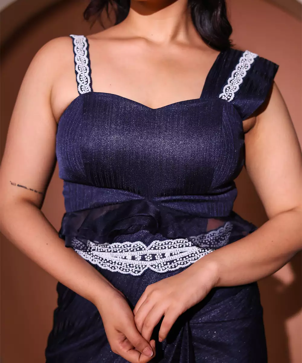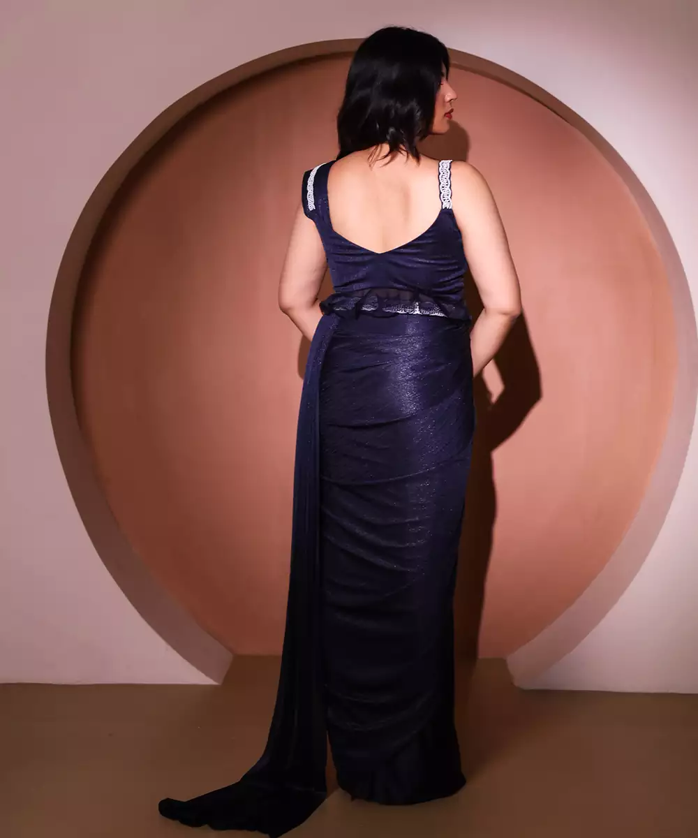 This Blue Plain Lycra Saree Combines Comfort With Contemporary Elegance. Crafted From Stretchable Lycra, It Drapes Smoothly And Enhances The Silhouette With Ease. Its Minimalist Design Makes It Ideal For Parties, Events, Or Casual Celebrations. Pair It With A Stylish Blouse To Complete A Chic And Modern Ethnic Look.
