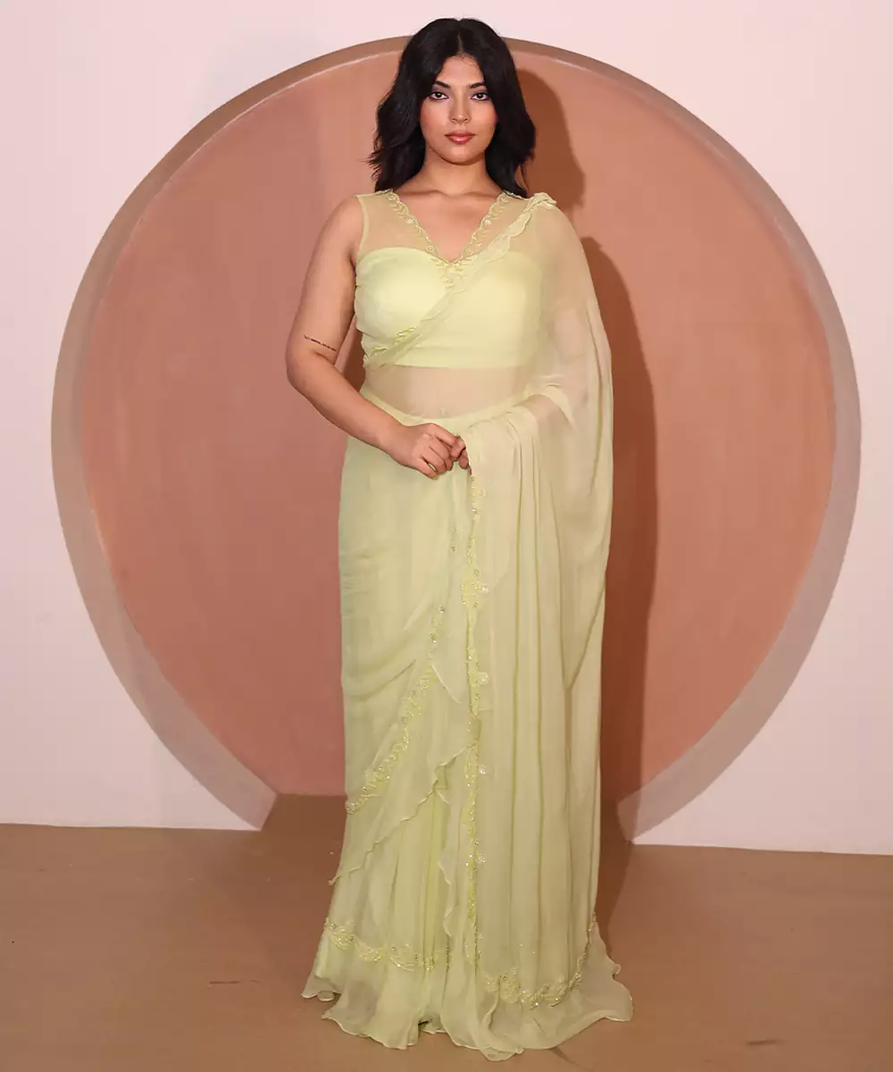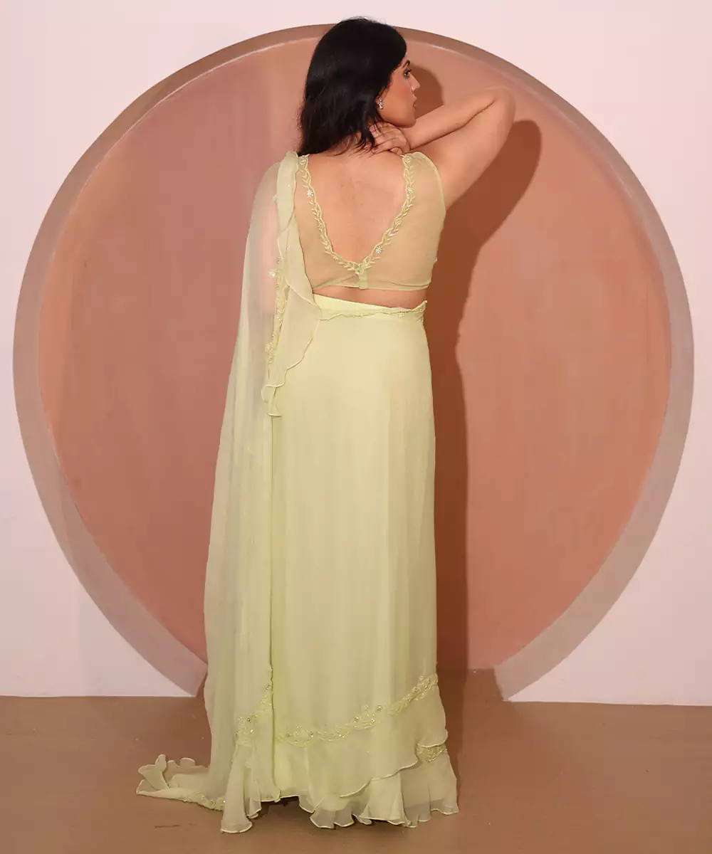This Green Plain Chiffon Saree Offers A Light, Airy, And Graceful Drape, Perfect For Any Occasion. Its Soft Chiffon Fabric Creates A Flowy Silhouette, Adding A Touch Of Elegance To Your Look. Ideal For Festive Events Or Casual Celebrations, It Pairs Beautifully With Contrasting Blouses And Minimal Accessories.
