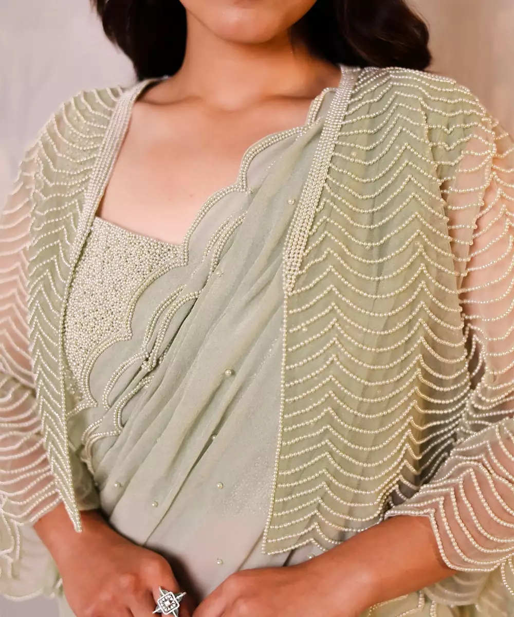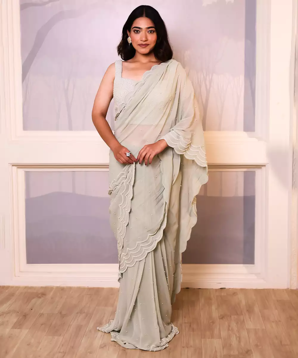 This Green Embroidered Georgette Saree Blends Elegance With Intricate Detailing. The Lightweight Georgette Fabric Drapes Beautifully, While Delicate Embroidery Adds A Touch Of Sophistication. Perfect For Festive Occasions, Weddings, And Evening Events, It Offers A Graceful And Stylish Look When Paired With Complementing Accessories And A Chic Blouse.