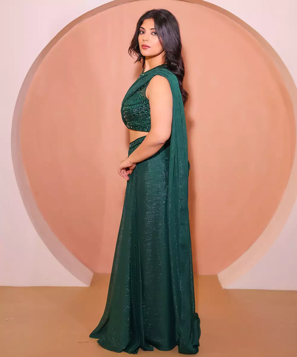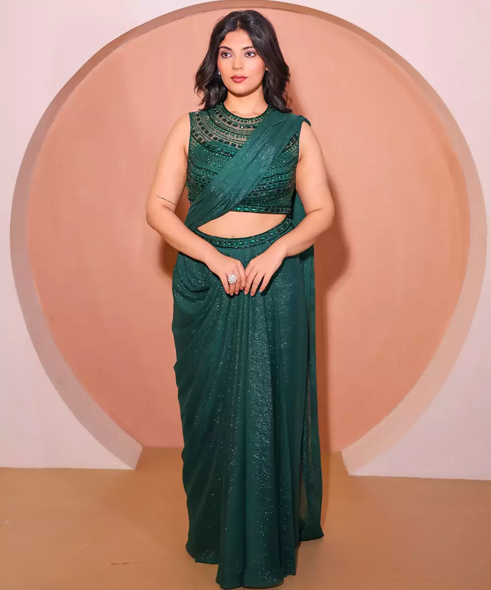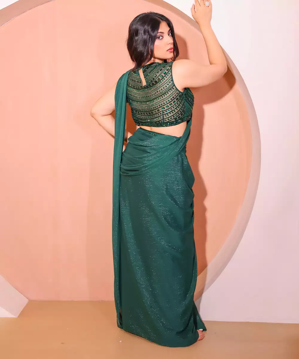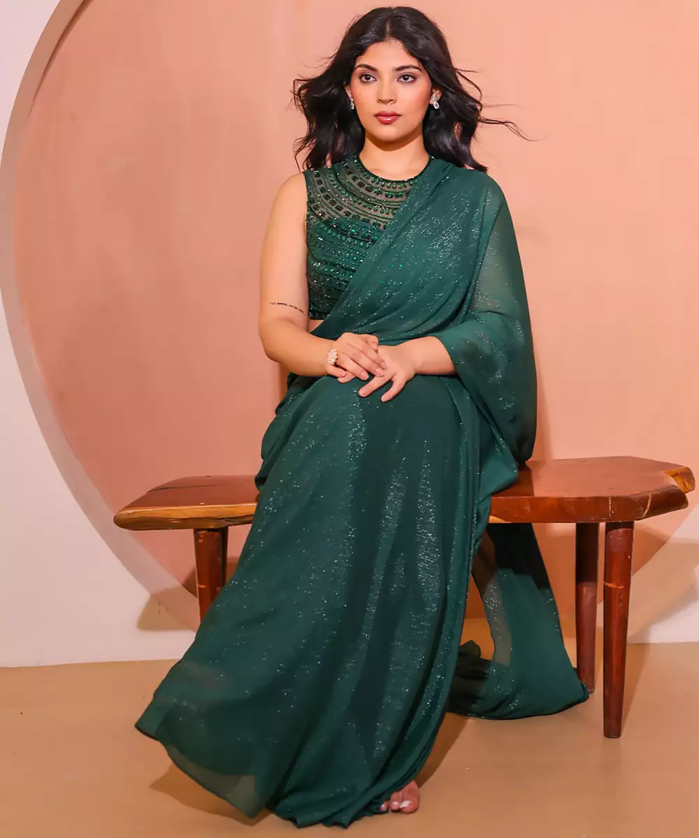 This Green Plain Net Saree Offers A Bold Yet Elegant Look With Its Sheer, Lightweight Fabric. The Soft Net Drapes Effortlessly, Creating A Graceful Silhouette. Perfect For Evening Events And Parties, It Provides Endless Styling Options—Pair It With A Statement Blouse And Accessories For A Sophisticated, Modern Appearance.