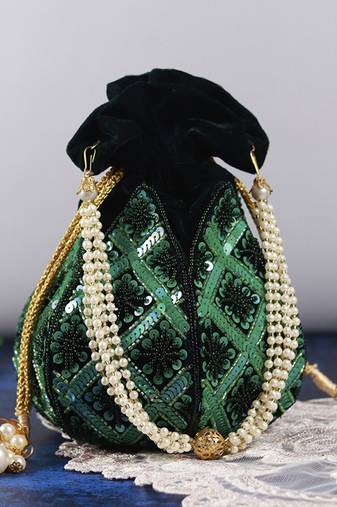 Featuring Green Ziva Potli Bag With Includes Short Embroidered Strap.