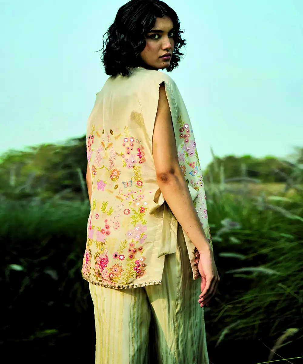Cream Embroidered Tissue Co Ord Set