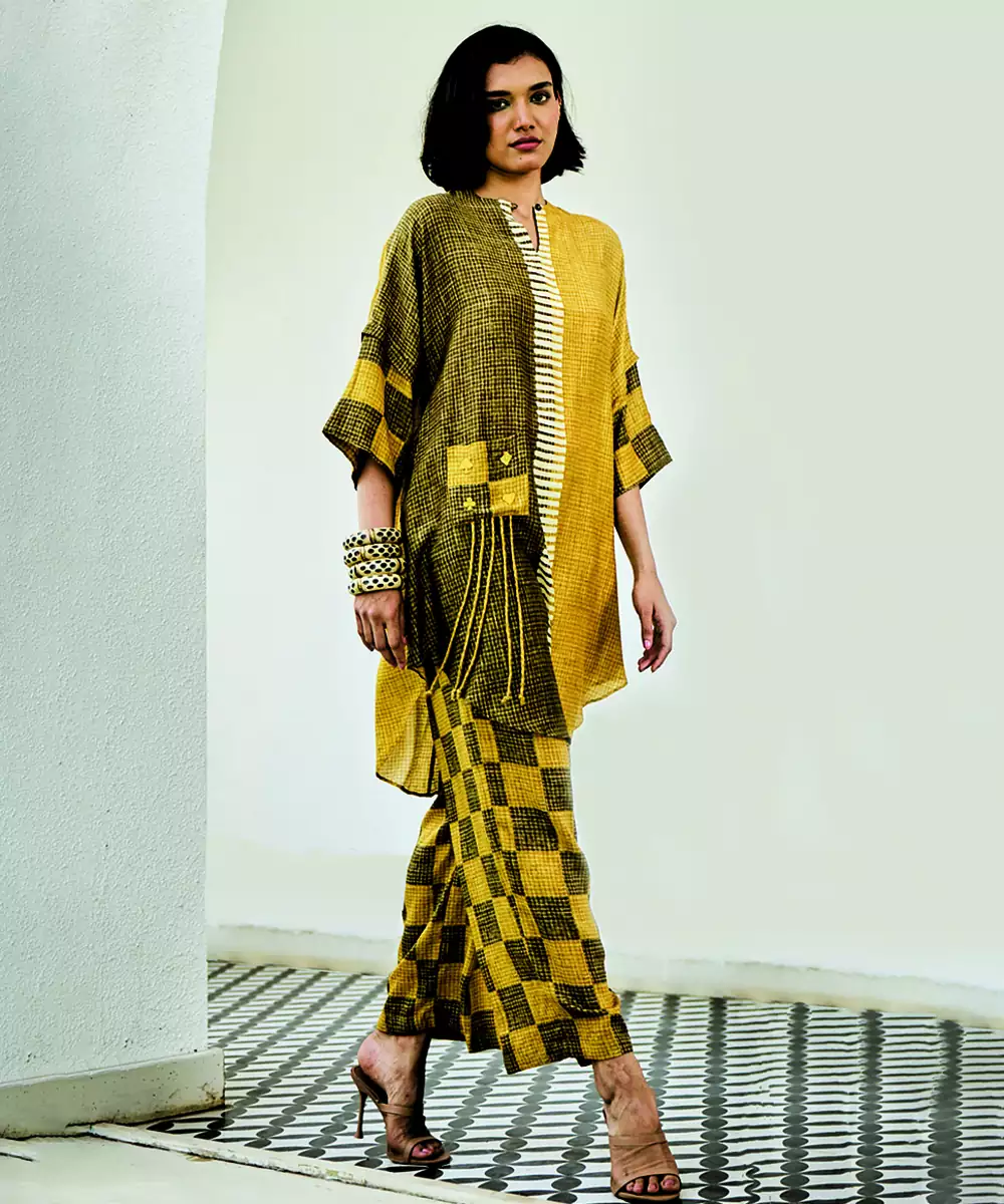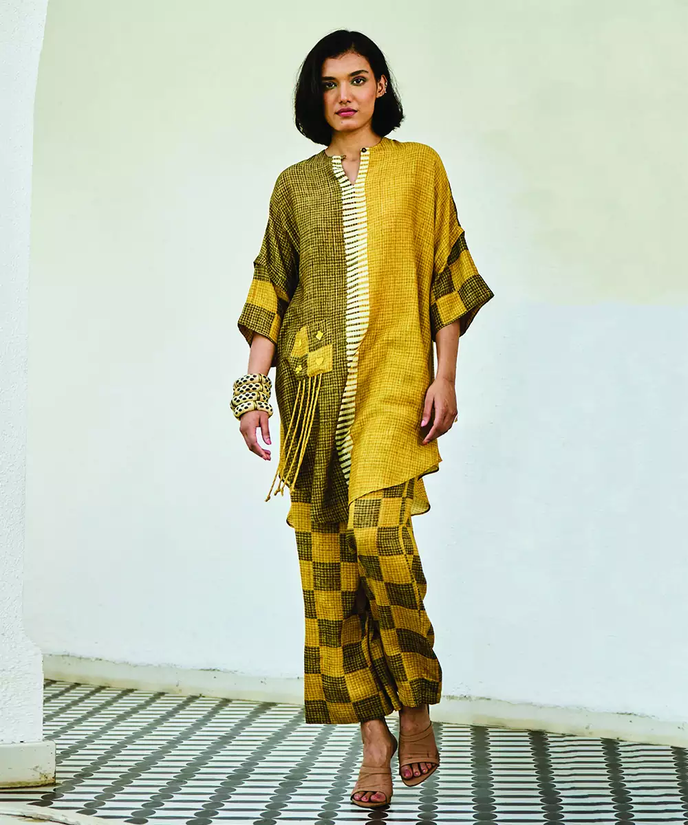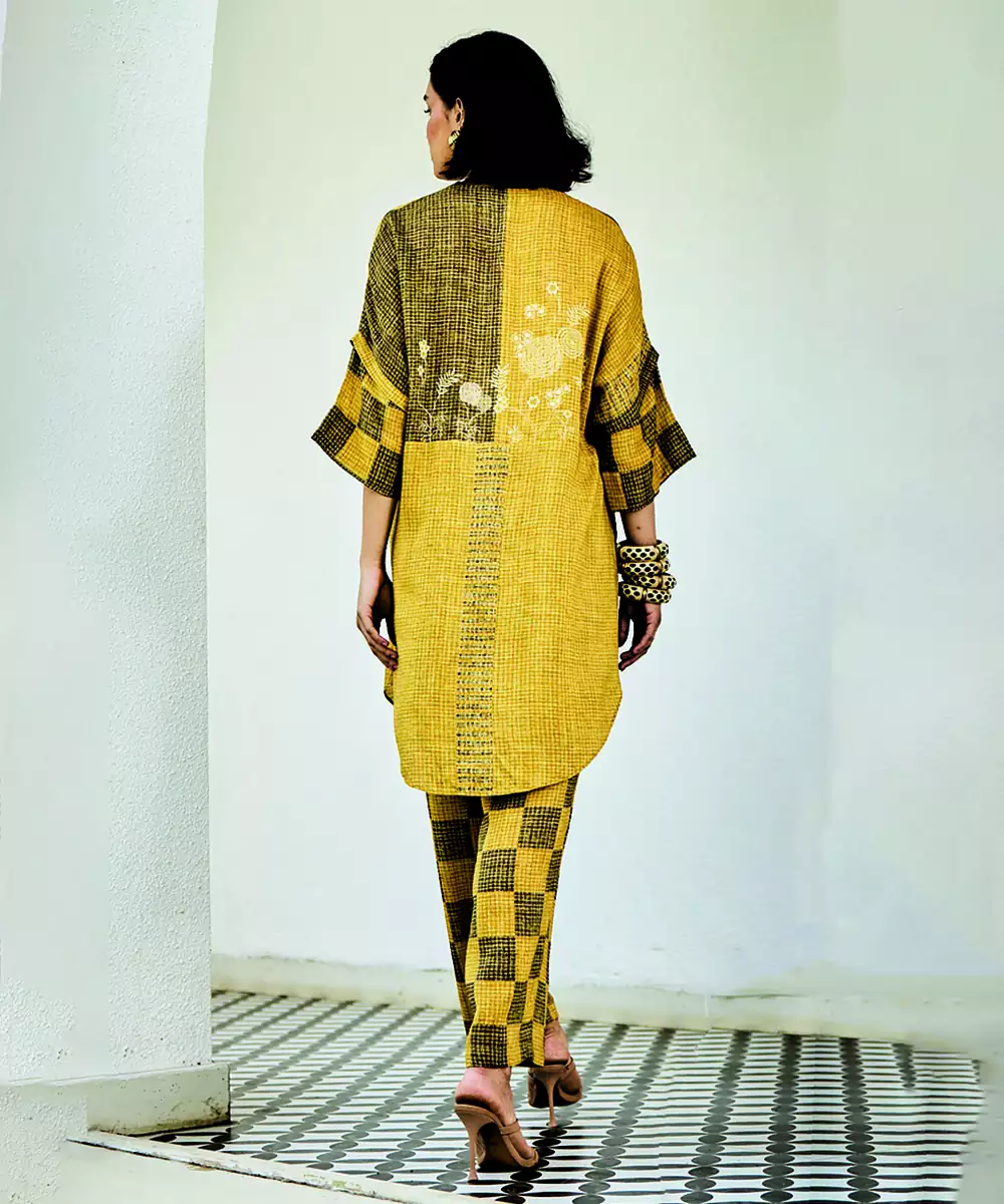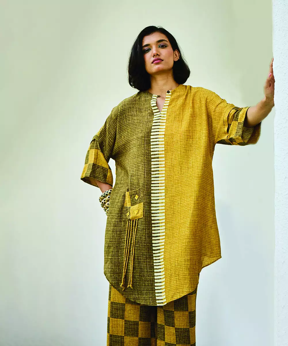 This Mustard Yellow Linen Kurta Set Showcases Subtle Prints That Enhance Its Warm And Earthy Appeal. The Lightweight, Breathable Fabric Ensures Comfort, While The Silhouette Offers Ease Of Movement. Ideal For Casual Wear Or Daytime Events, It Pairs Beautifully With Minimal Accessories For A Refined Look.
