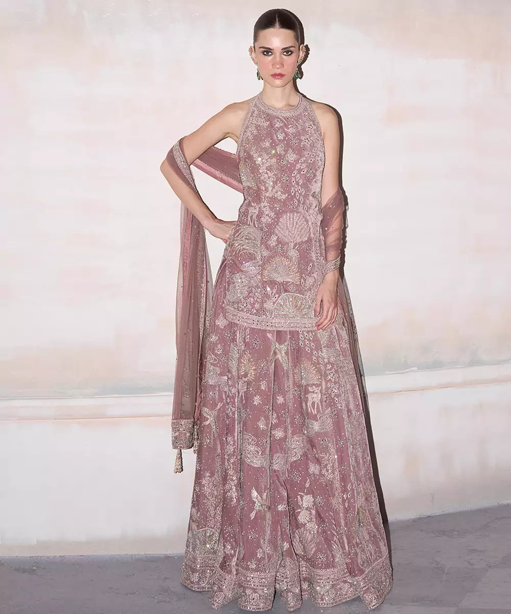 Rose Pink Embroidered Velvet Silk Sharara Set