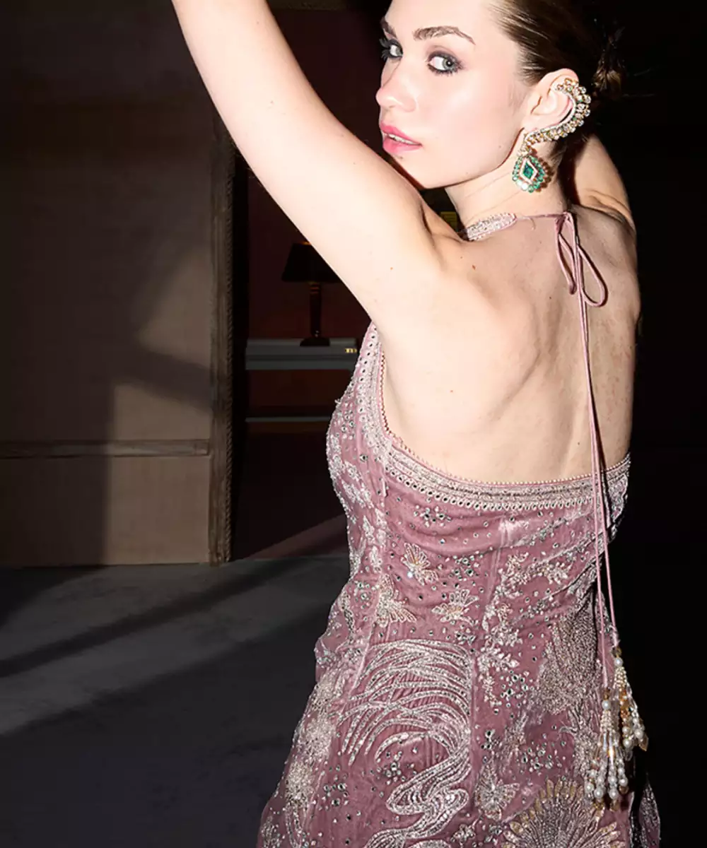 This Rose Pink Embroidered Velvet Silk Sharara Set Combines Plush Texture With Delicate Detailing. The Rich Fabric Adds Depth And Luxury, While The Flared Silhouette Enhances Its Charm. Ideal For Evening Events, It Offers A Graceful And Sophisticated Appearance.