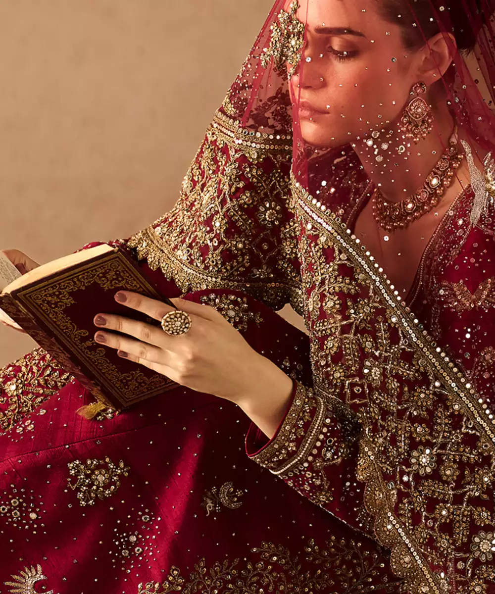 This Scarlet Red Embroidered Rambagh Silk Sharara Set Features A Bold Hue With Intricate Artistry. The Rich Fabric Enhances Its Festive Appeal, While The Flared Design Adds Drama And Elegance. A Striking Ensemble Ideal For Weddings And Grand Celebrations.
