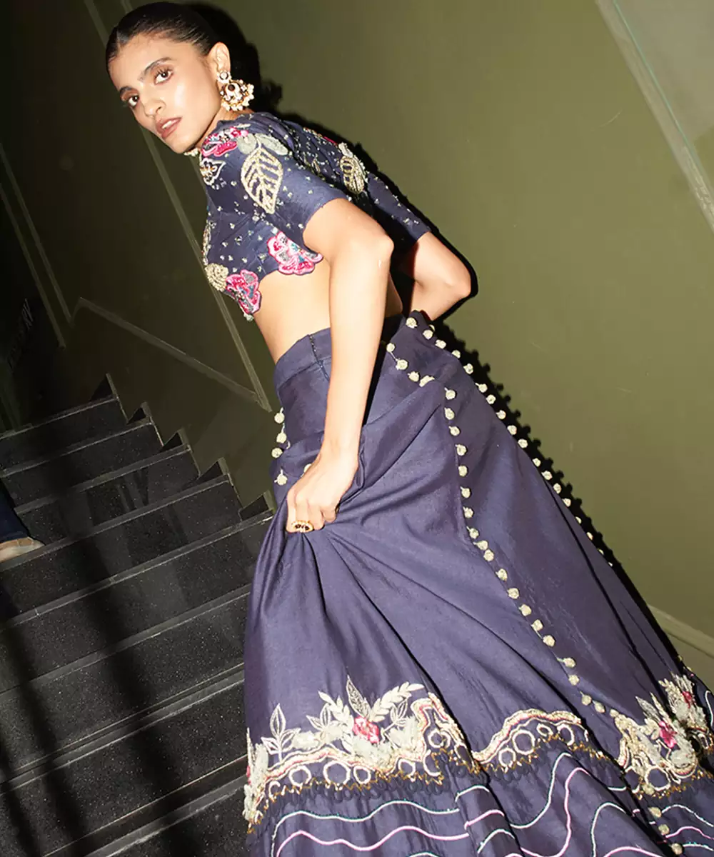 Perfect For Festive Gatherings, Wedding Functions, Receptions, And Cultural Celebrations, This Blue Embroidered Chanderi Lehenga Set Offers A Perfect Blend Of Elegance And Modern Ethnic Fashion. Pair It With Statement Earrings And Heels To Create A Polished Celebration Ready Look.