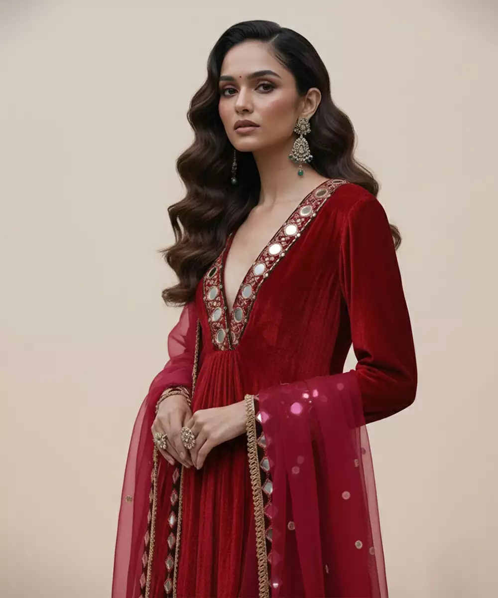 Stunning Maroon Embroidered Organza Sharara Set Crafted In A Lightweight, Sheer Fabric With A Delicate Sheen. Intricate Embroidery Adds Festive Elegance, While The Flared Sharara And Coordinated Top Create A Graceful, Stylish Silhouette. Perfect For Weddings, Festive Celebrations, And Evening Occasions.