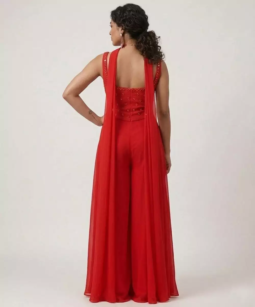 This Crimson Red Georgette Co Ord Set Showcases Intricate Embroidery That Elevates Its Rich And Festive Charm. The Flowy Fabric Ensures A Comfortable Fit With Graceful Movement. Ideal For Celebrations, It Pairs Beautifully With Statement Jewelry To Create A Bold, Elegant, And Timeless Look.