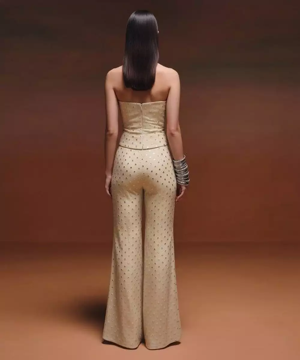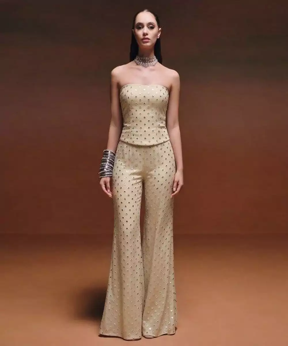 This Gold Silk Co Ord Set Is Beautifully Embroidered For A Rich And Festive Appearance. The Lustrous Fabric Adds Luxury While The Structured Silhouette Offers Modern Charm. Perfect For Weddings, Receptions, And Grand Celebratory Occasions.