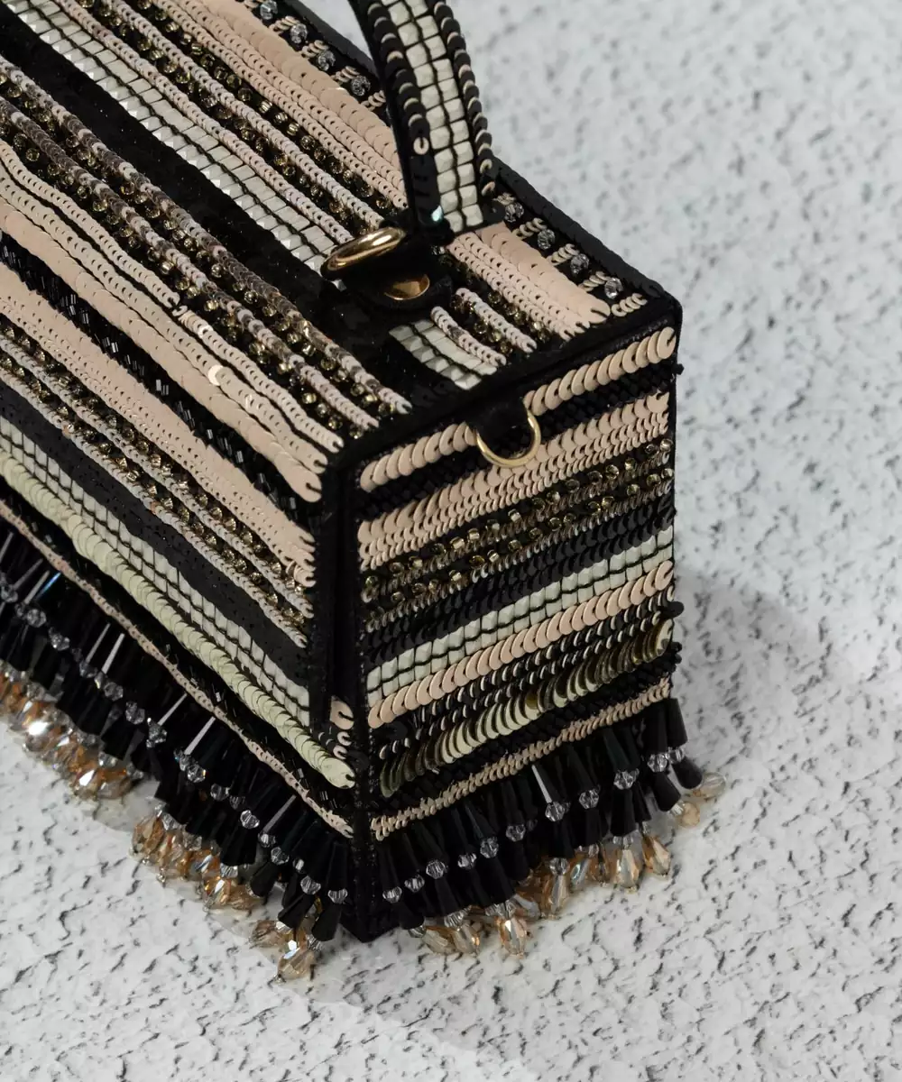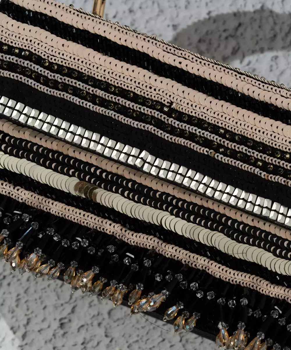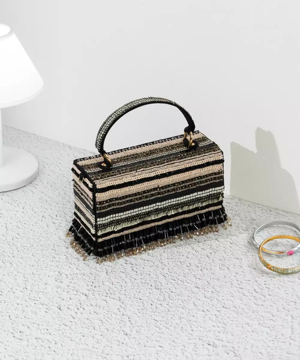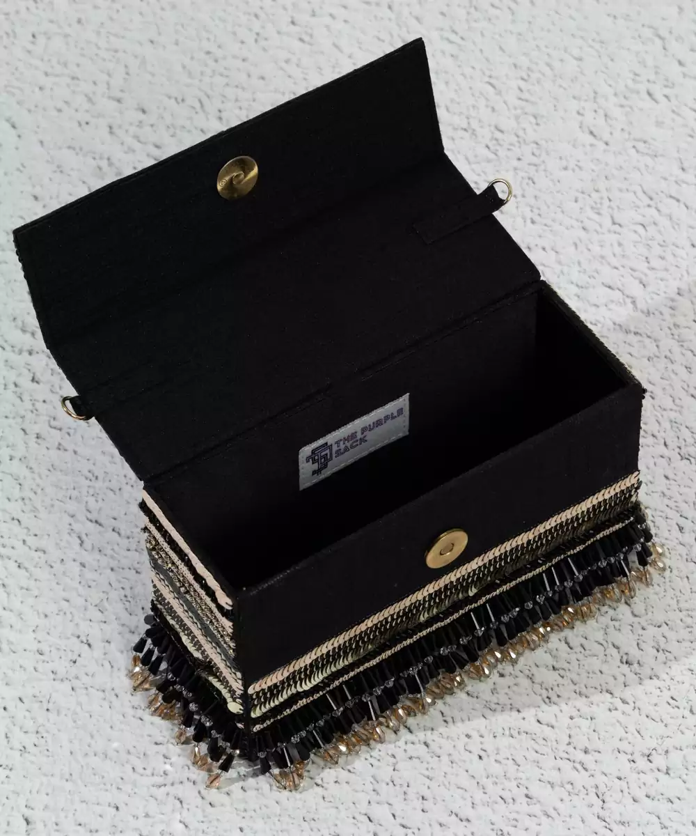 This Black Silk Sequin Embroidered Clutch Is A Chic And Elegant Accessory Perfect For Evening Events. Made From Premium Silk, It Features Shimmering Sequin Embroidery That Adds A Sophisticated Sparkle. Compact Yet Functional, With A Secure Closure, It Is Ideal For Weddings, Parties, And Festive Occasions, Complementing Both Traditional And Modern Outfits.
