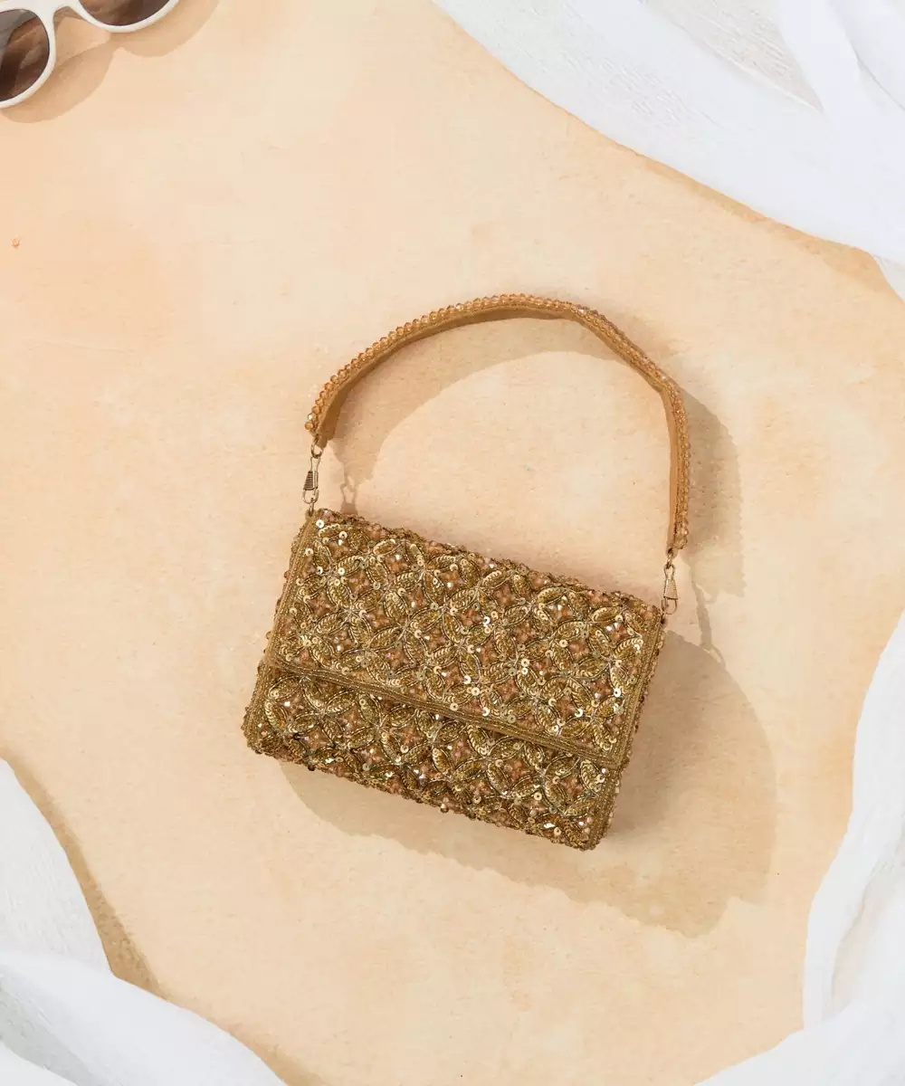 Gold Silk Sequin Embroidered Clutch