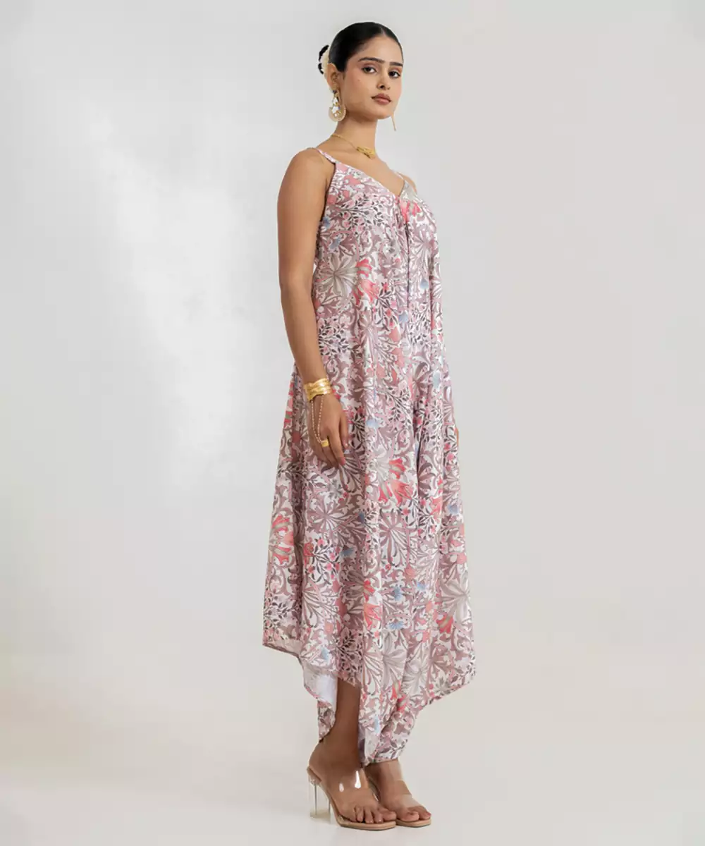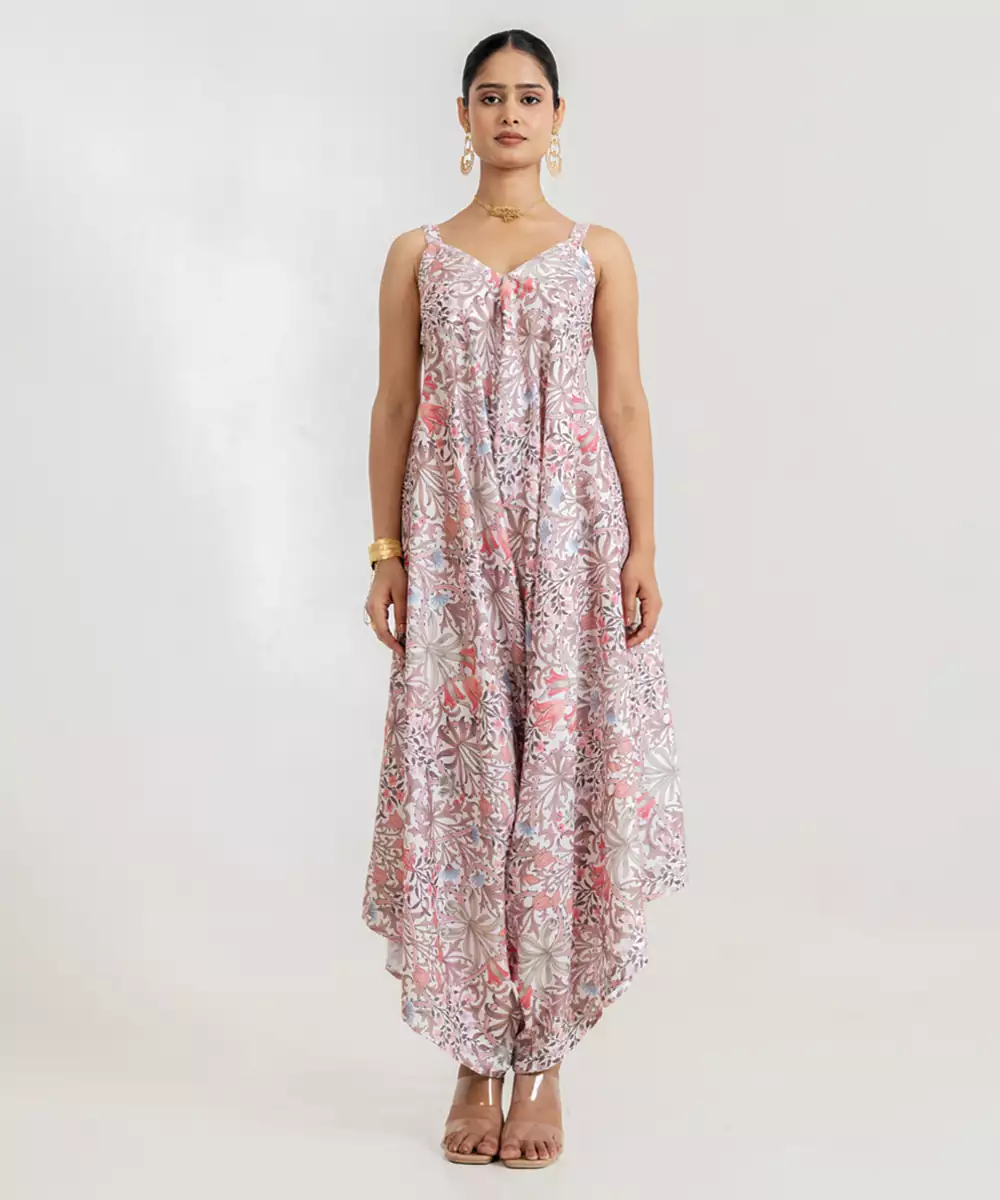 Fresh And Elegant, This White Printed Cotton Rayon Jumpsuit Showcases Delicate Patterns On A Breathable Base. The Lightweight Fabric Ensures Comfort, While The Clean Hue Adds Sophistication. Perfect For Daytime Outings, It Offers A Stylish And Effortless Look With A Touch Of Minimal Charm.