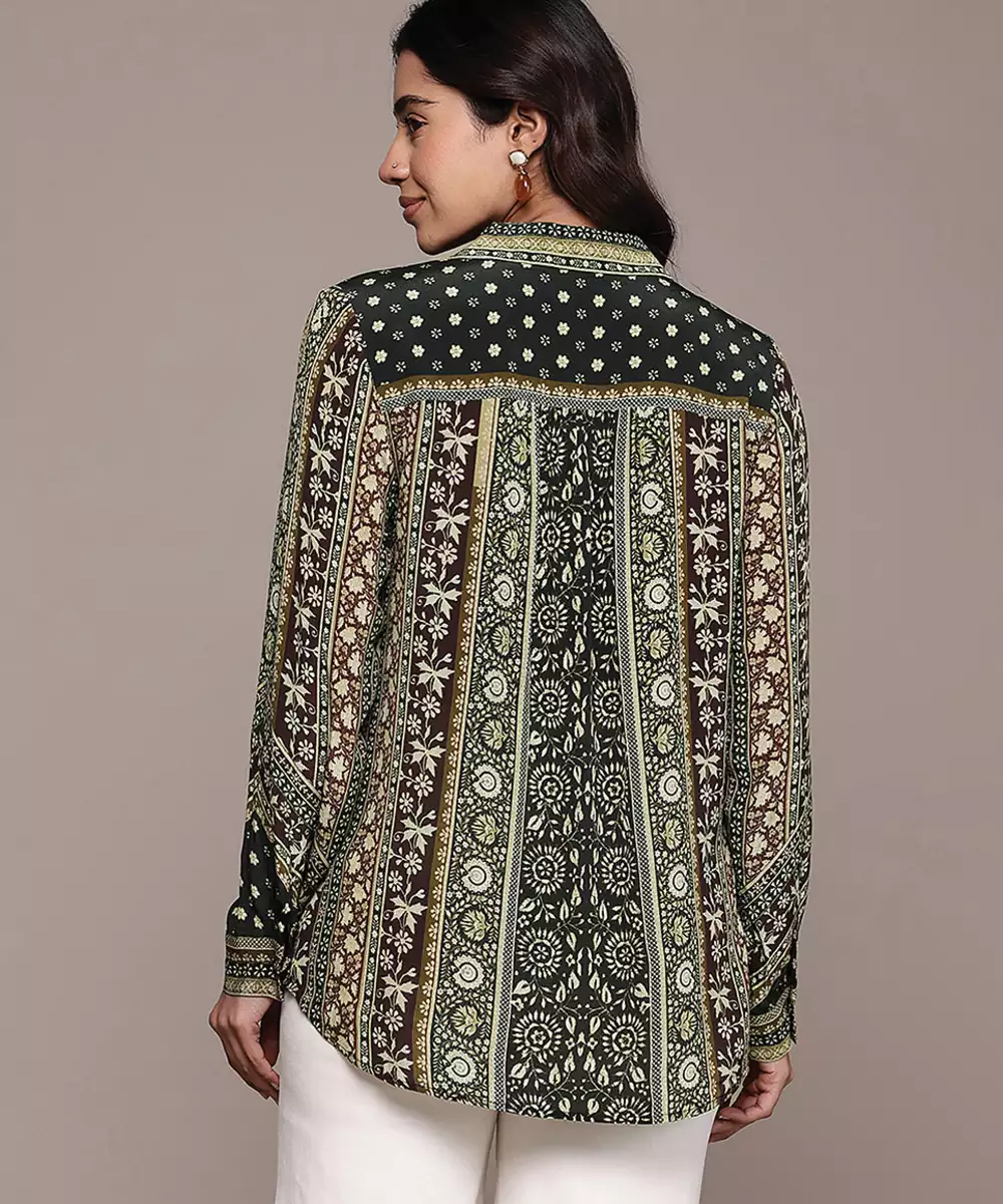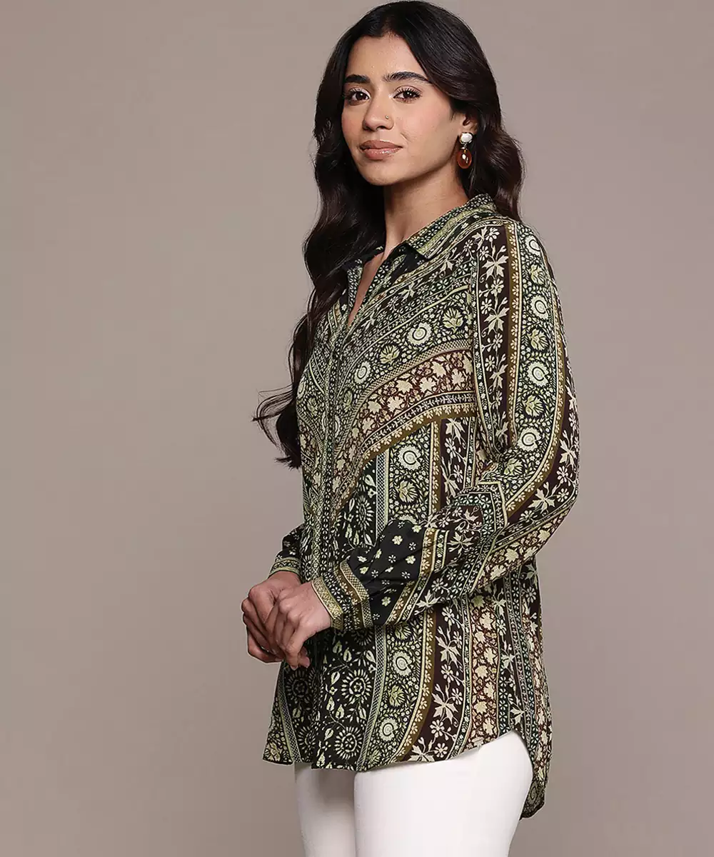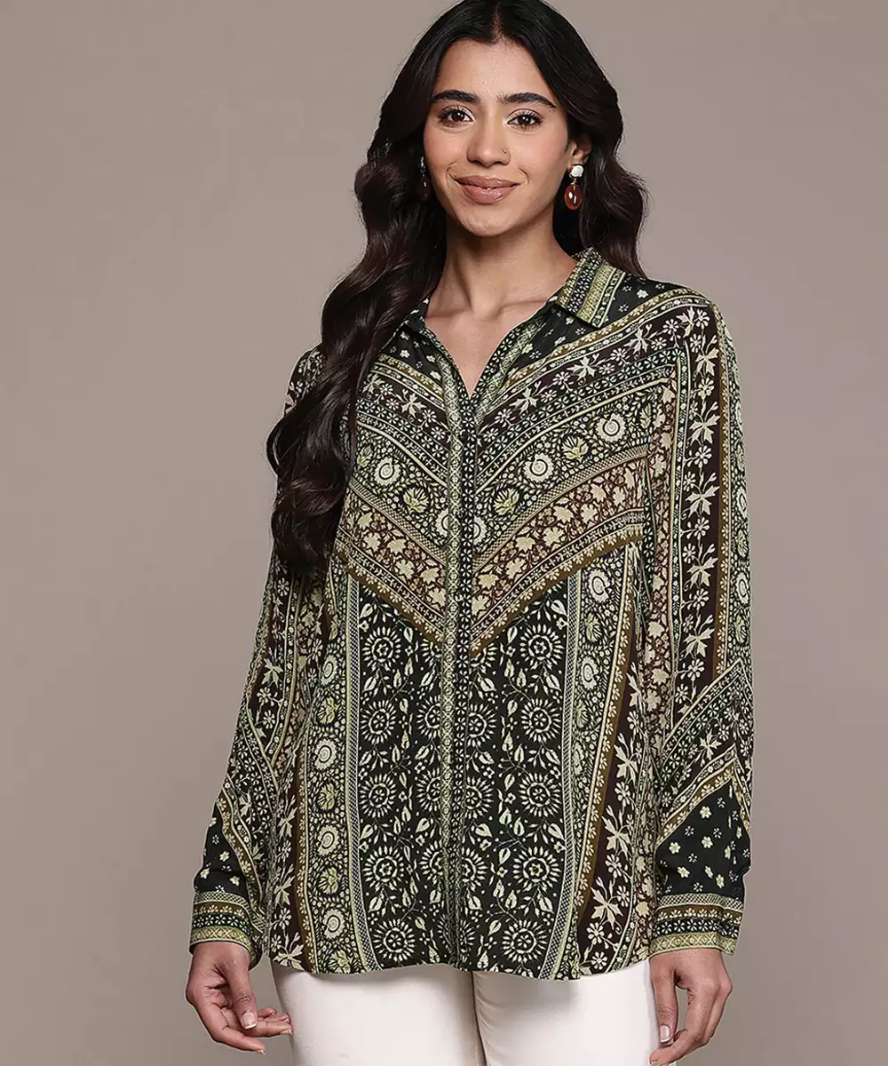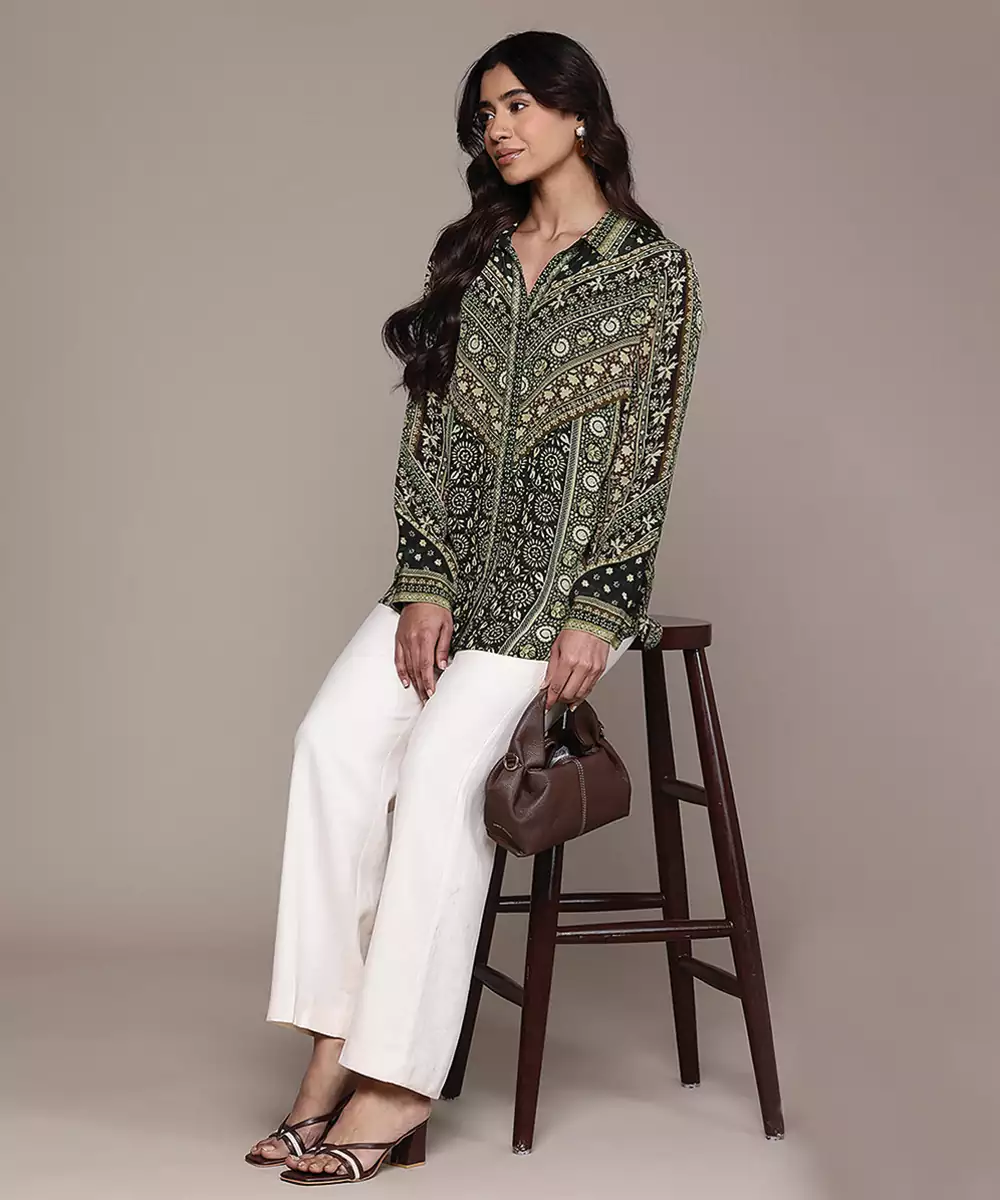 Black Printed Crepe Shirt