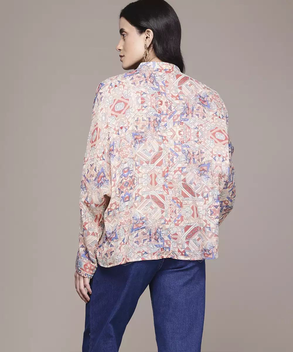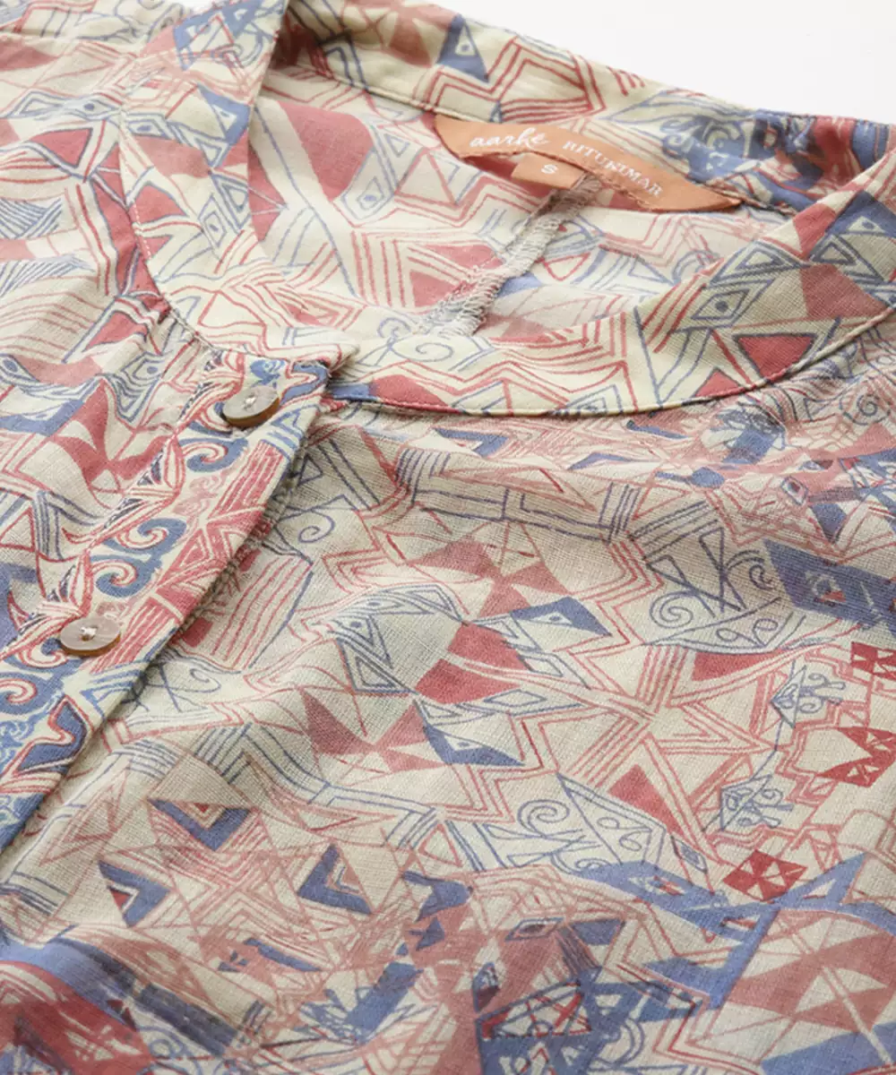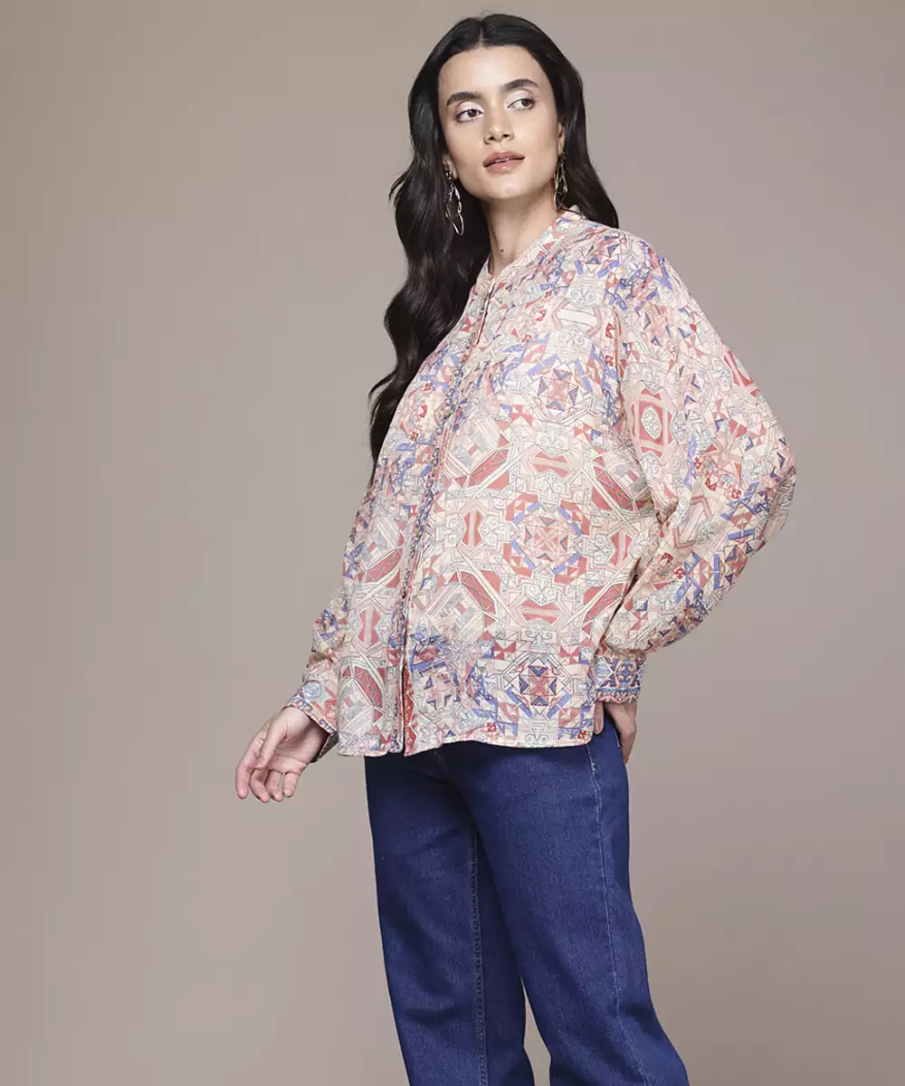 Multicolor Cotton Shirt With Printed Work Design