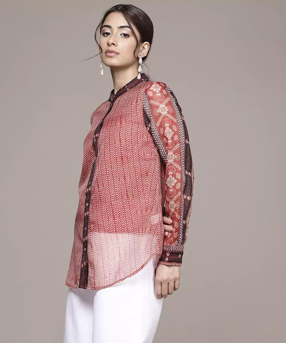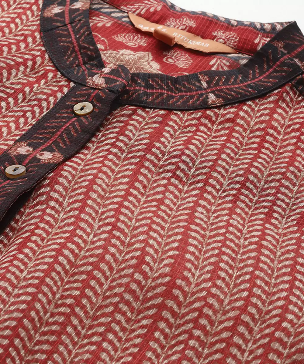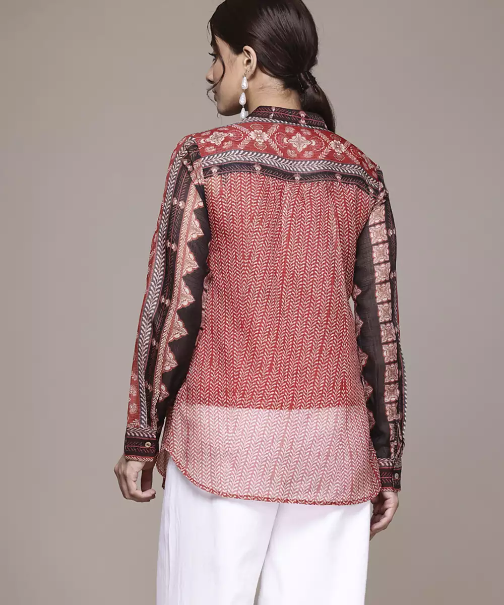 This Rust Cotton Shirt Features Printed Work Designed Across The Fabric. The Breathable Cotton Material Supports Comfort During Extended Wear, Making It Suitable For Casual Outings And Everyday Use. The Printed Pattern Adds Visual Detail While Maintaining A Clean And Structured Appearance. Full Sleeves Provide Coverage And Contribute To A Balanced Fit. The Stitched Construction Ensures A Ready To Wear Garment. The Rust Color Pairs Well With Different Bottoms, Offering Flexible Styling Options. This Shirt Combines Lightweight Fabric With Consistent Printed Detailing For A Practical Wardrobe Choice.