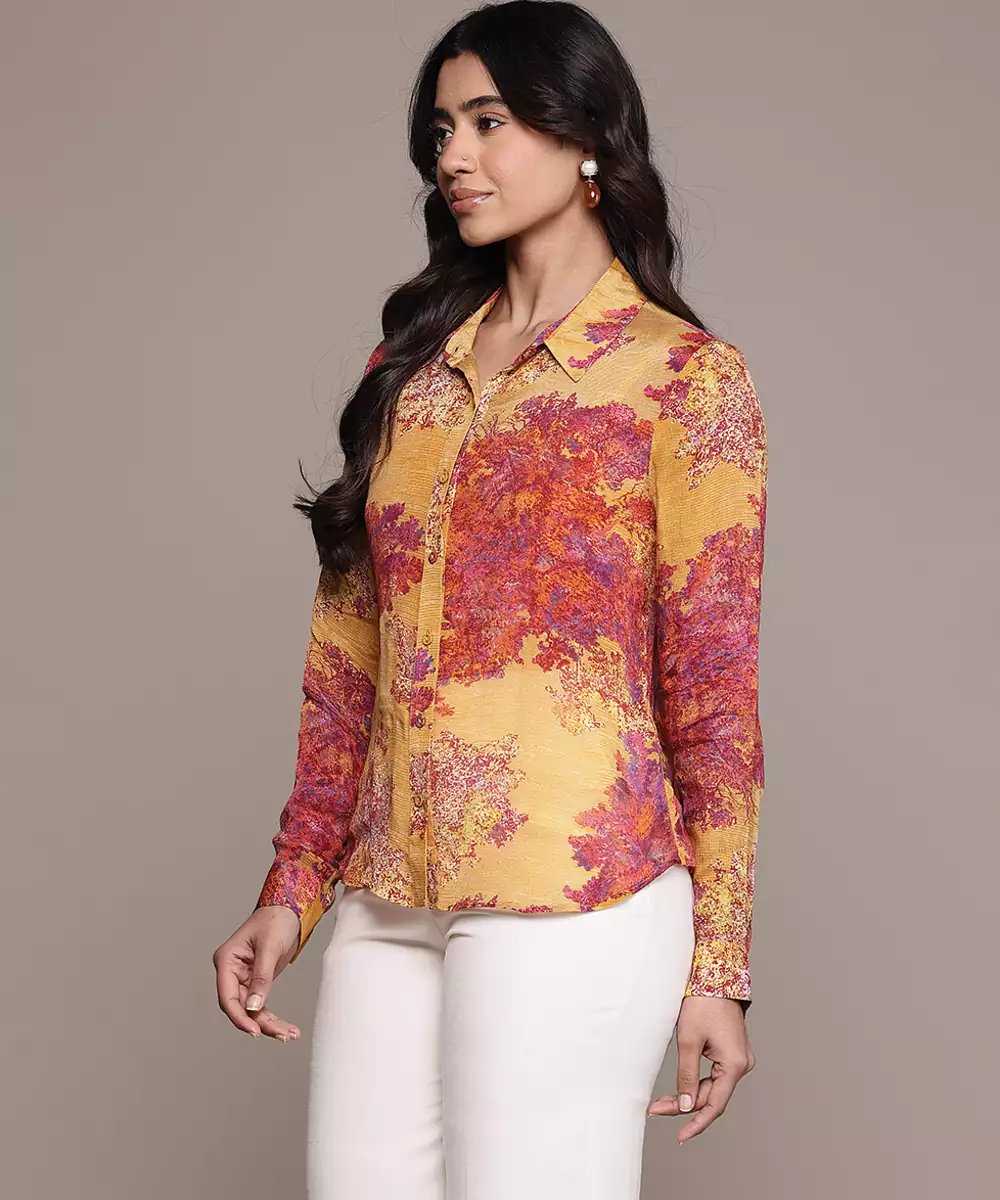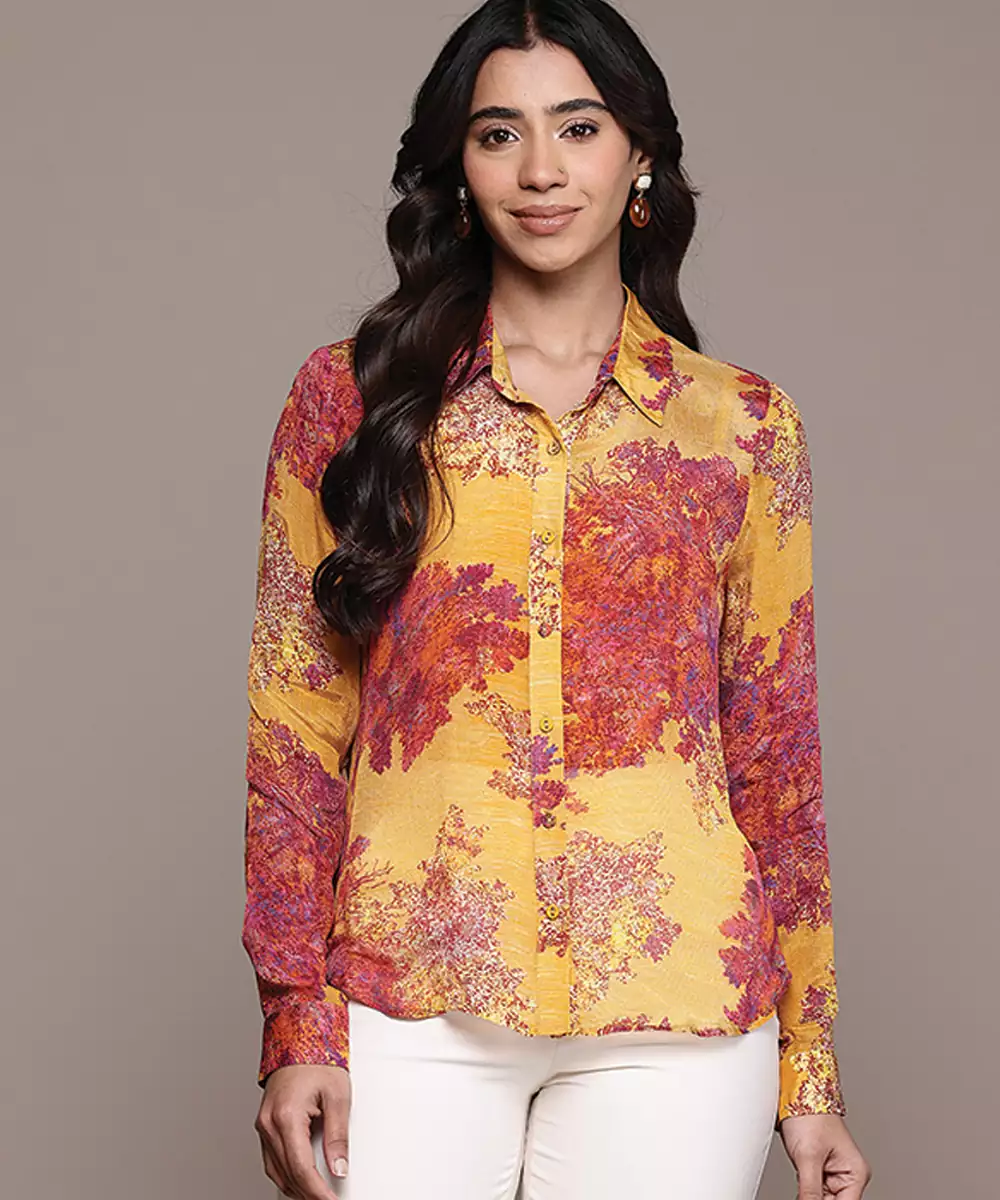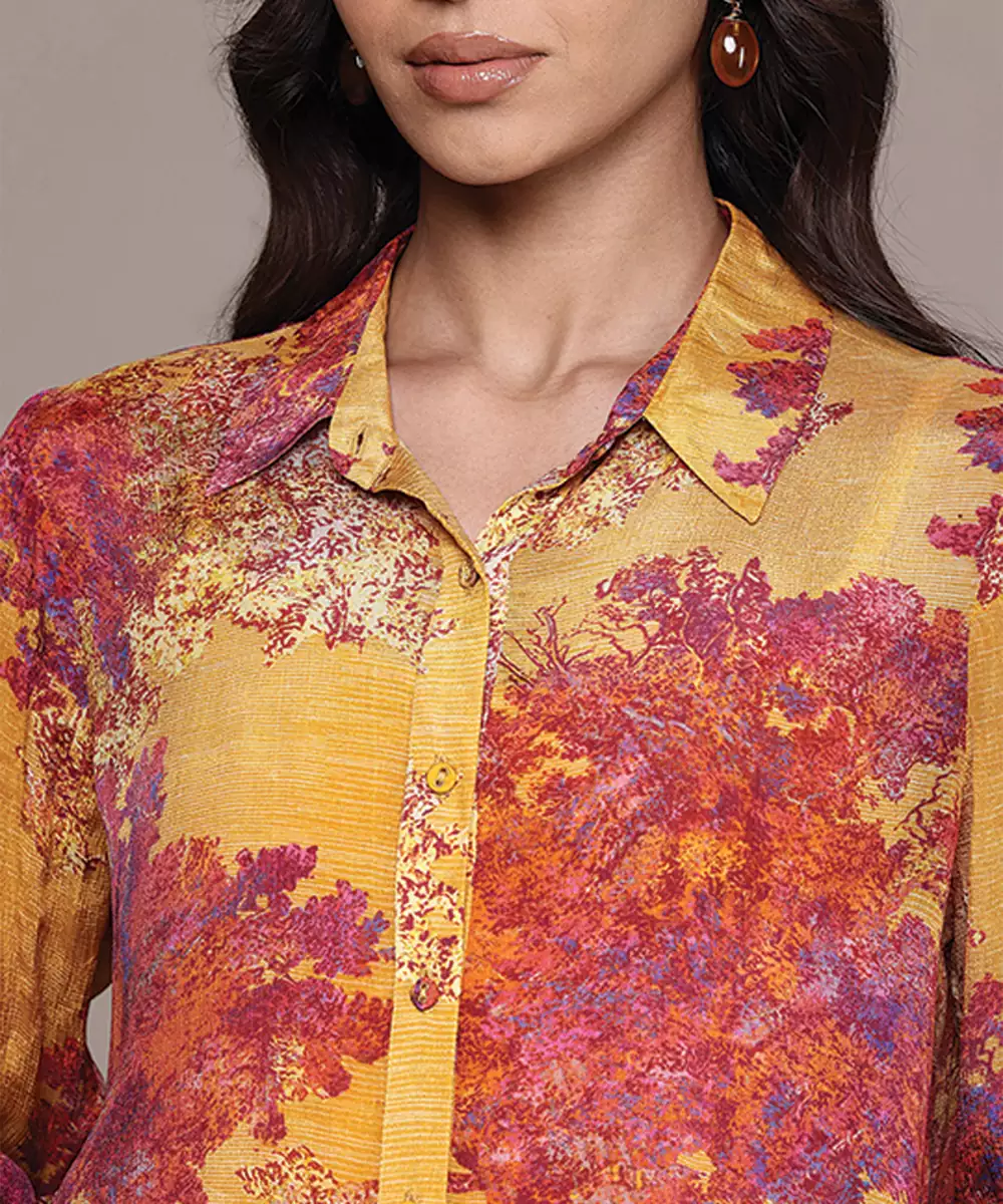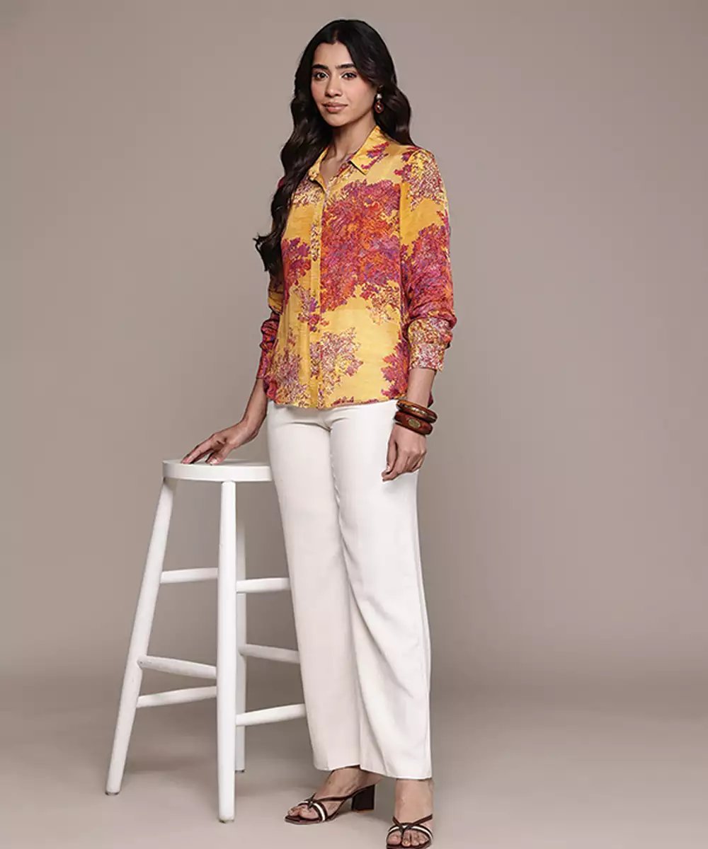 Yellow Printed Chinon Shirt