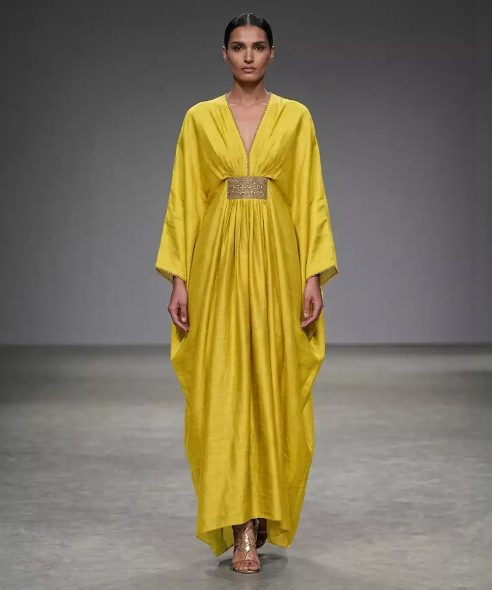 Mustard Yellow Laced Silk Kaftan