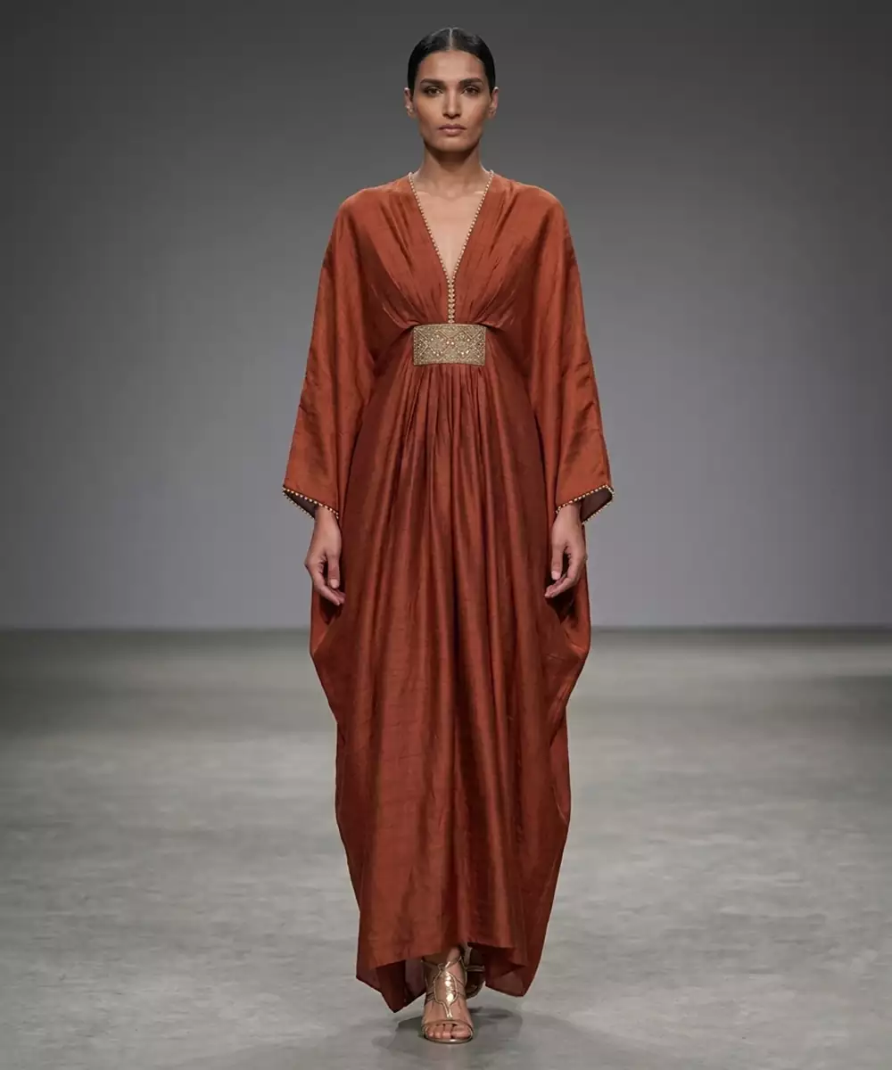 Rust Orange Laced Silk Kaftan