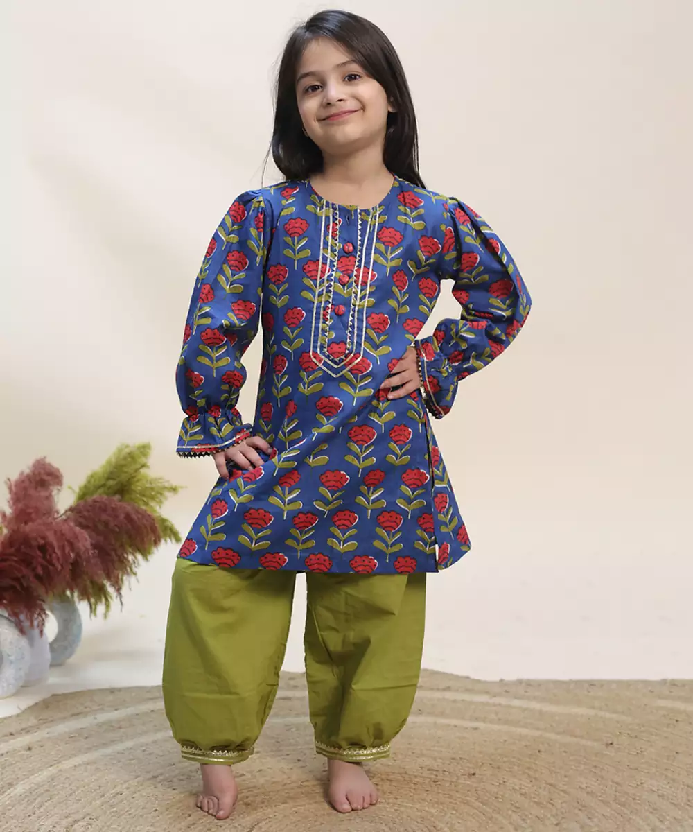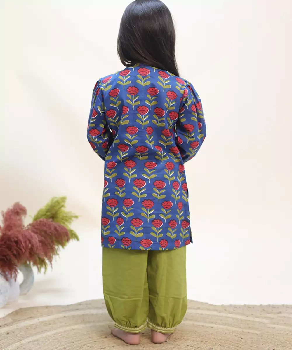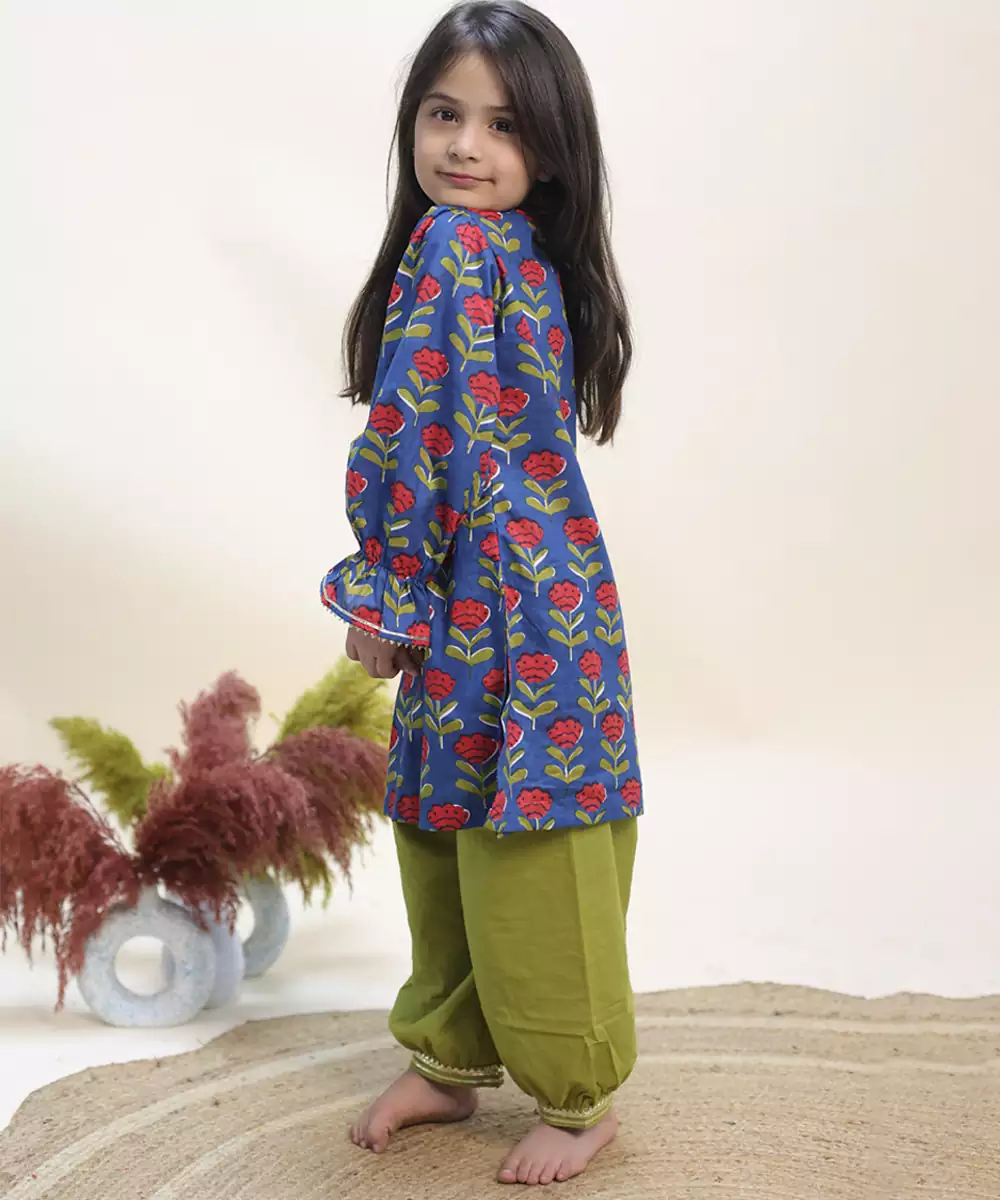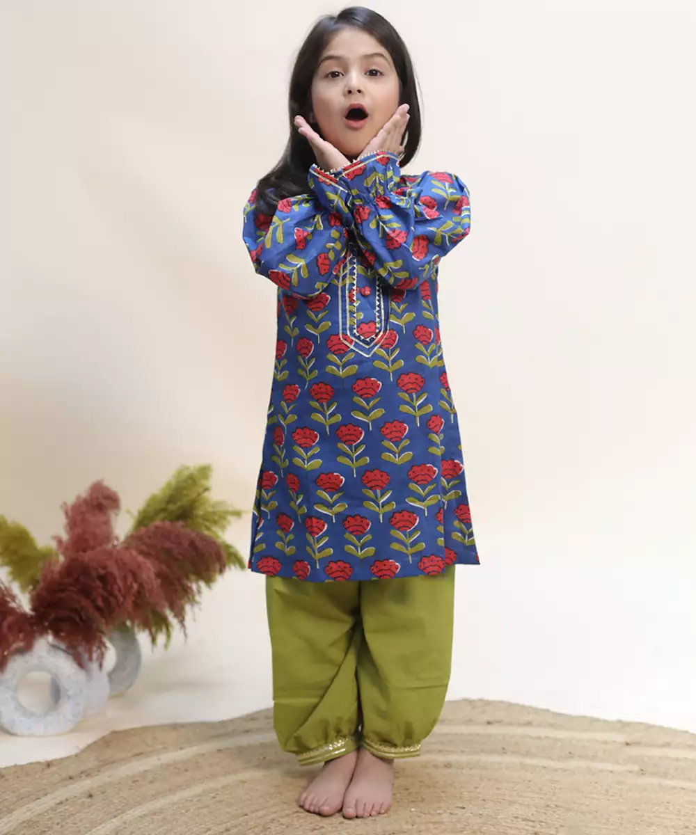 This Blue Cotton Kurta Set Features Classic Prints On A Soft, Airy Base. Designed For Daily Wear And Festive Mornings, It Offers Breathable Comfort And Relaxed Elegance. The Coordinated Silhouette Delivers A Polished Look While Maintaining The Charm Of Traditional Cotton Craftsmanship.