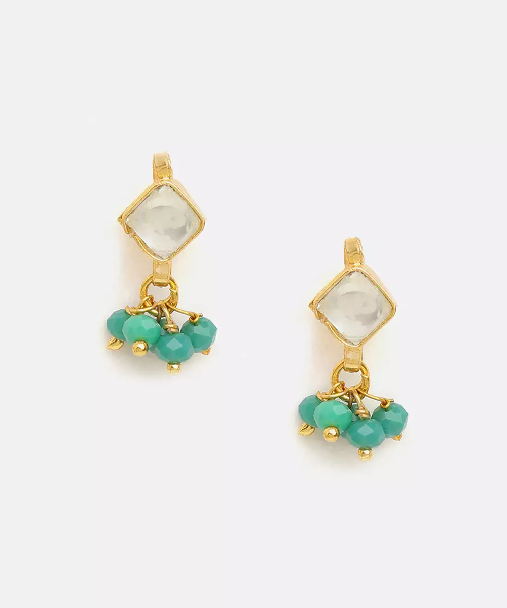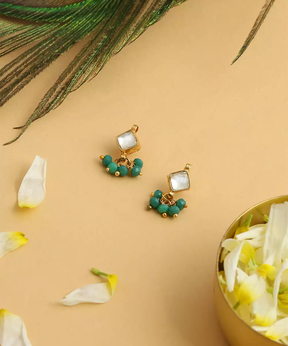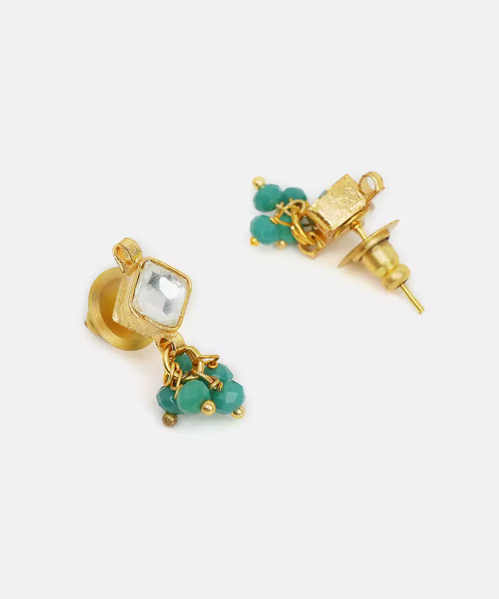 These Gold Plated Kundan Earrings Showcase Luminous Green Stones In A Traditional Setting. The Intricate Detailing Reflects Fine Craftsmanship, Creating A Regal Appeal. Perfect For Festive Wear, Weddings, And Bridal Ensembles, They Complement Sarees And Lehengas, Adding Elegance, Richness, And A Timeless Ethnic Charm To Your Look.