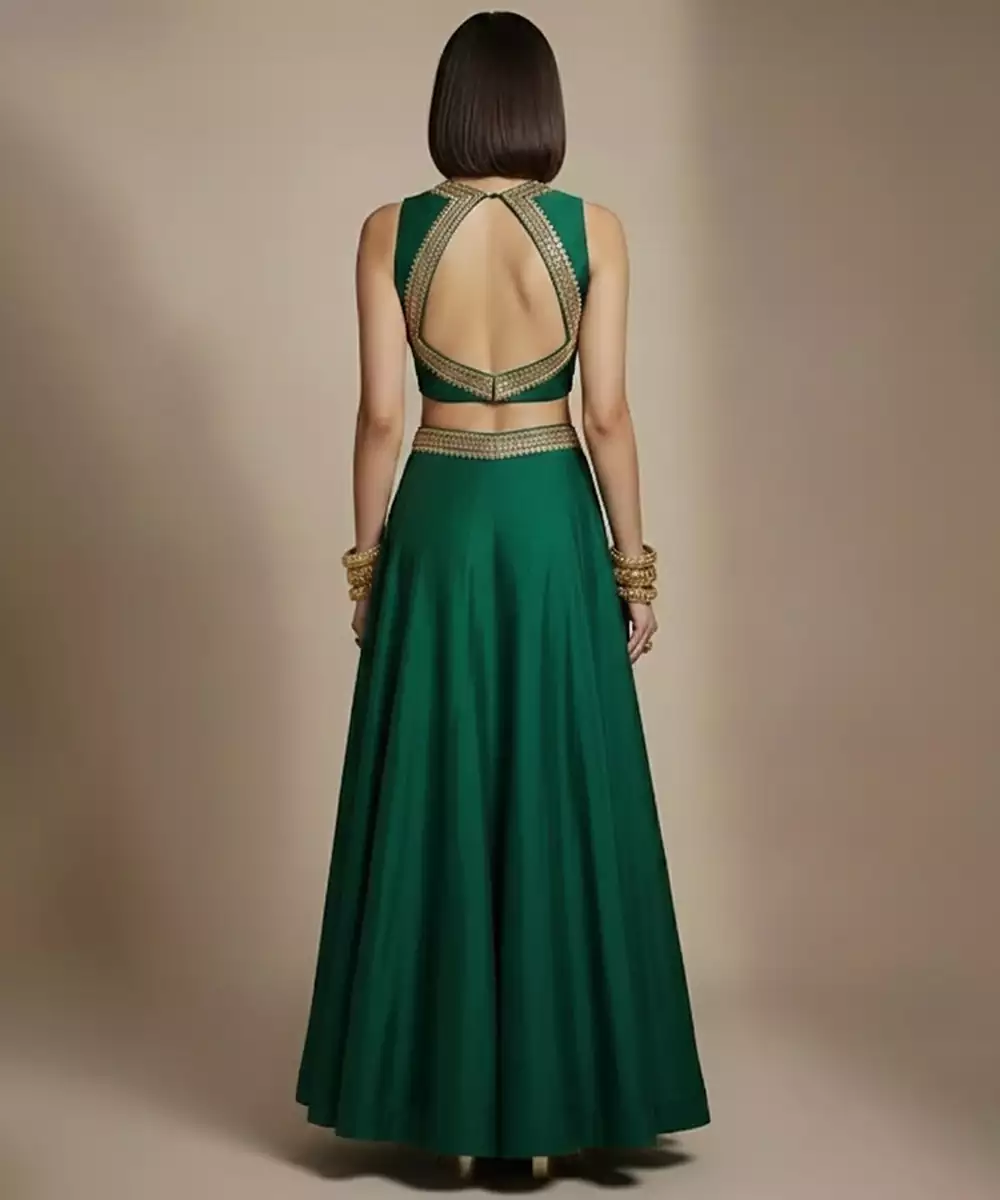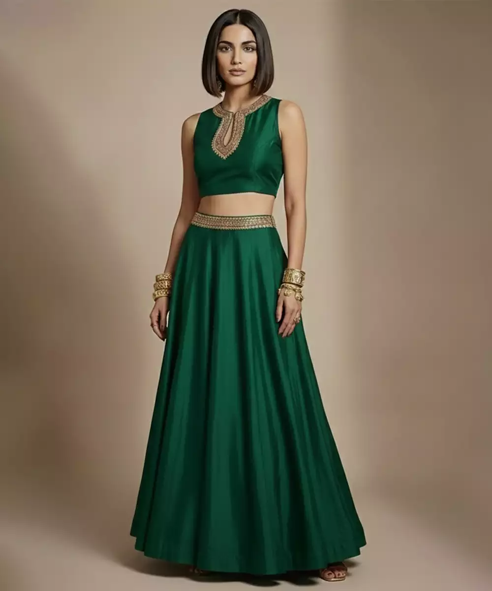 Emerald Green Embroidered Silk Co Ord Set
