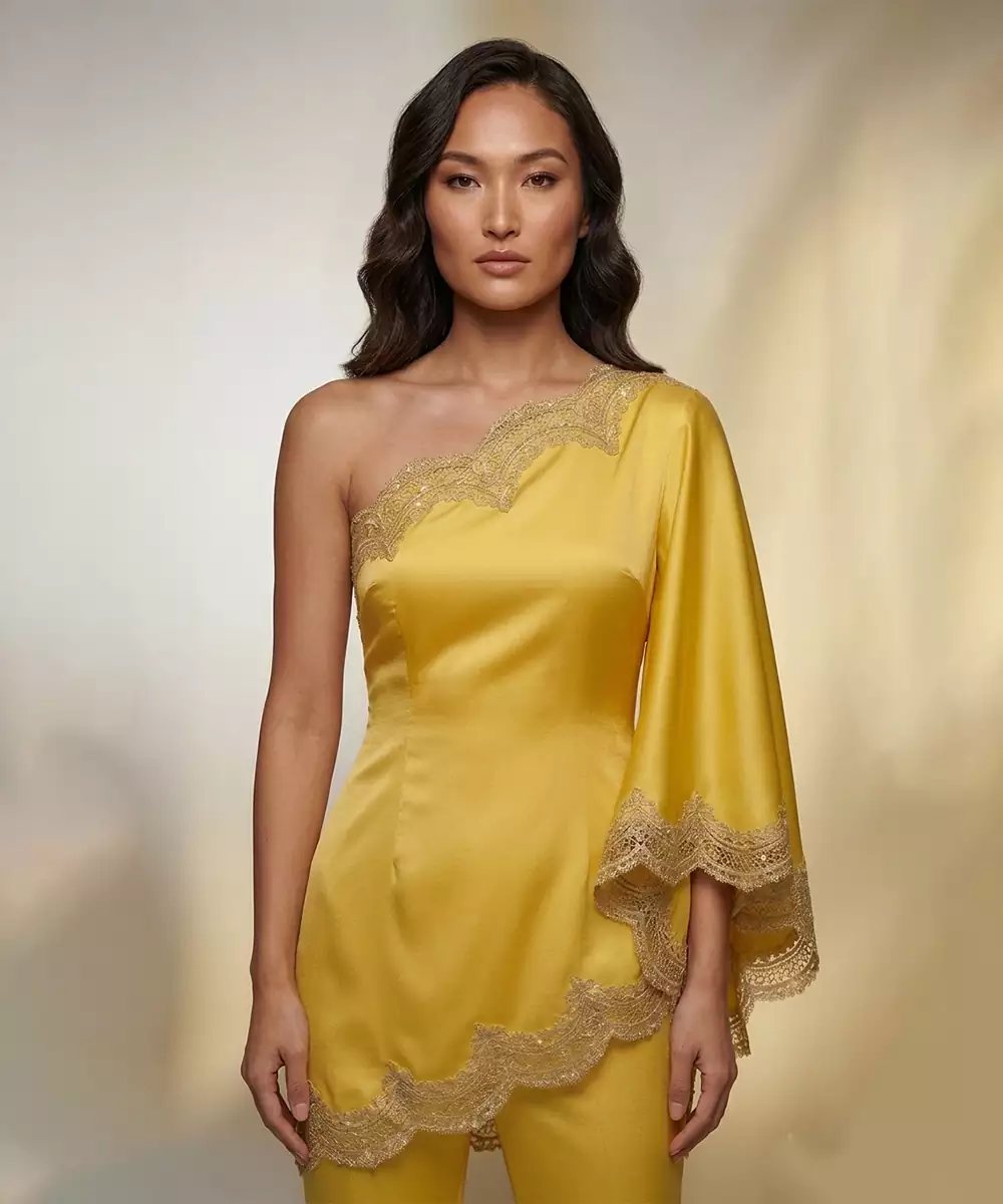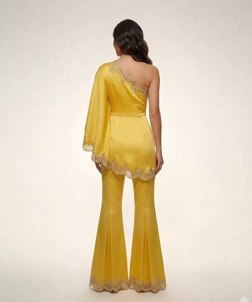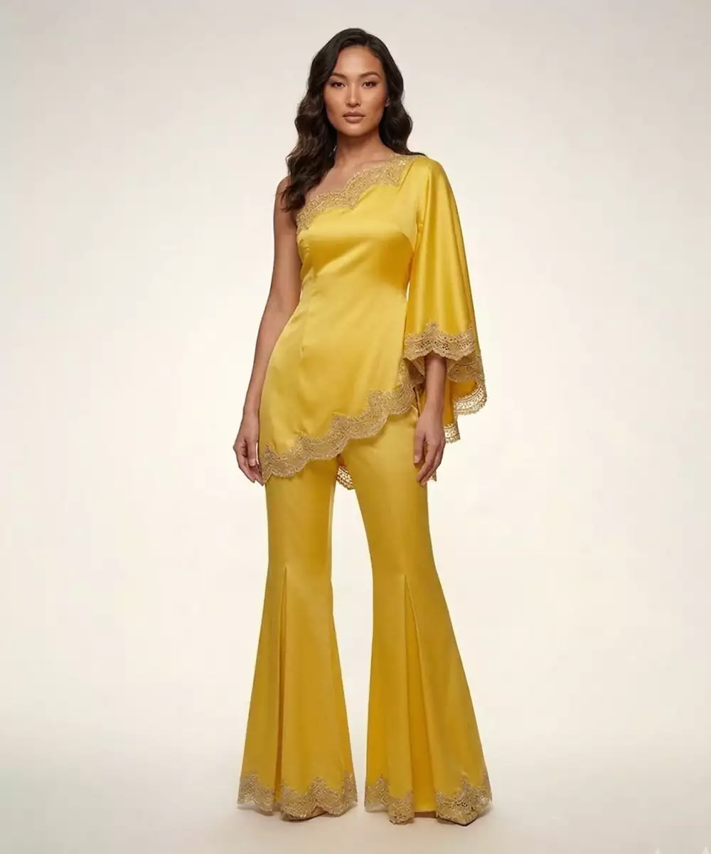 Radiating Brightness, This Yellow Satin Co Ord Set Features Intricate Embroidery That Elevates Its Modern Appeal. The Smooth Fabric Ensures A Comfortable Fit While Adding A Subtle Sheen. Perfect For Festive Occasions Or Casual Celebrations, It Can Be Styled Effortlessly With Minimal Accessories For A Chic, Contemporary Look.
