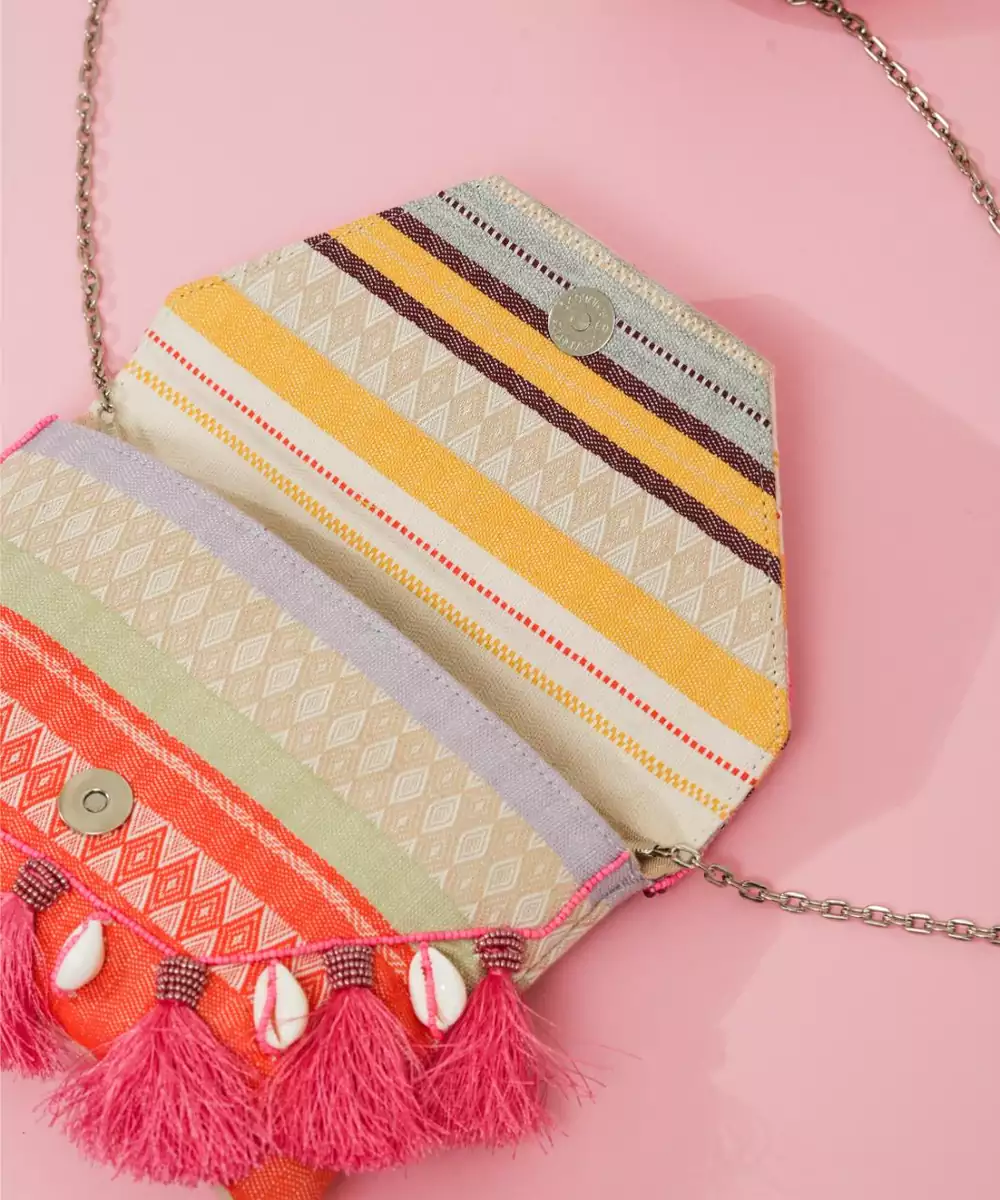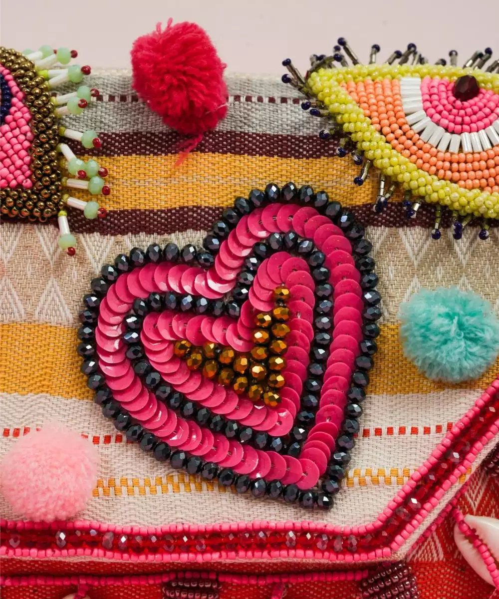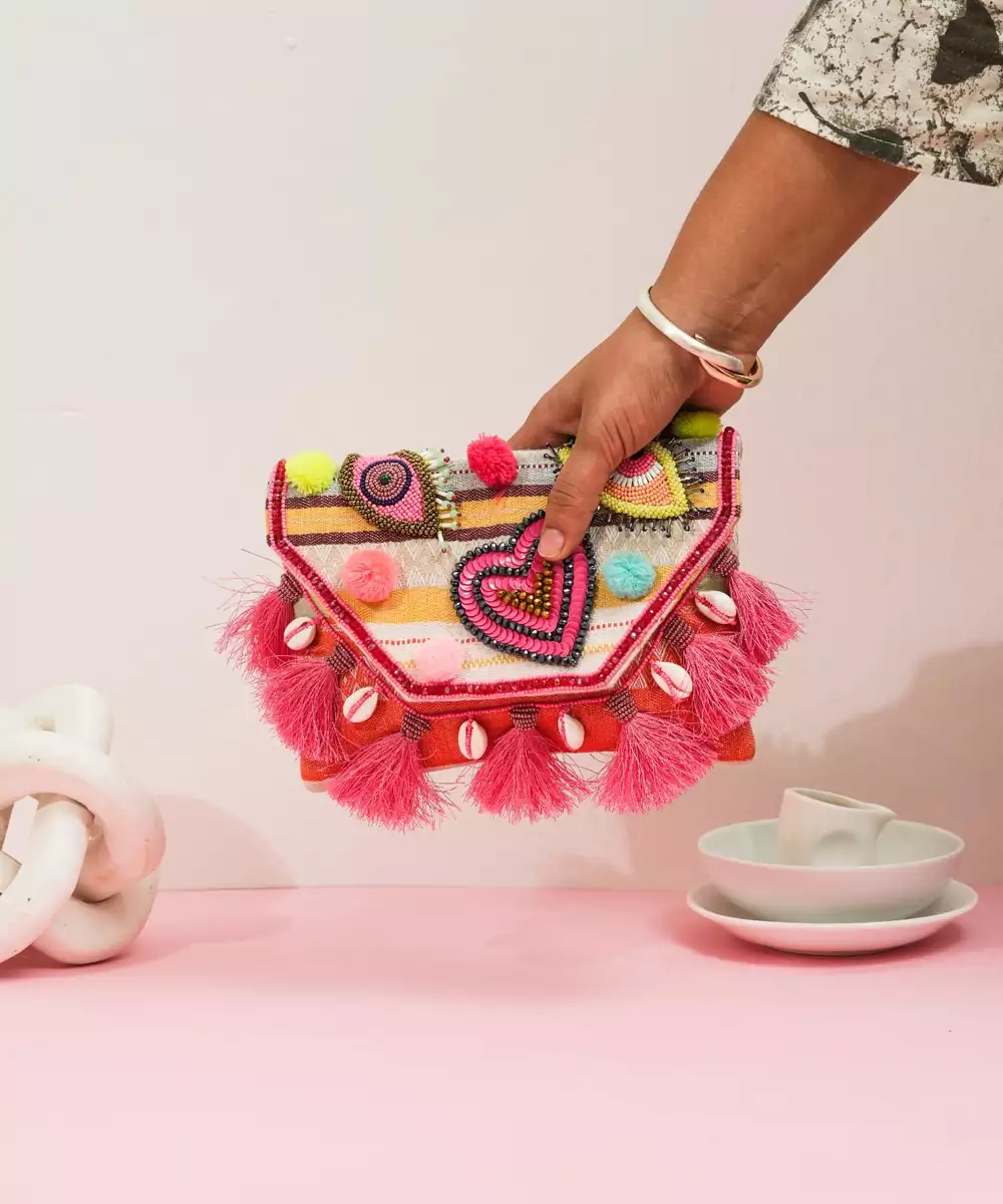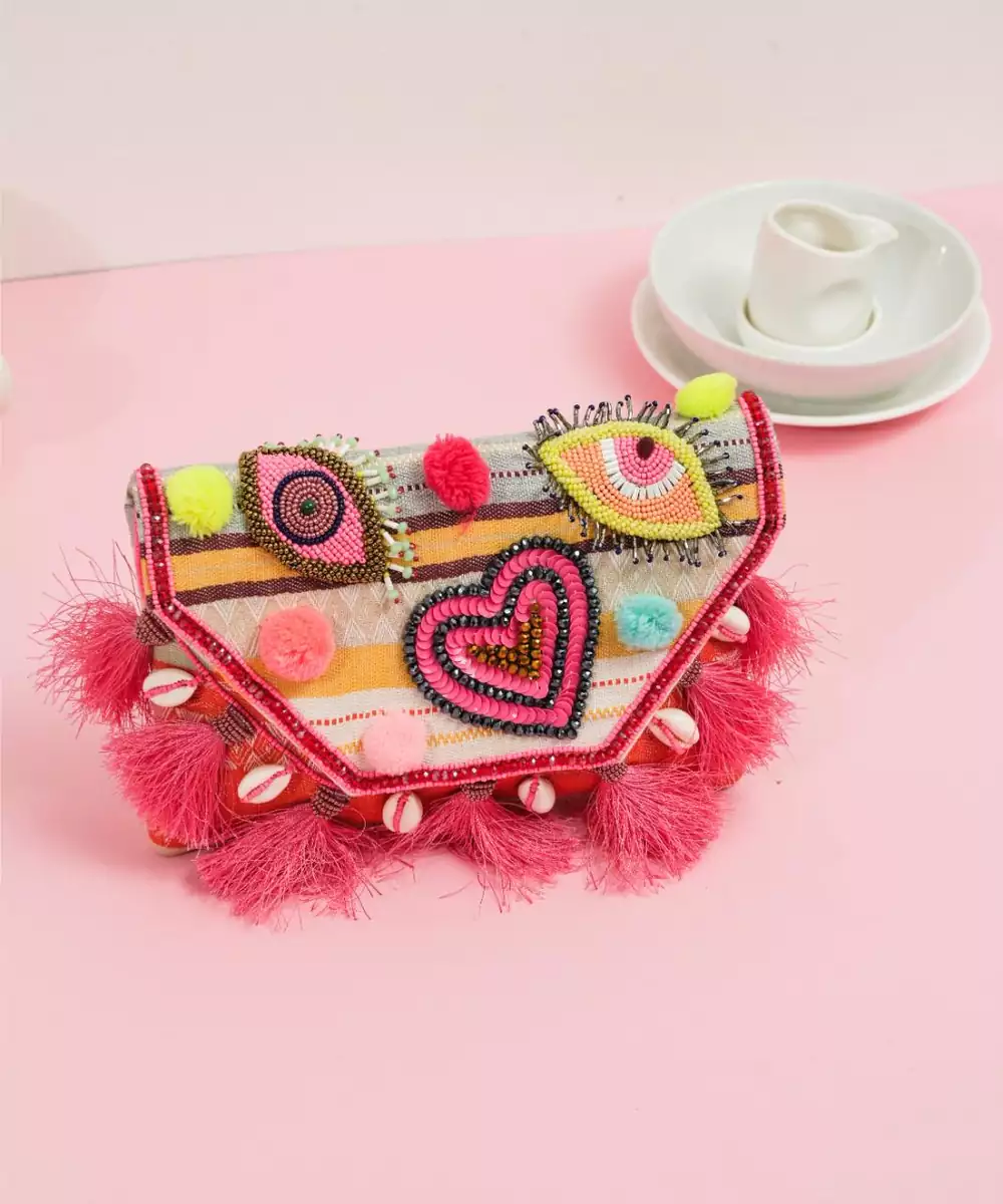 This Multicolor Jacquard Beads Embroidered Clutch Is A Vibrant And Elegant Accessory For Special Occasions. Crafted From Rich Jacquard Fabric, It Features Intricate Bead Embroidery That Adds Sparkle And Sophistication. With Its Eye Catching Multicolor Design And Secure Closure, It Is Perfect For Weddings, Festive Celebrations, And Evening Parties.