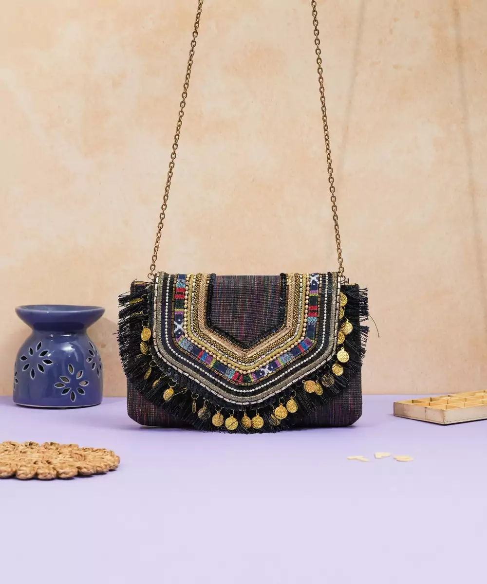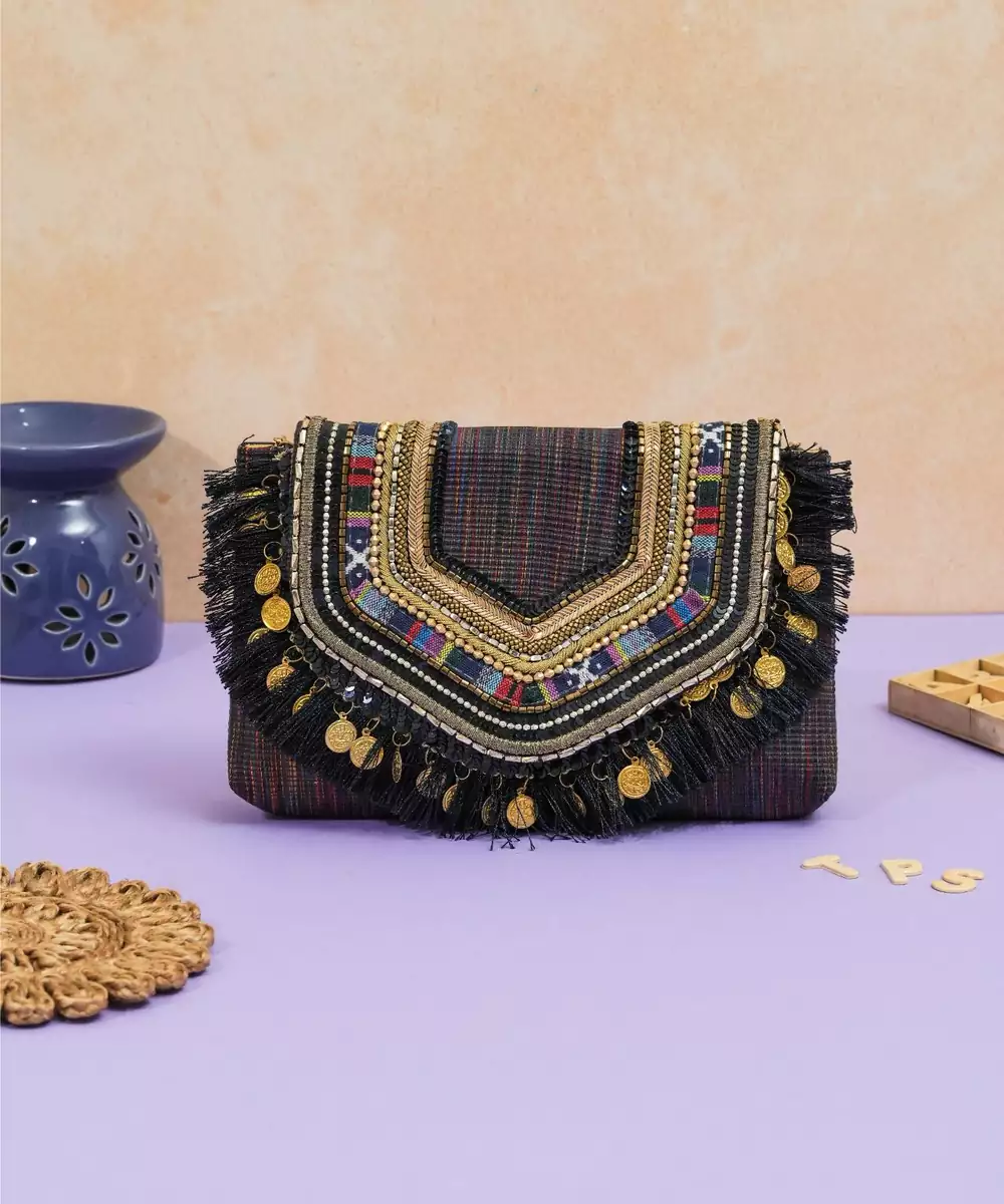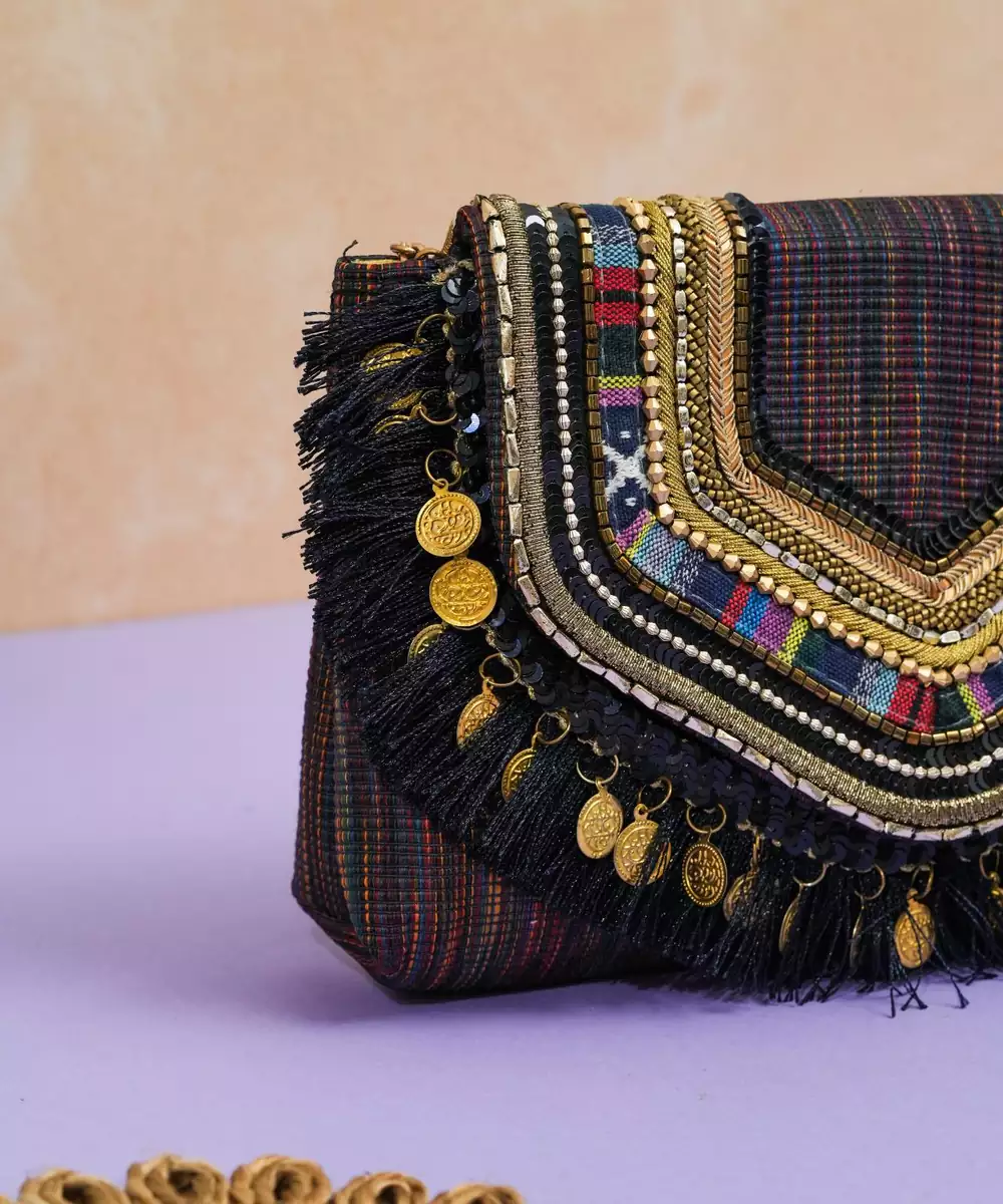 Multicolor Jacquard Thread Embroidered Clutch