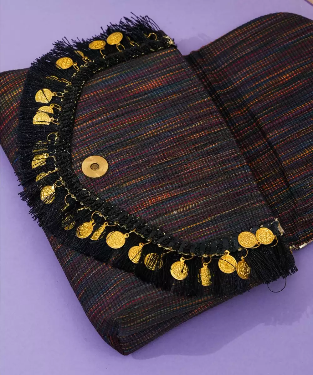 This Multicolor Jacquard Thread Embroidered Clutch Is A Vibrant And Stylish Accessory That Blends Tradition With Contemporary Charm. Crafted From Premium Jacquard Fabric, It Features Intricate Multicolor Thread Embroidery, Adding Texture And Elegance. Compact Yet Functional, It Comes With A Secure Closure, Making It Perfect For Weddings, Festive Events, And Evening Gatherings.