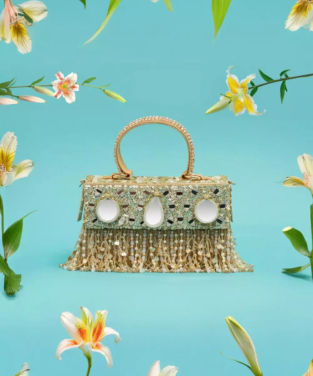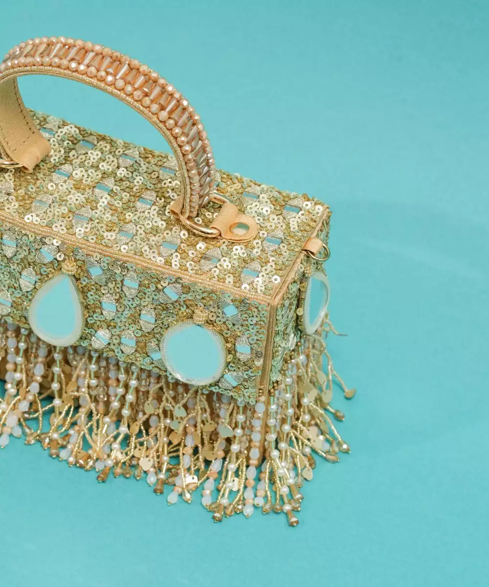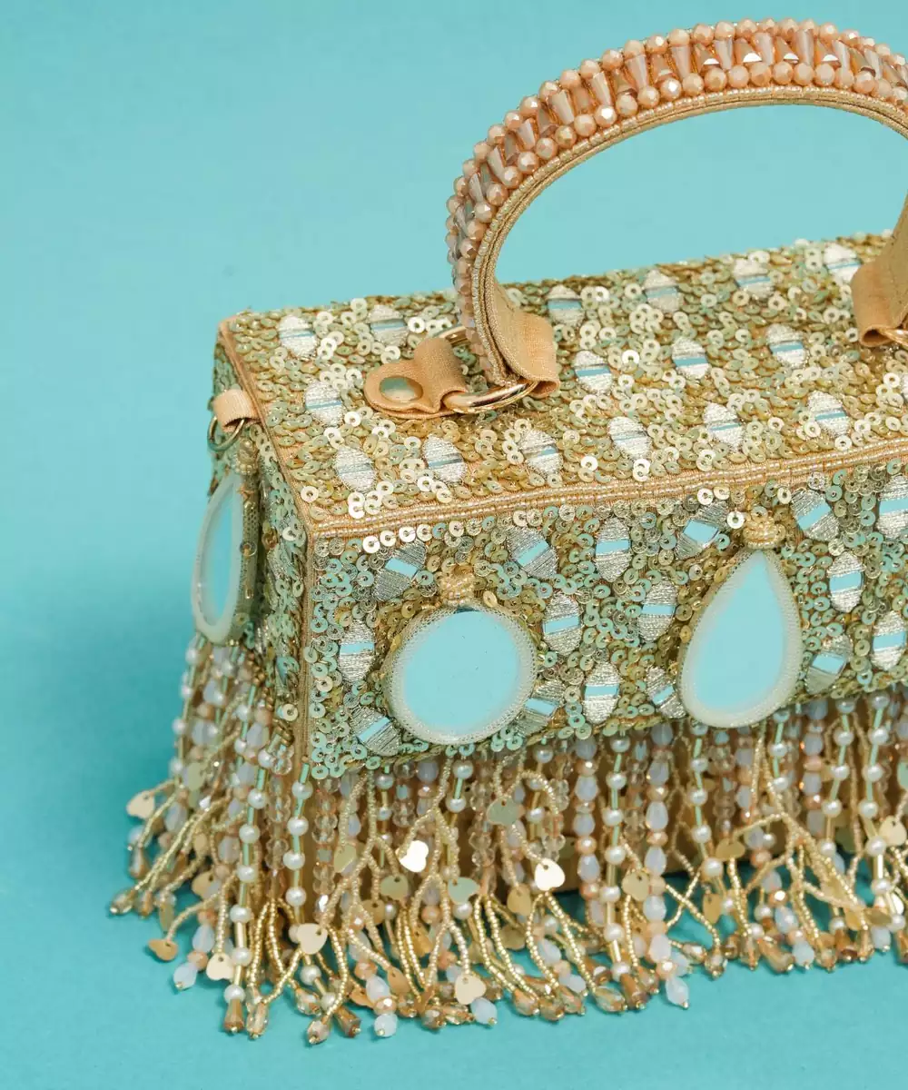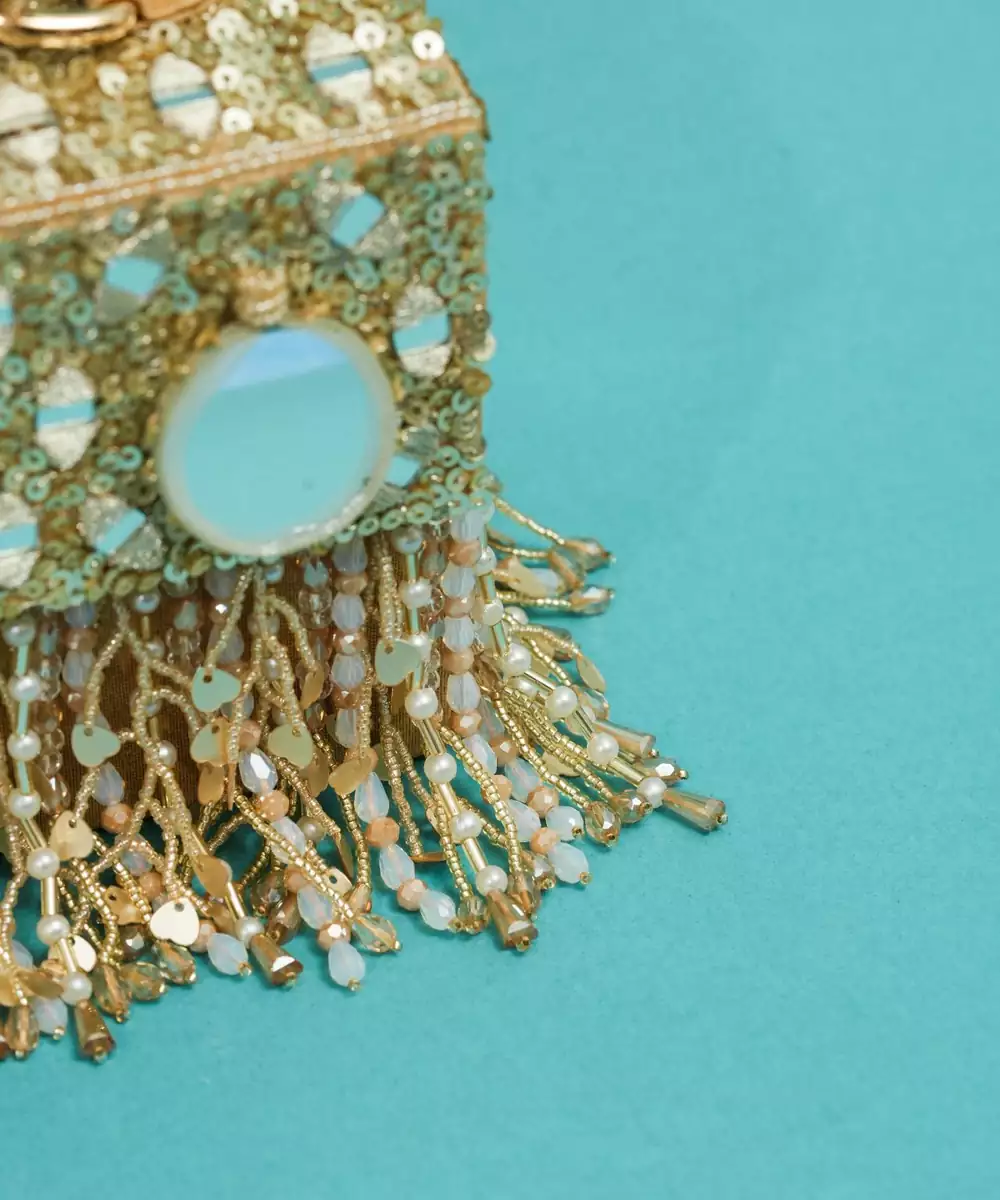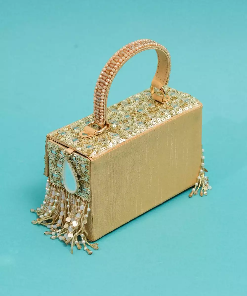 This Multicolor Silk Pearl Embroidered Clutch Is A Chic And Elegant Accessory For Festive And Special Occasions. Crafted From Premium Silk, It Features Delicate Pearl Embroidery In Vibrant Hues, Adding A Luxurious And Sophisticated Touch. Compact Yet Spacious, With A Secure Closure, It Is Perfect For Weddings, Parties, And Evening Celebrations.