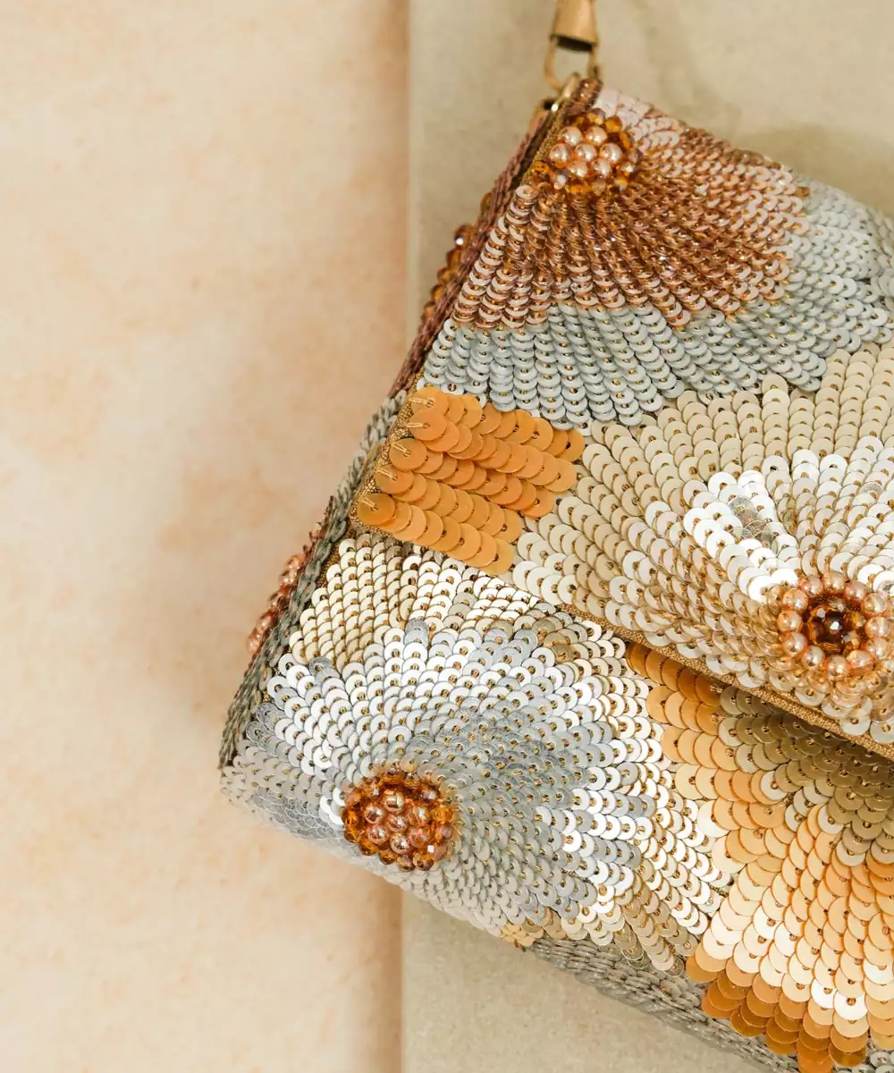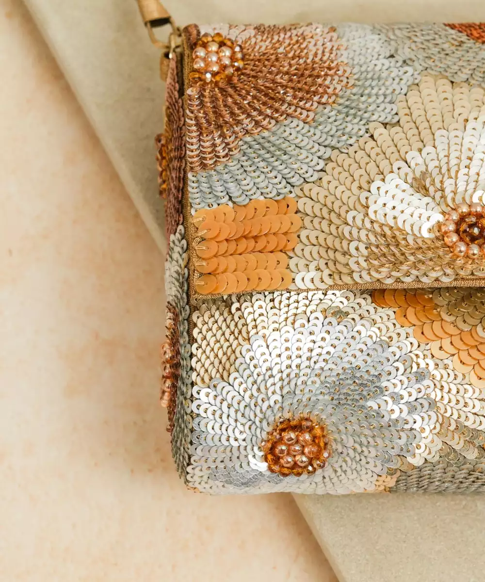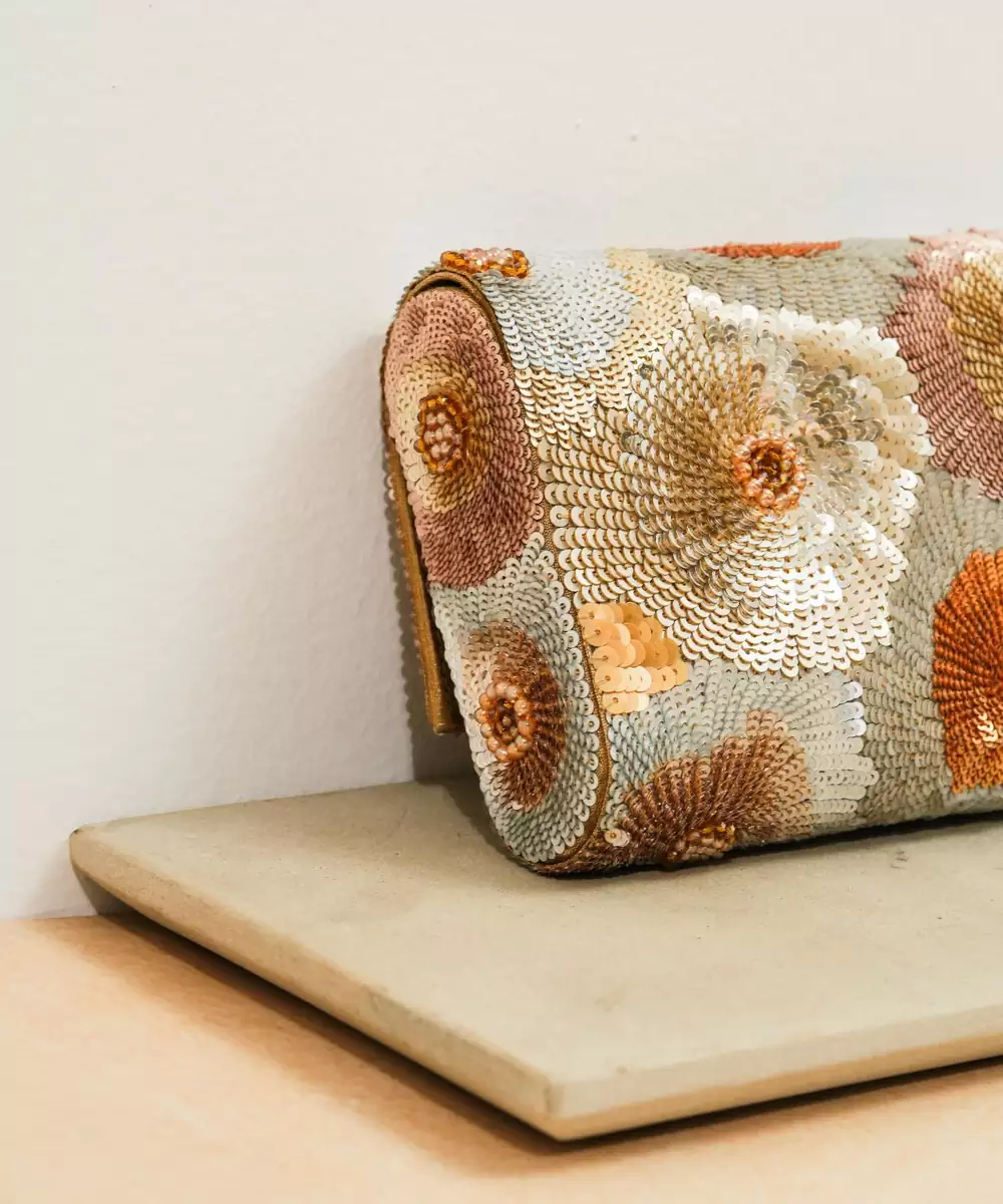 Multicolor Silk Sequin Embroidered Clutch
