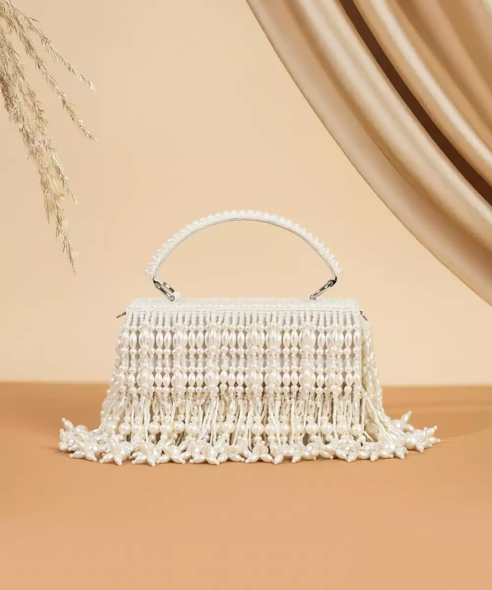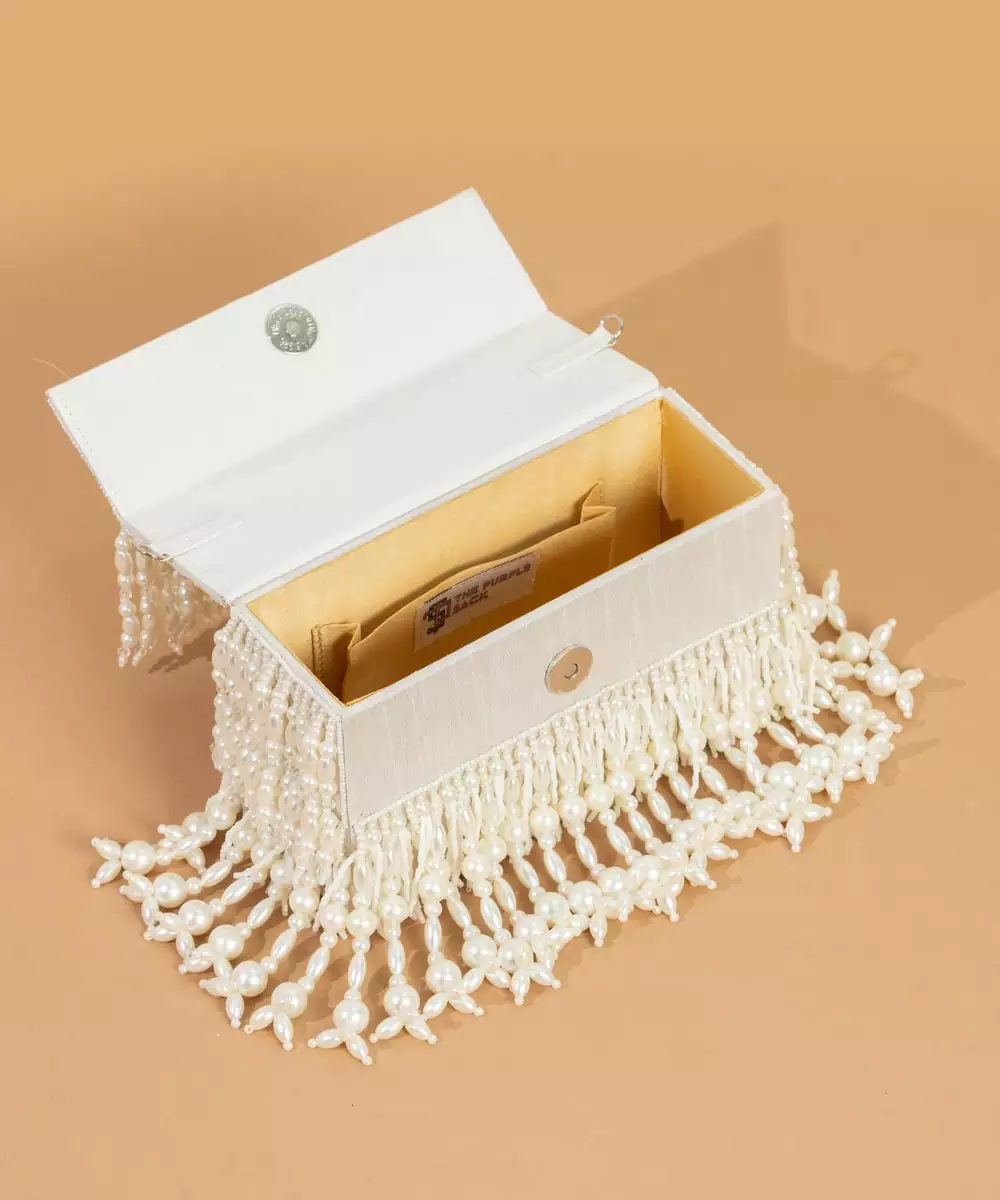 This Pearl Embroidered Silk Potli Bag Exudes Timeless Elegance And Charm. Crafted From Rich Silk, It Is Adorned With Delicate Pearl Work That Enhances Its Luxurious Appeal. Featuring A Secure Drawstring Closure, It Is Lightweight Yet Spacious, Making It A Perfect Accessory For Weddings, Festive Events, Or Special Celebrations.