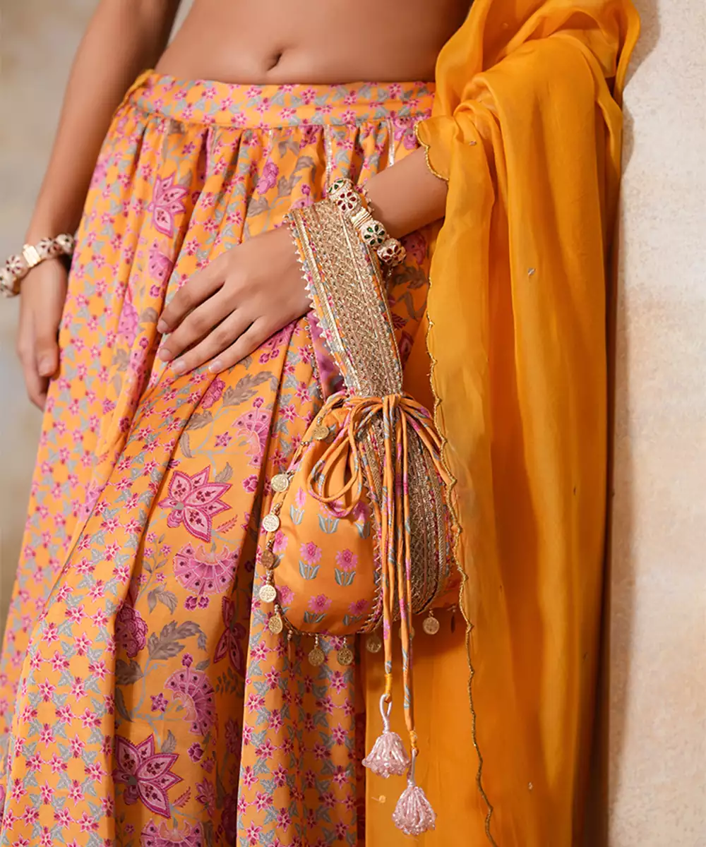 Yellow Silk Embroidered Potli Bag For Weddings