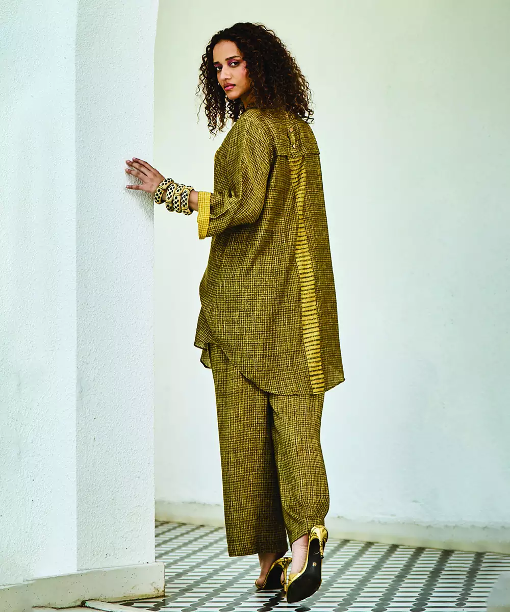 This Yellow Green Linen Kurta Set Features Refreshing Prints That Add A Vibrant Touch To Its Relaxed Silhouette. Crafted From Breathable Fabric, It Ensures All Day Comfort While Maintaining Style. Perfect For Casual Outings Or Daytime Gatherings, It Pairs Effortlessly With Minimal Accessories For A Fresh, Elegant Look.