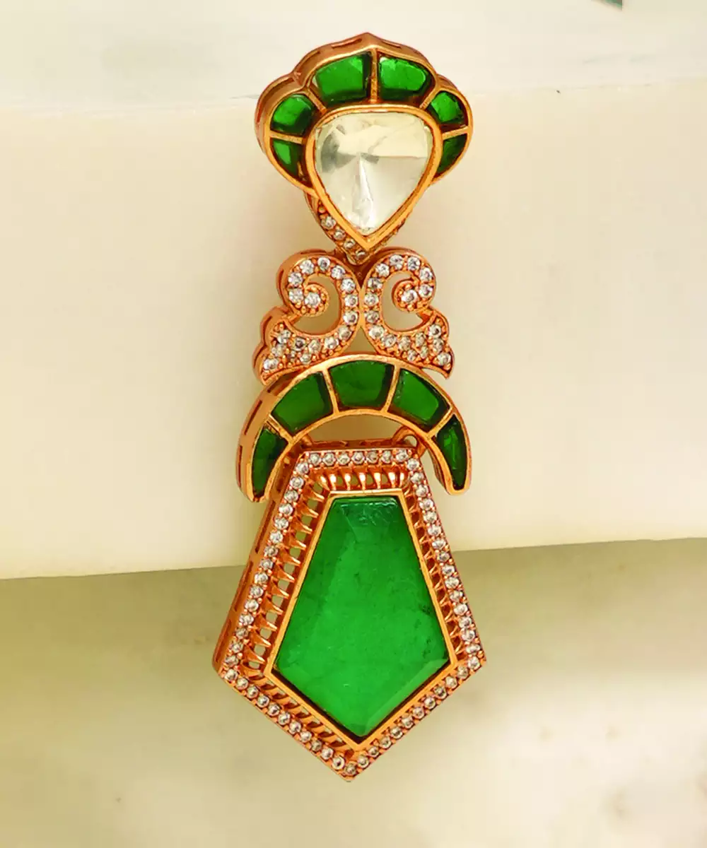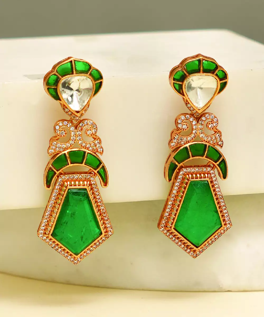These Gold Plated Earrings Feature Vibrant Green Stones Set In A Refined Design. Lightweight And Elegant, They Are Perfect For Both Everyday Wear And Festive Occasions. Their Versatile Appeal Makes Them A Must Have Accessory, Adding A Fresh And Stylish Touch To Your Overall Look.