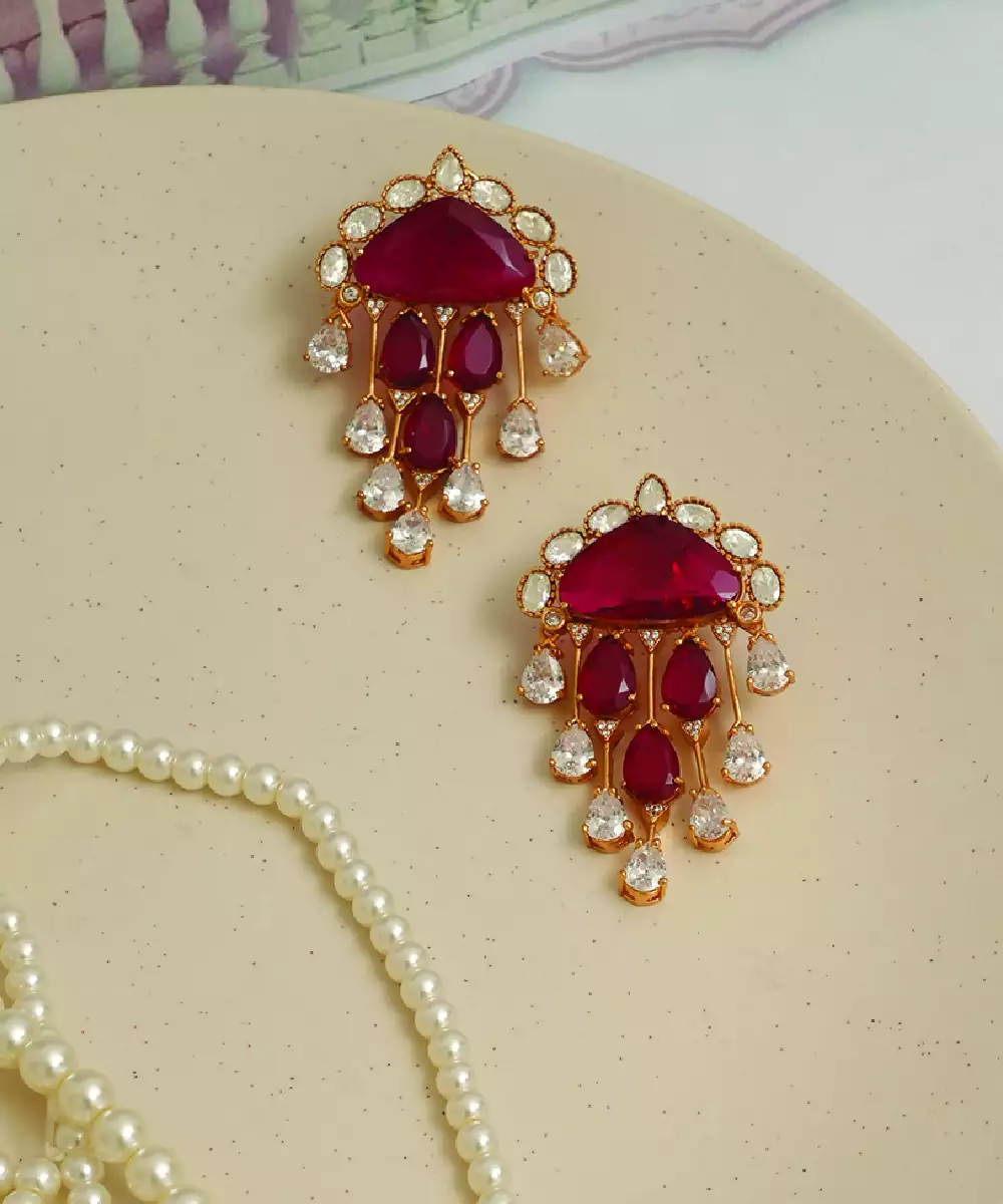 These Gold Plated Earrings With Red Stones Offer A Perfect Blend Of Elegance And Simplicity. The Vibrant Stones Add A Pop Of Color, While The Refined Design Makes Them Suitable For Both Festive And Casual Wear. Lightweight And Stylish, They Enhance Your Look With Subtle Sophistication.