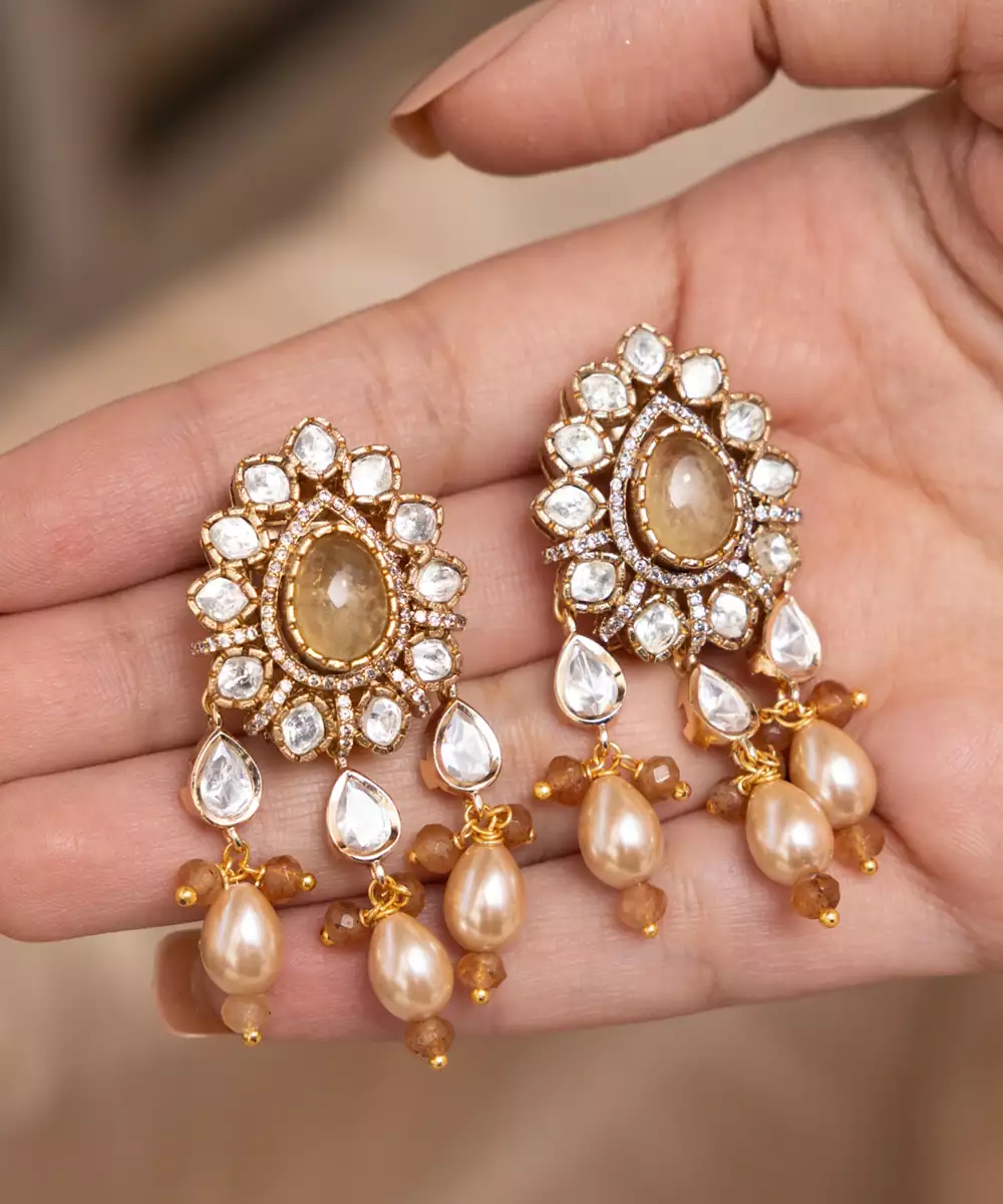 Gold Plated Kundan Danger Earring