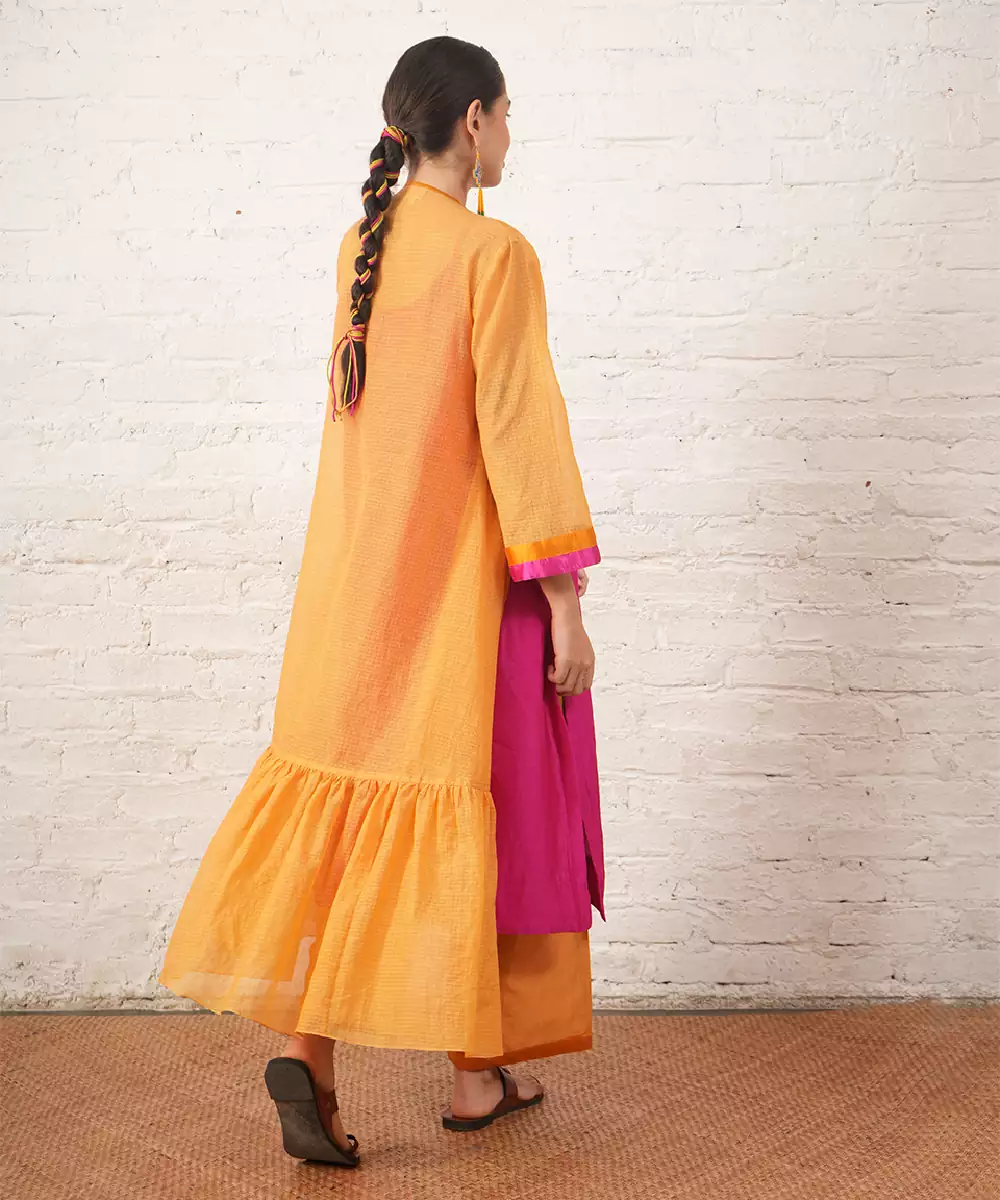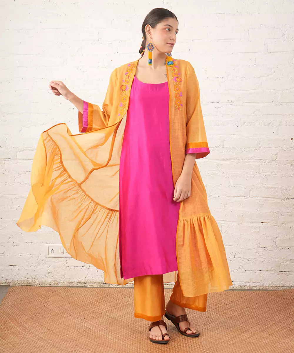 Mustard Yellow Embroidered Chanderi Kurta Set