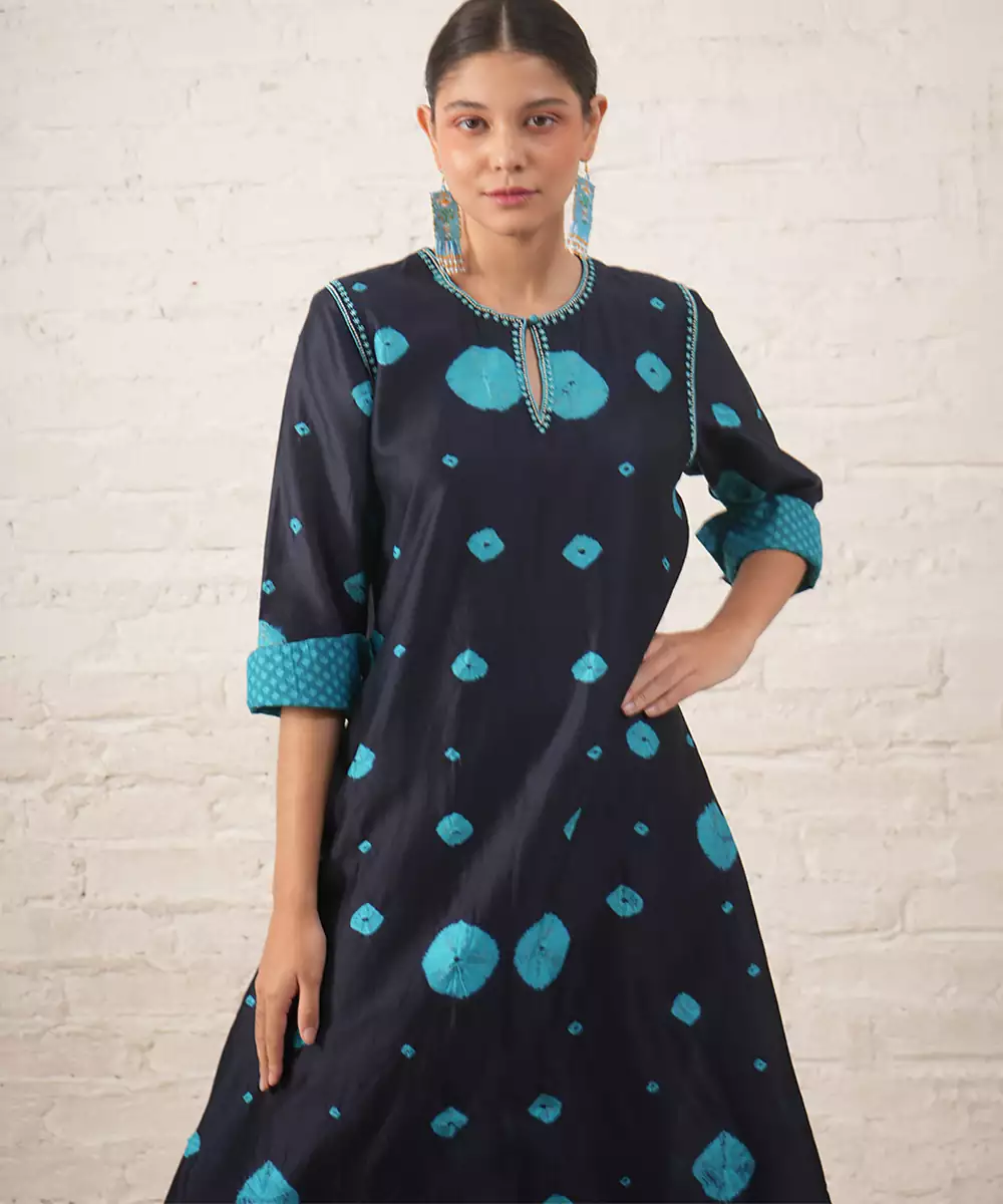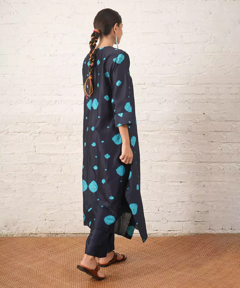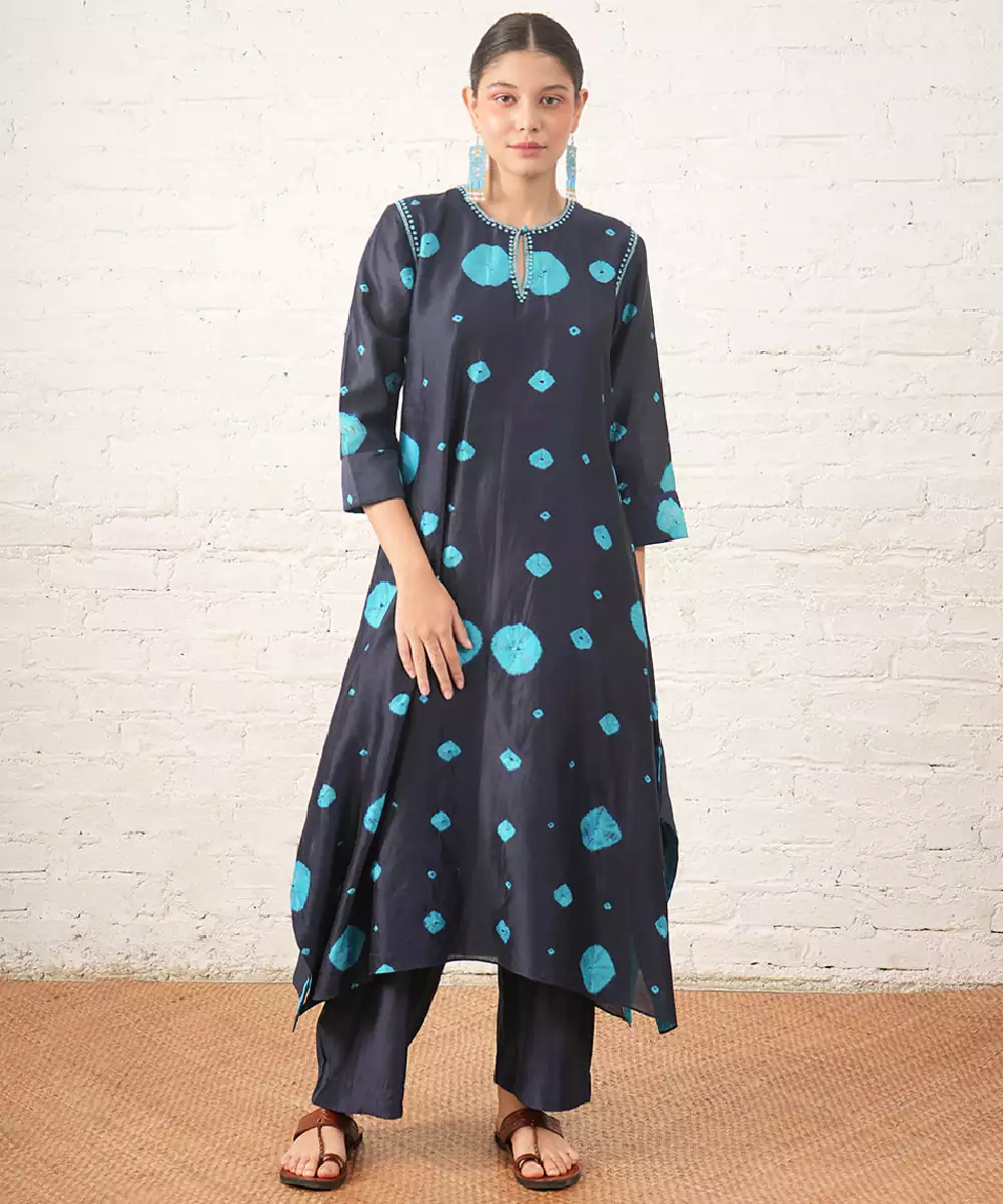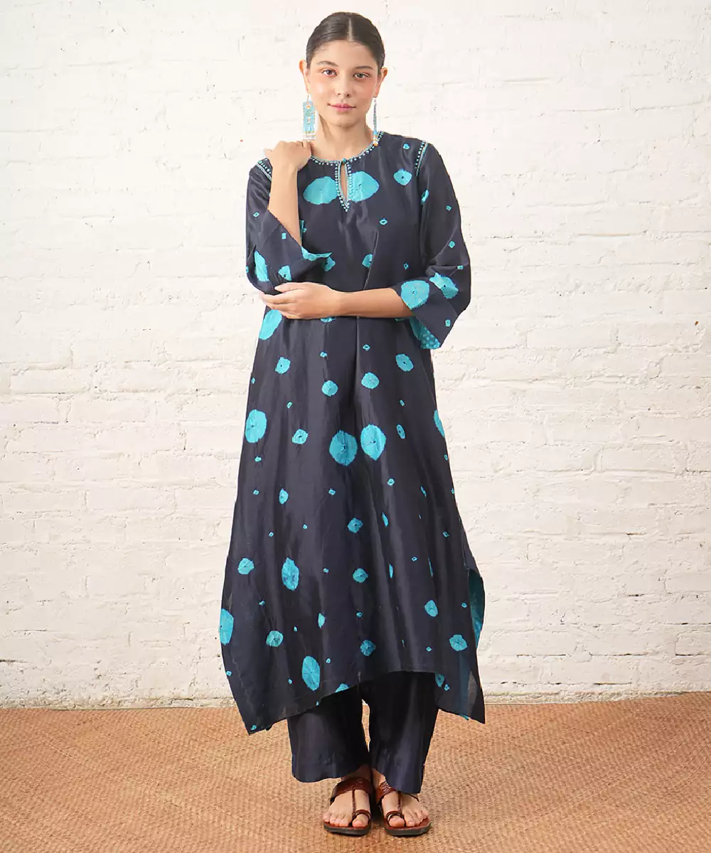 Navy Blue Embroidered Chanderi Kurta Set