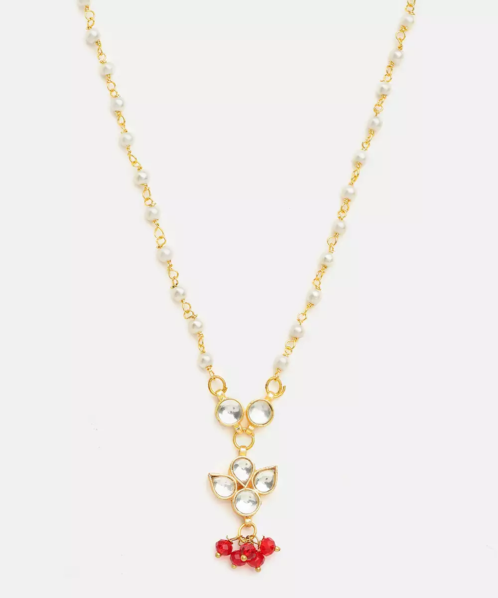 Gold Plated Kundan Maroon Stones Necklace
