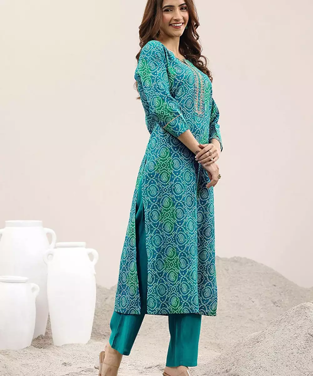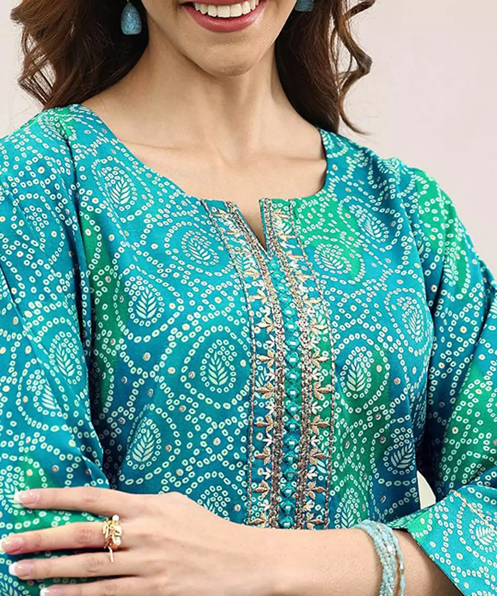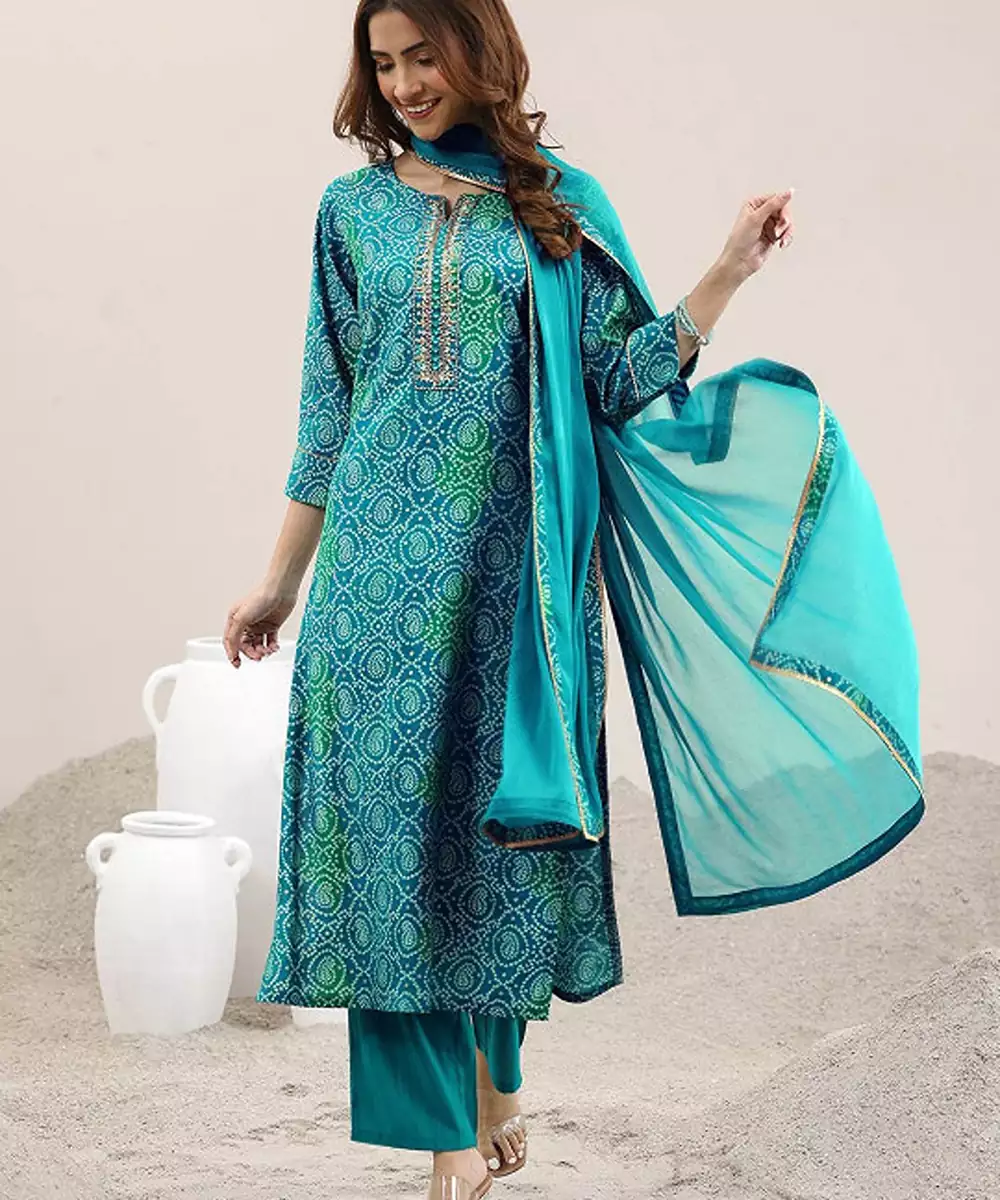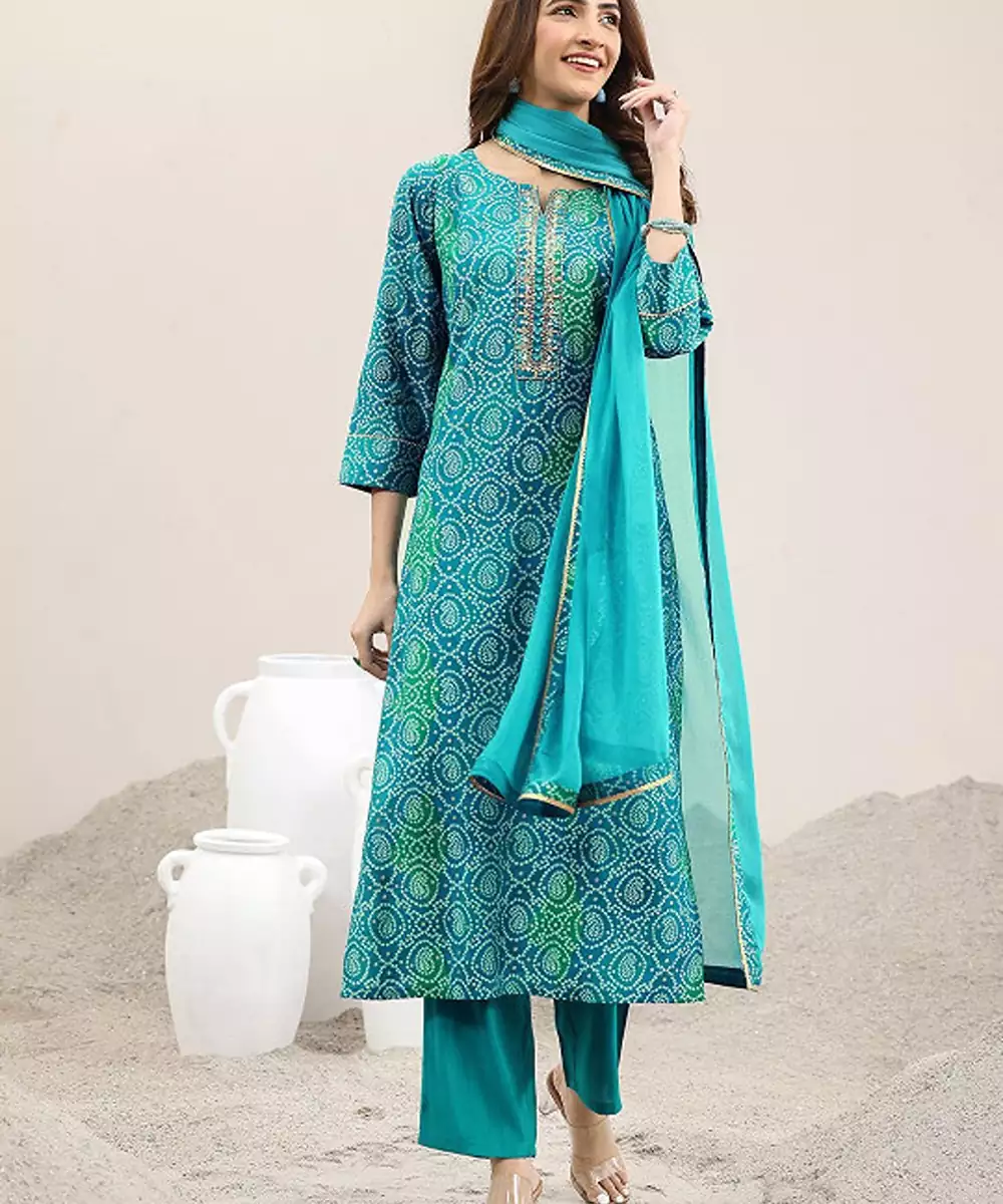 Bandhani Printed Gotta Patti Kurta With Trousers & Dupatta