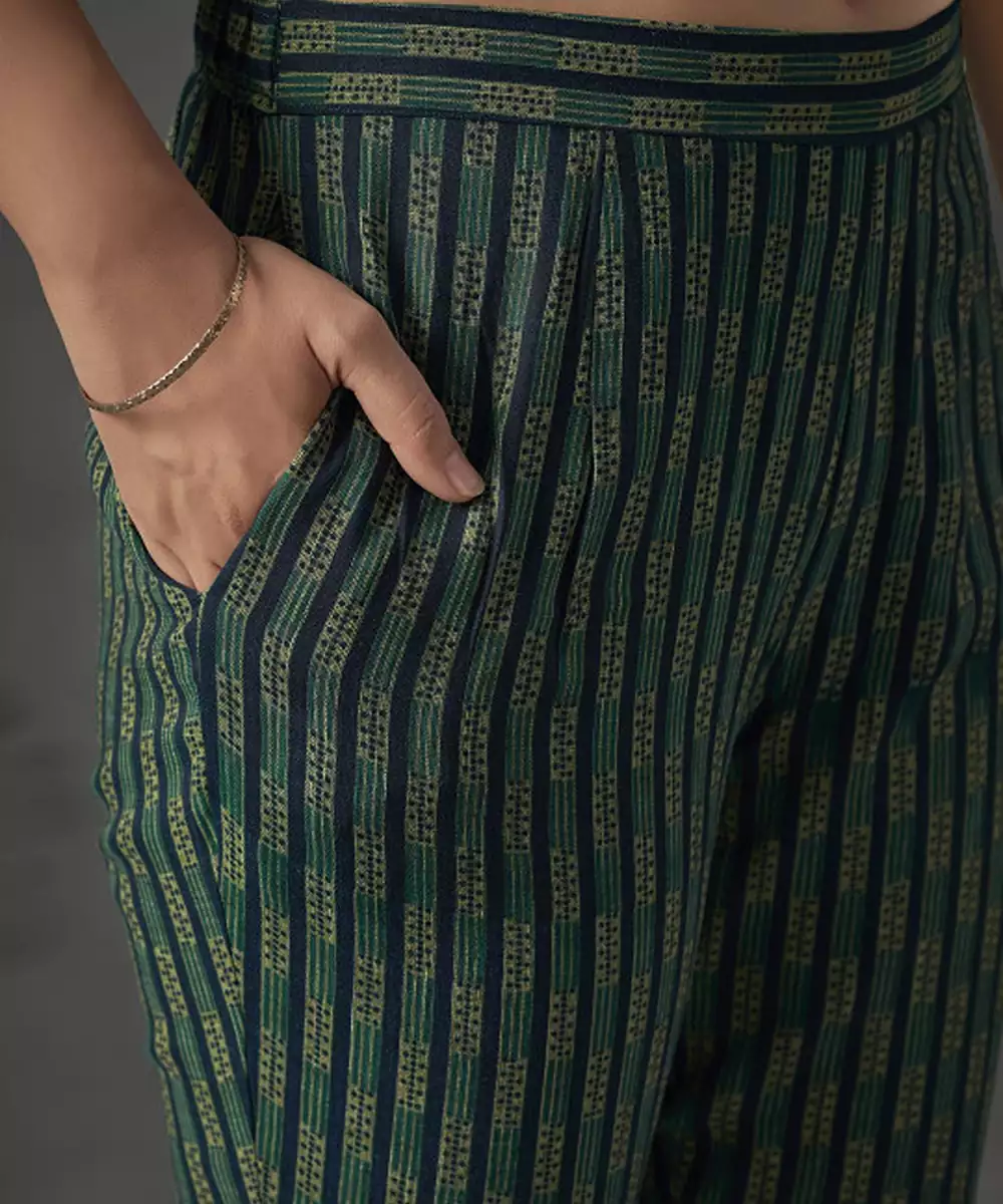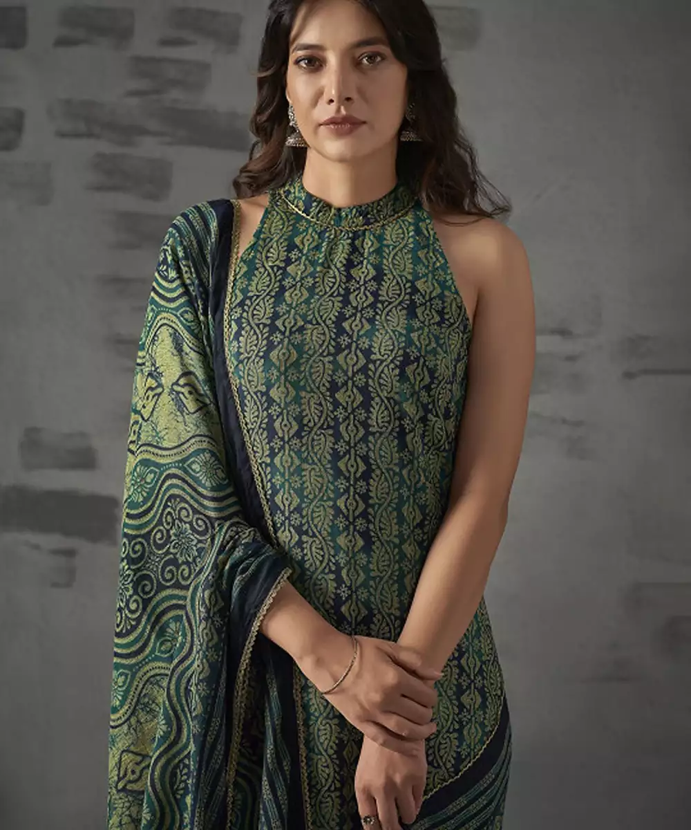 Green Chanderi Aari Embroidered Suit Set