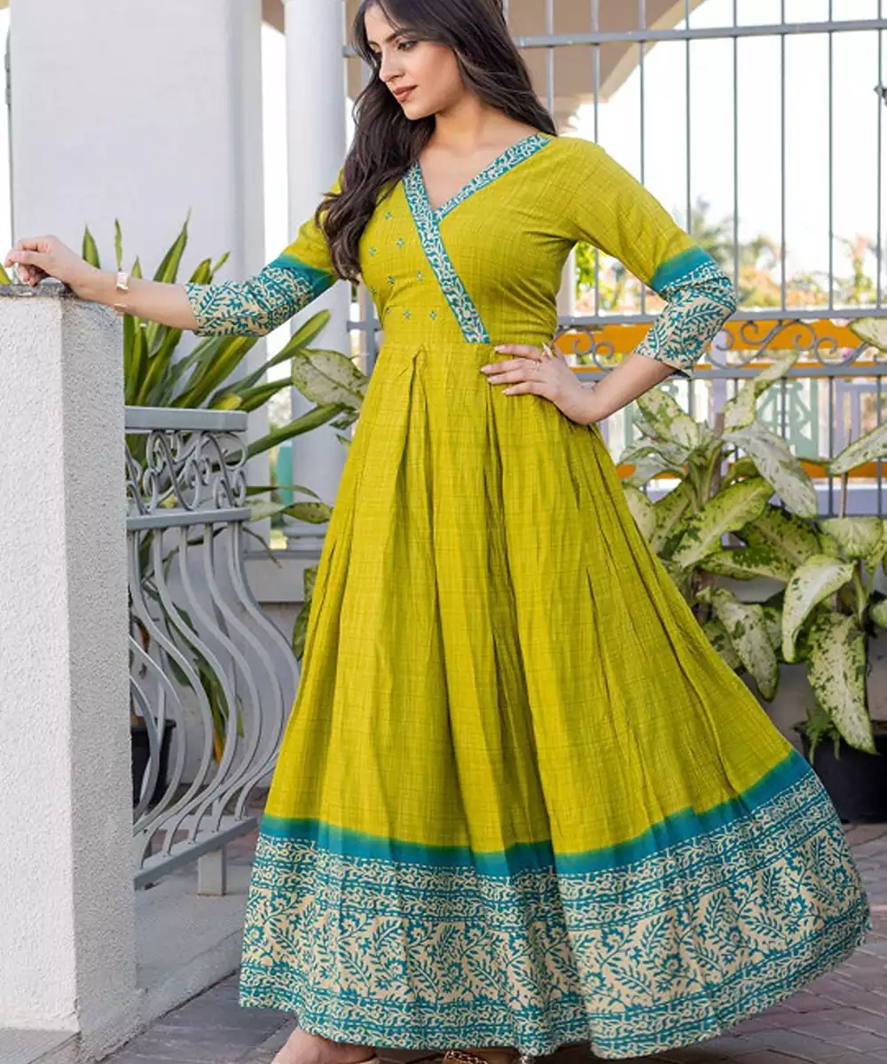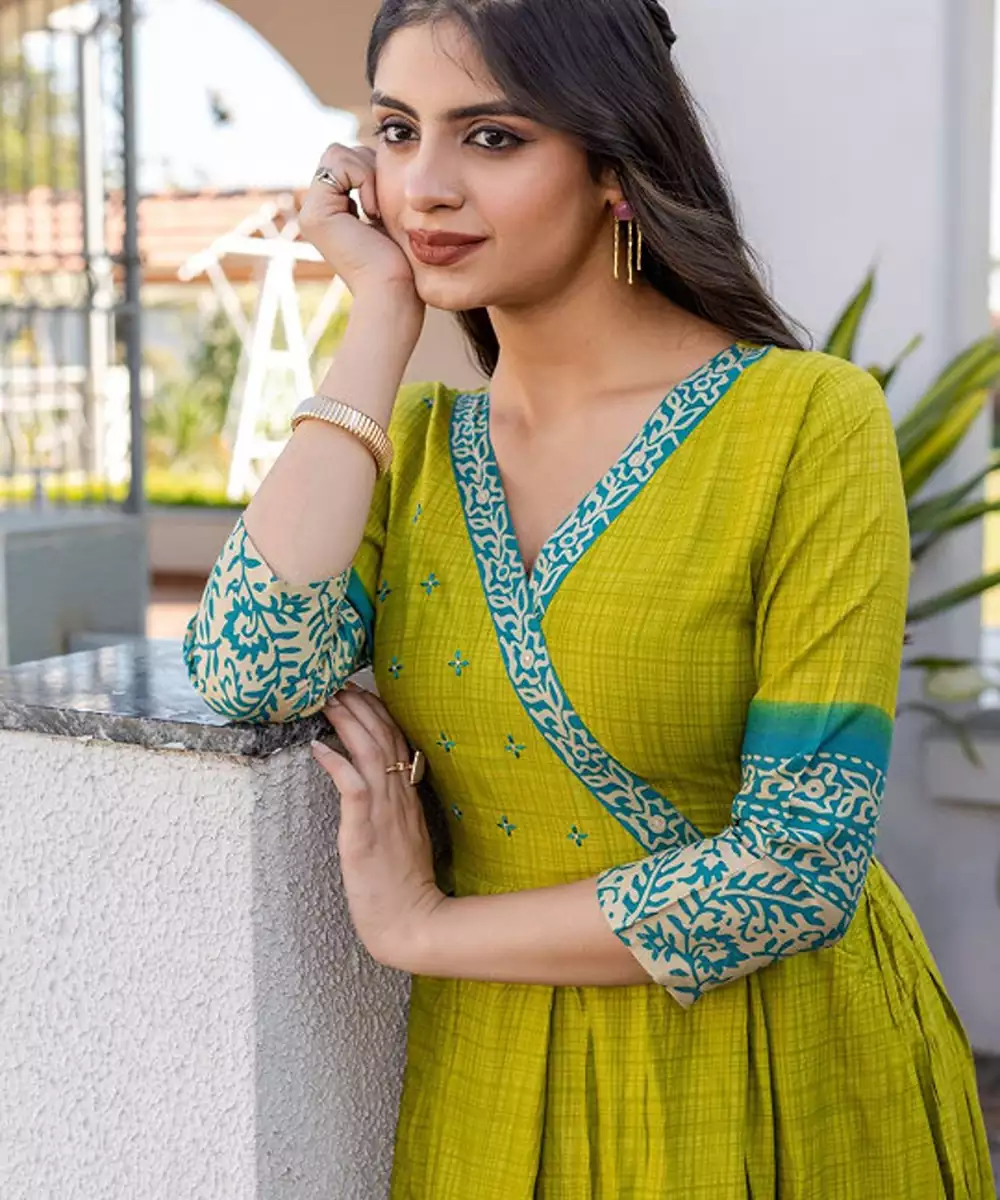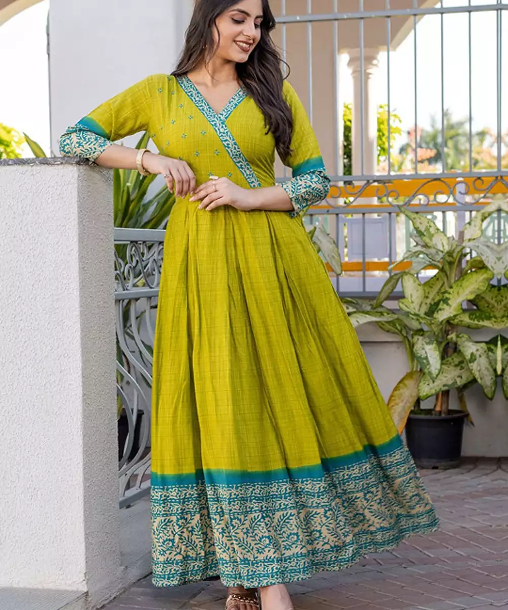 Checked Thread Work V Neck Anarkali Kurta