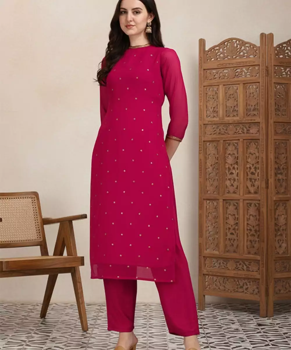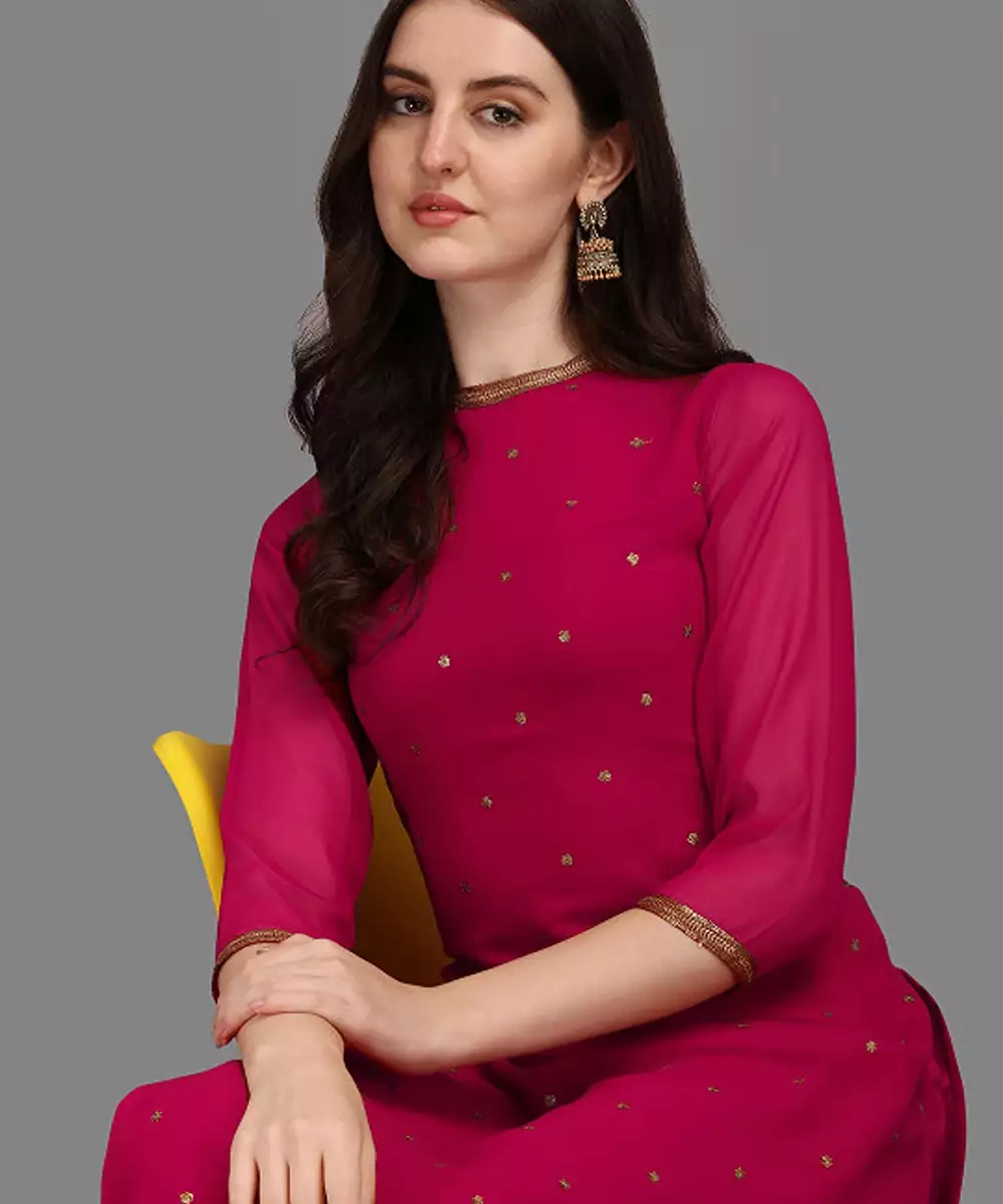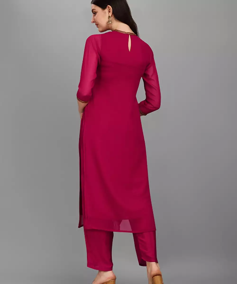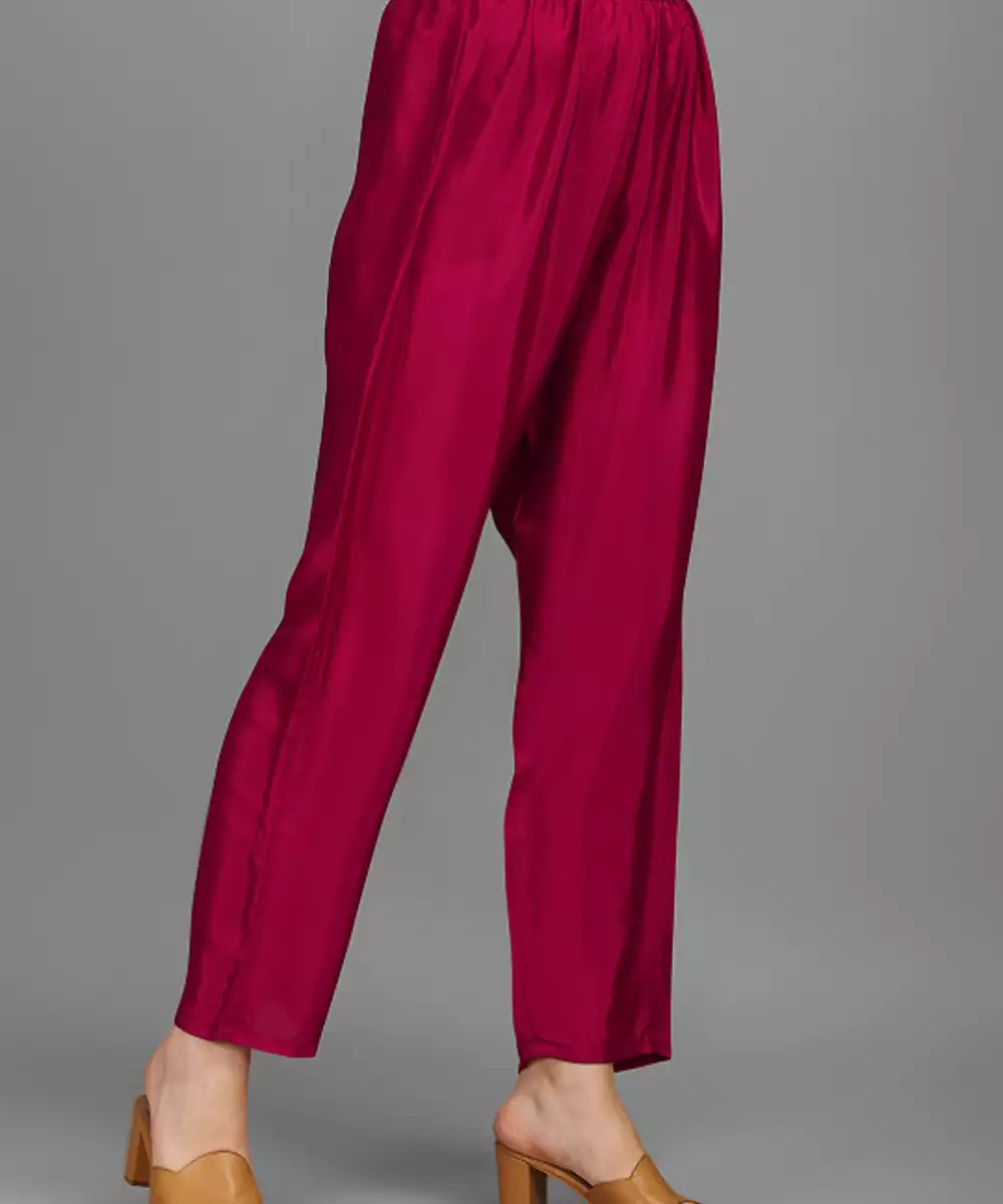 Magenta Embellished Kurta With Trousers Kurta Design: