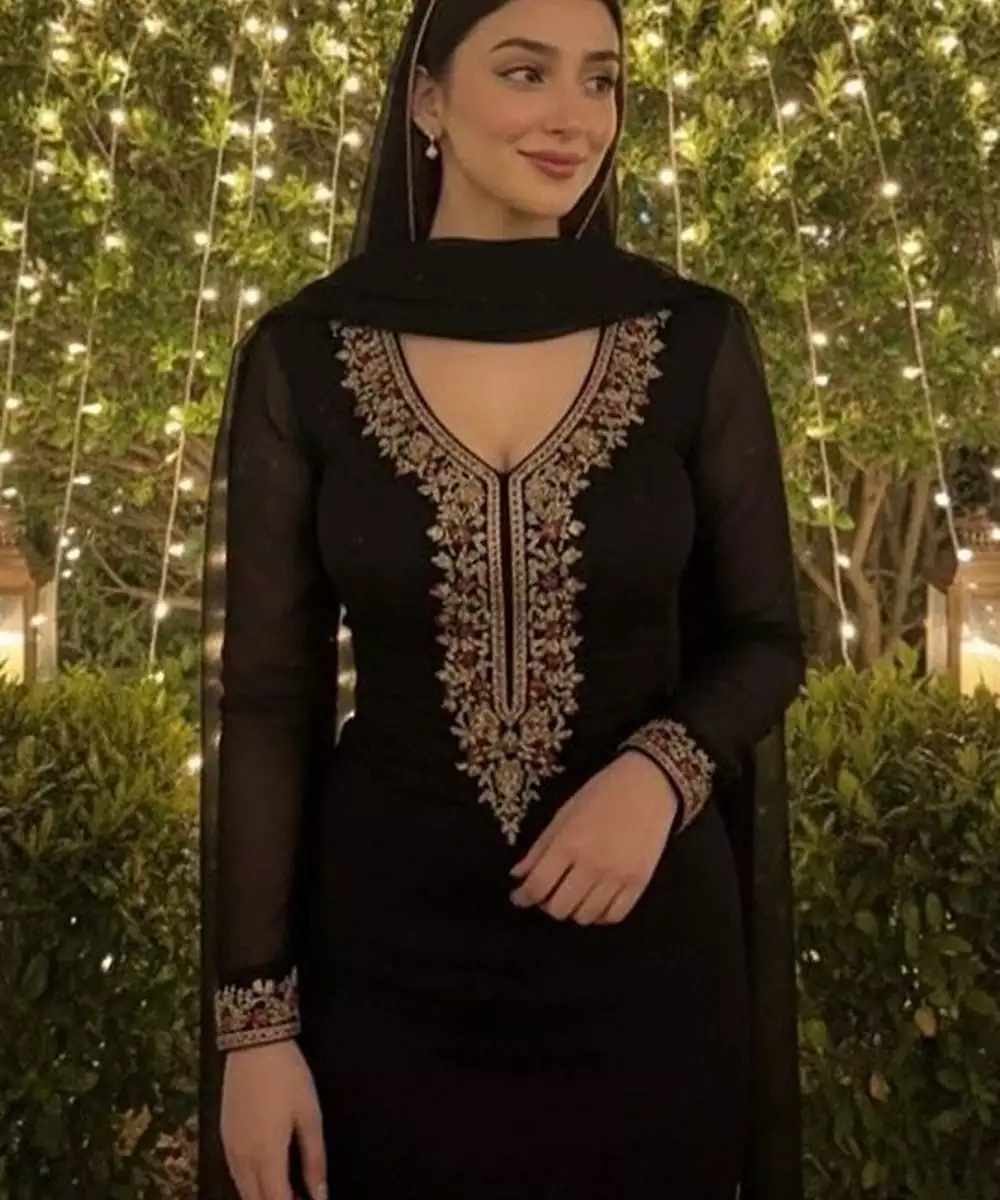 Black Embroidered Kurta With Trousers With Dupatta Kurta Design: