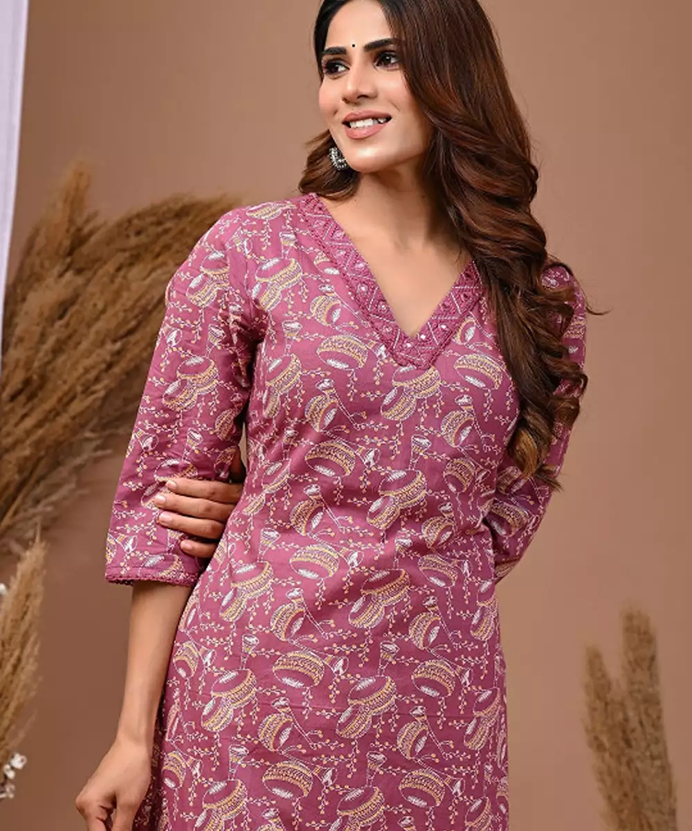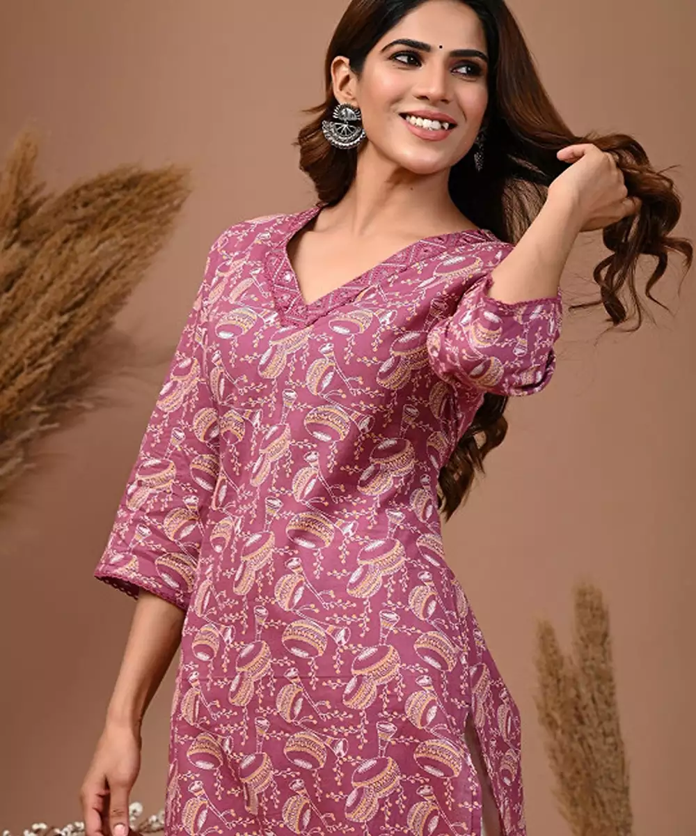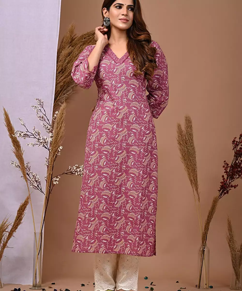 Ethnic Motifs Printed Pure Cotton Straight Kurta