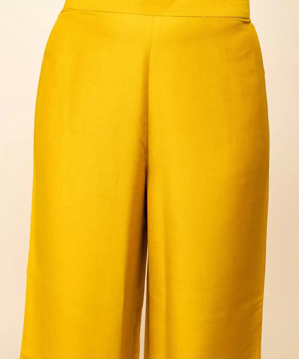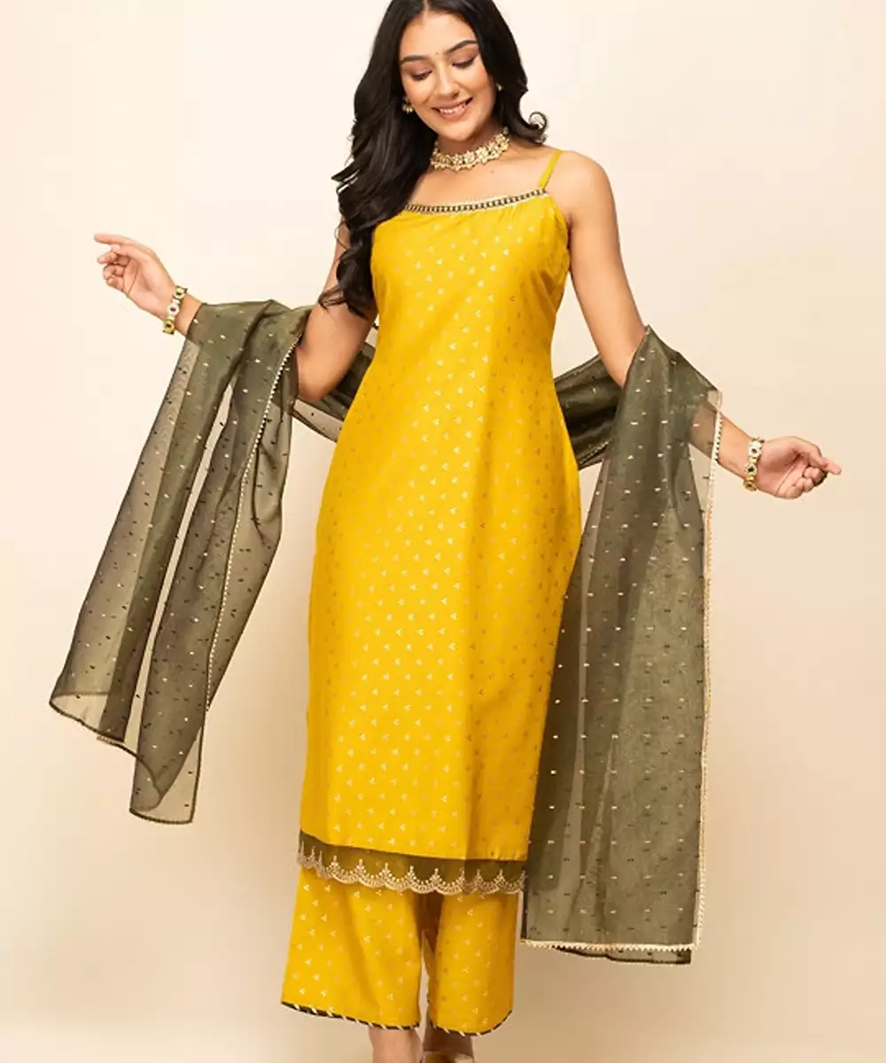 Yellow, Gold Toned & Green Printed Kurta With Palazzos With Dupatta Kurta Design: