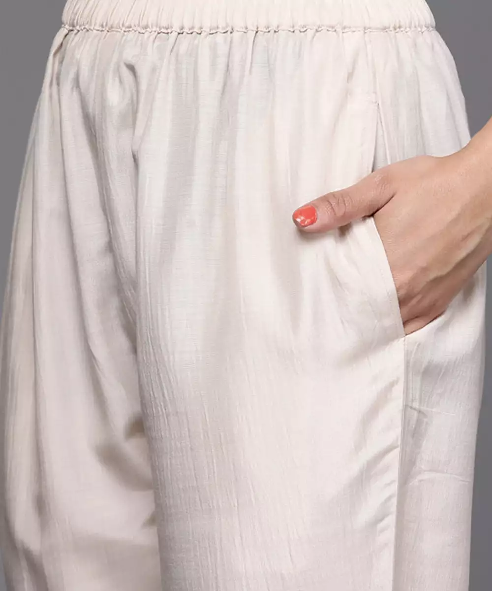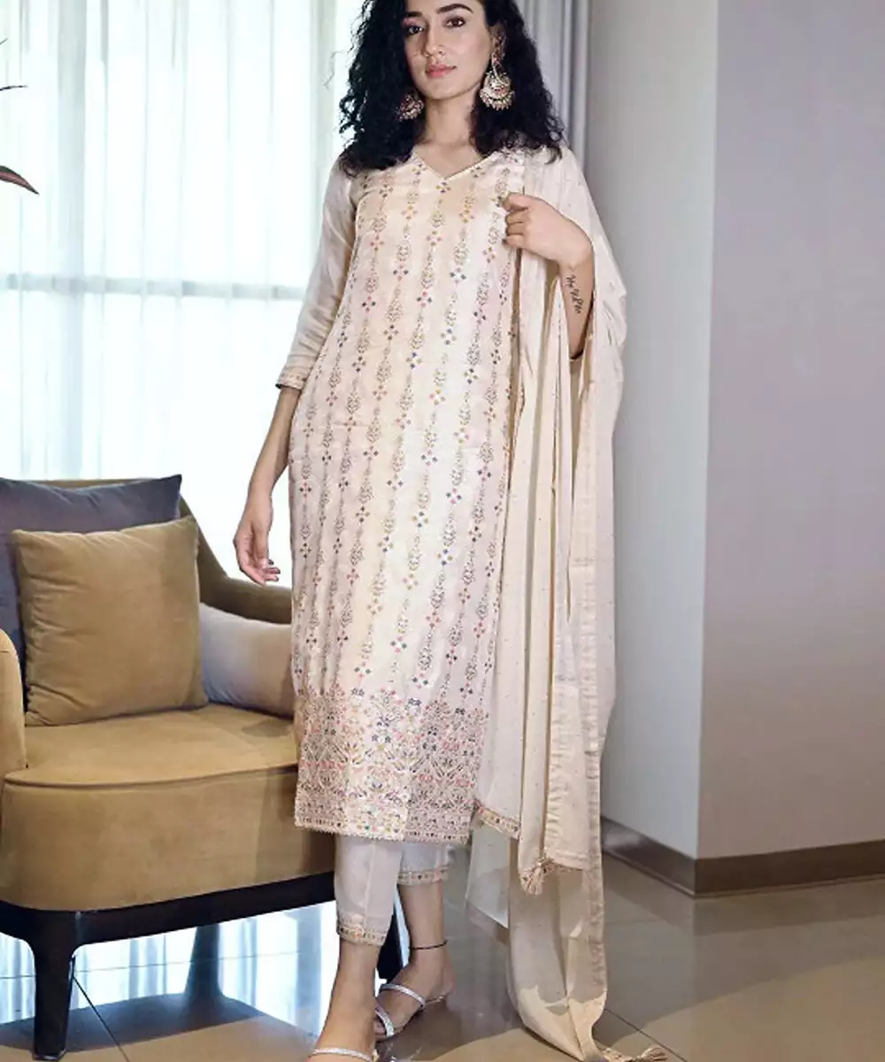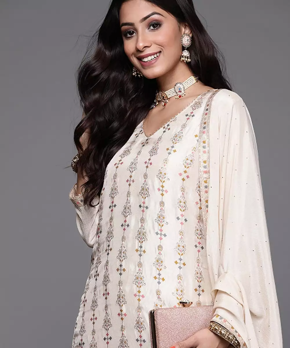Beige Woven Design Kurta With Trousers With Dupatta Kurta Design: